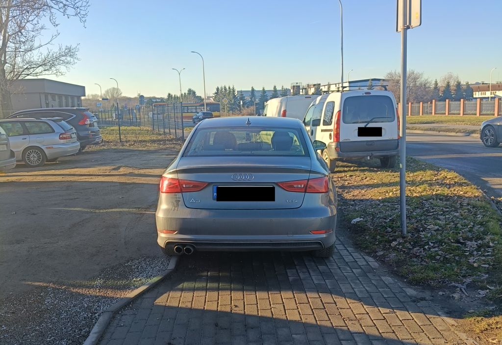Ul. Gdyńska: „Parking przy markecie Netto ul. Gdyńska. Pół parkingu z wolnymi miejscami ale jakiś wytrawny mistrz kierownicy postanowił utrudnić mi życie i stanąć tak blisko żebym nie mógł otworzyć drzwi. Autor zdjęcia – Andrzej, biała Honda.”