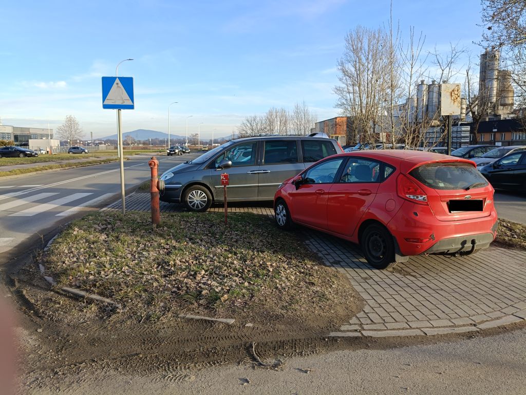 Ul. Bolesława Chrobrego: „Pojazdy jakby nigdy nic parkują koło bramy i na poboczach koło drogi pomimo ustawionego znaku B-36 (zakaz Zatrzymywania się) pomysł byłby taki żeby dodać znaki T-24 (zagrożenie odholowaniem na koszt właściciela) , T-25a (Początek zakazu postoju lub zatrzymywania) i T-24c (odwołanie zakazu postoju lub zatrzymywania) dodałbym także tabliczkę „Nie dotyczy pobocza” w dodatku brama i ograniczona widoczność wyjazdu, dodałbym też kopertę z X gdzie nie można parkować.” – wskazuje autor zdjęcia.