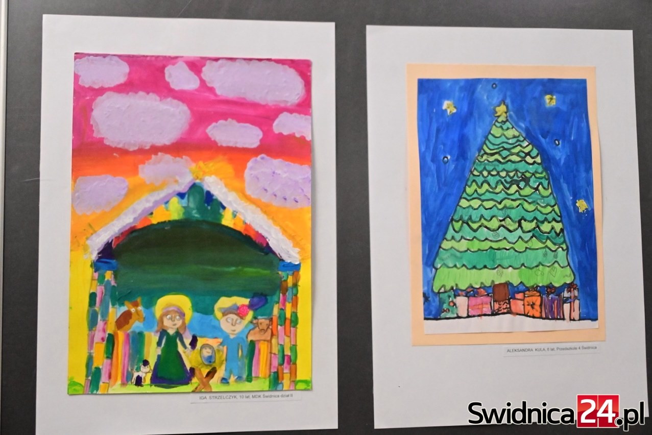 Jedne religijne z szopką betlejemską, inne lokalne ze świąteczne ubraną Świdnicą, ale też bardziej bajkowe z radosnymi akcentami świąt Bożego Narodzenia – Mikołajami, choinką, bombkami. Wyróżnione obrazki, własnoręcznie wykonane przez dzieci i młodzież, zostały wyeksponowane na wystawie w holu Klubu Bolko Świdnickiego Ośrodka Kultury.
