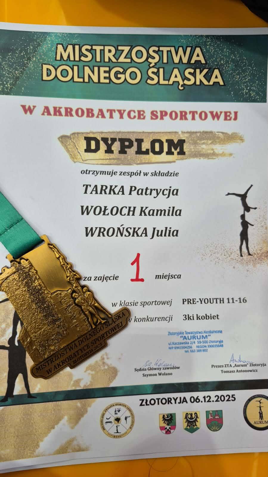 Ze świetnej strony zaprezentowały się młode zawodniczki z sekcji akrobatycznej MKS-u Polonia Świdnica podczas rozgrywanych w Złotoryi Mistrzostw Dolnego Śląska. Kamila Wołoch, Julia Wrońska i Patrycja Tarka sięgnęły po złoto w konkurencji trójek kobiet 11-16 lat.