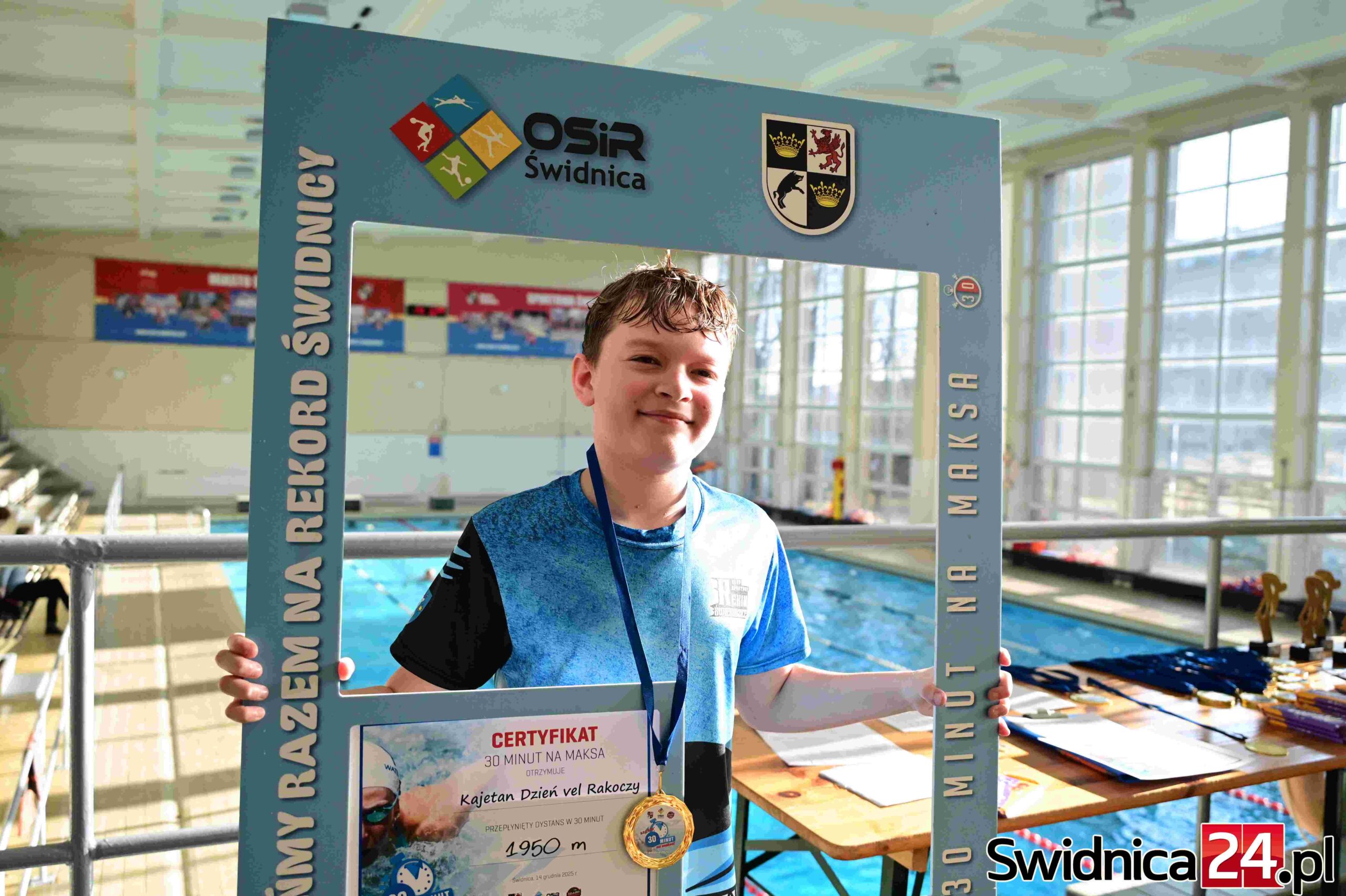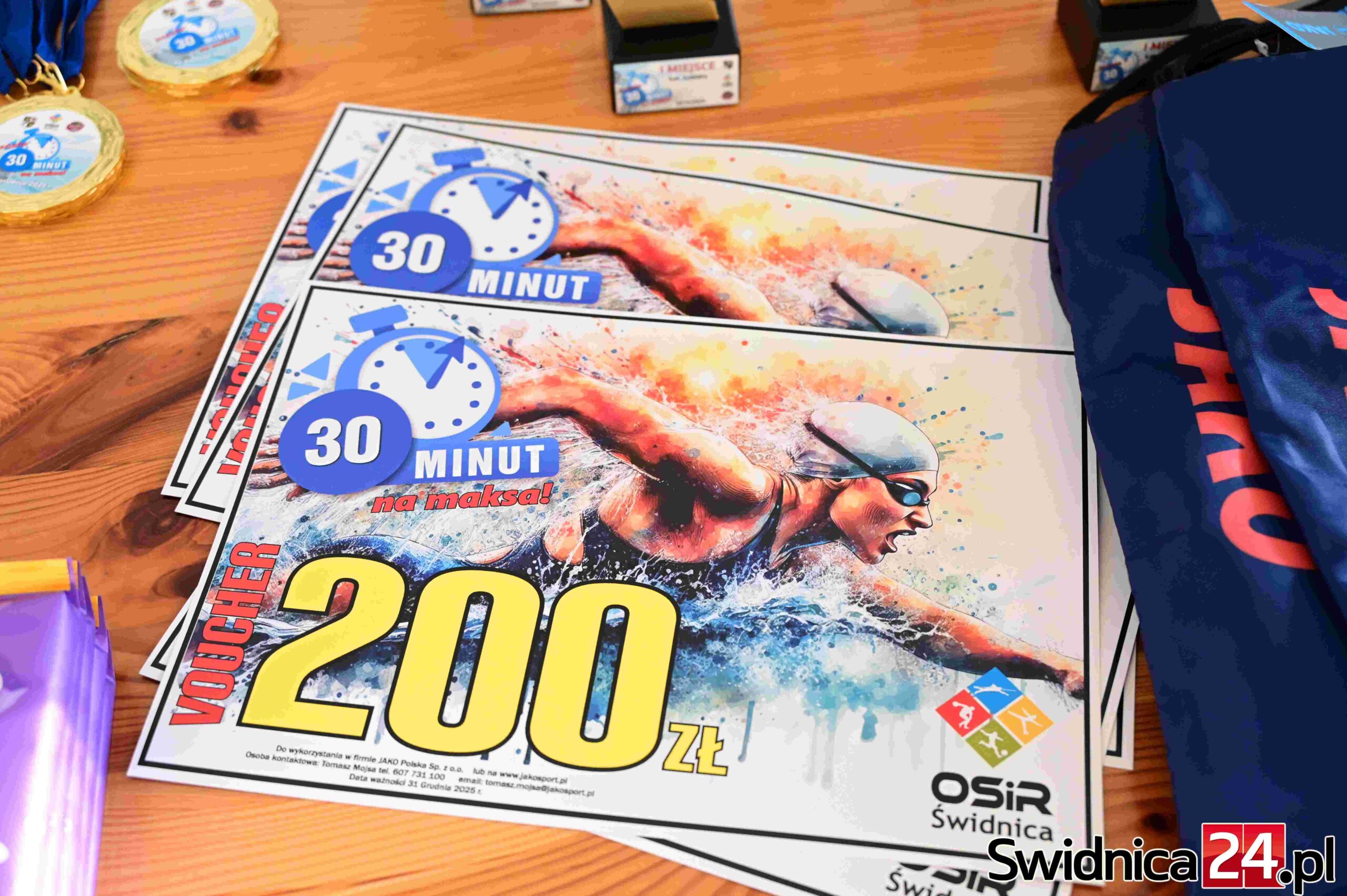 Dokładnie 44 uczestników (10 kobiet i 34 mężczyzn) przystąpiło do rywalizacji w ramach szóstej edycji zawodów „30 minut na maksa. Popłyńmy razem na rekord Świdnicy”. Walka z czasem, ilością przepłyniętych basenów i własnymi słabościami odbyła się dziś w godzinach 10.00 – 15.00 na terenie pływalni przy ulicy Równej w Świdnicy.