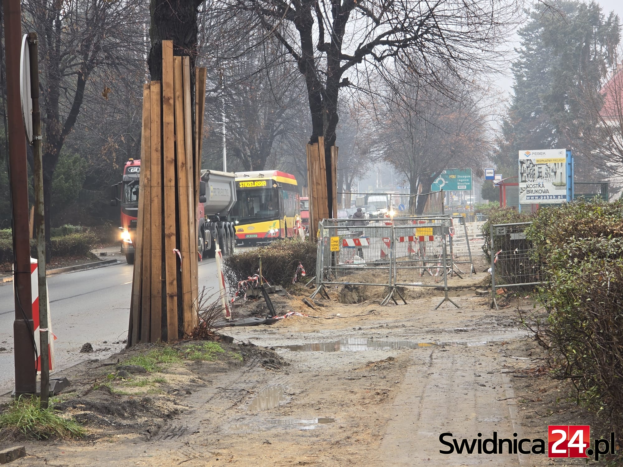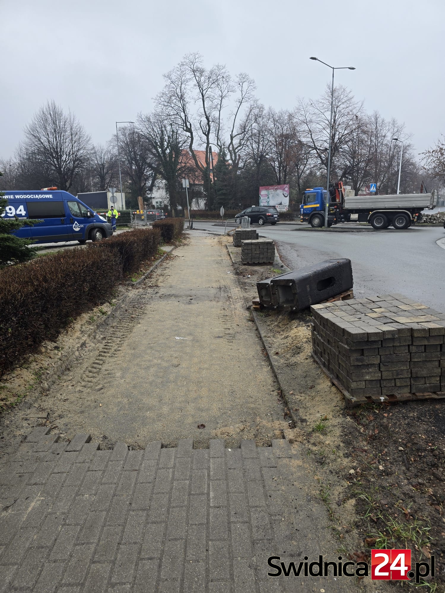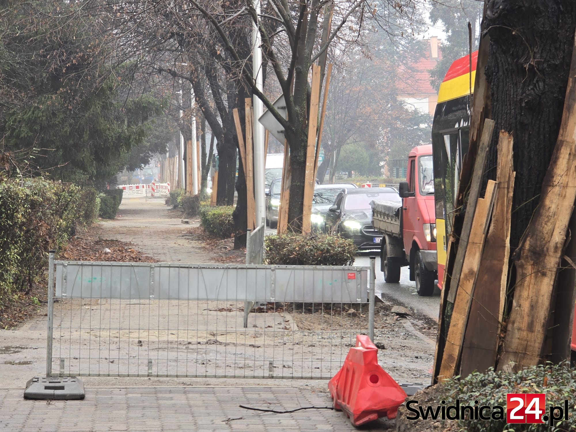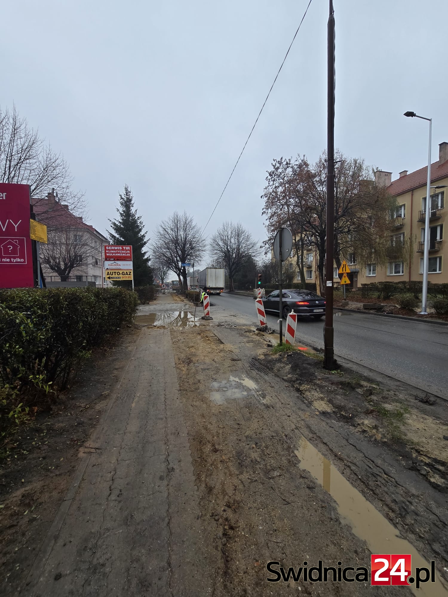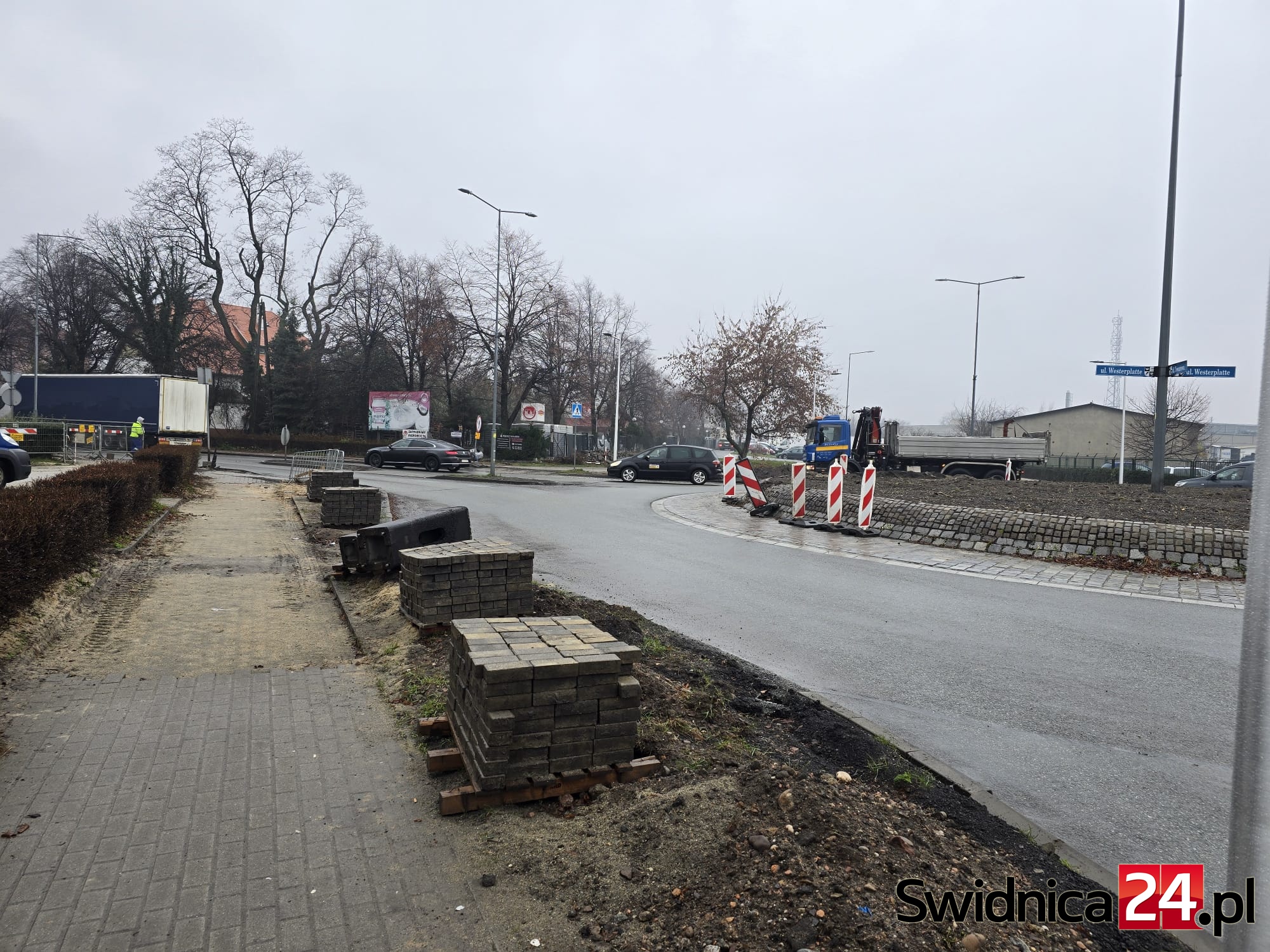 – Prace na ul. Westerplatte oraz skrzyżowaniu z ul. Strzelińską trwają. Trwa przebudowa m.in. chodnika przy budynkach z nieparzystą numeracją oraz prace na sieci wodociągowej prowadzone przez Świdnickie Przedsiębiorstwo Wodociągów i Kanalizacji. Zakończenie prac związanych z przebudową jezdni zaplanowane jest na początek roku 2026. Termin ukończenia przebudowy chodnika uzależniony jest od zakończenia prac na sieci wodociągowej – poinformował dzisiaj Grzegorz Chodkowski z biura prasowego DSDiK.