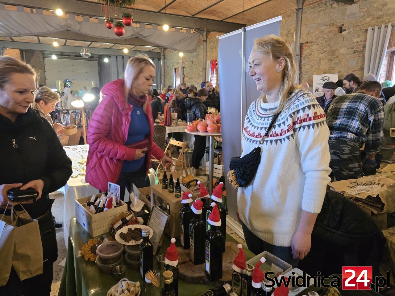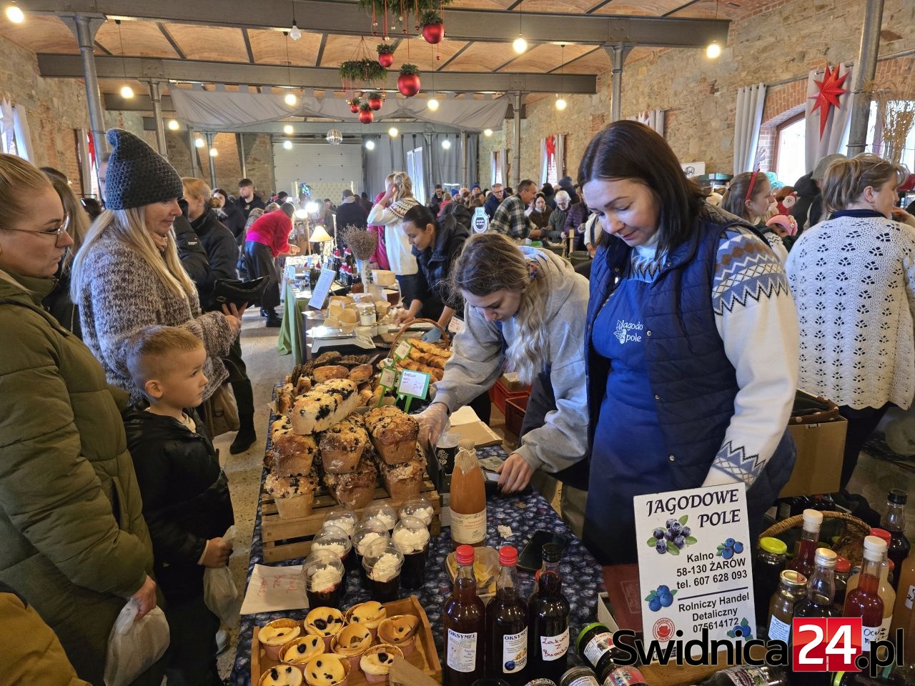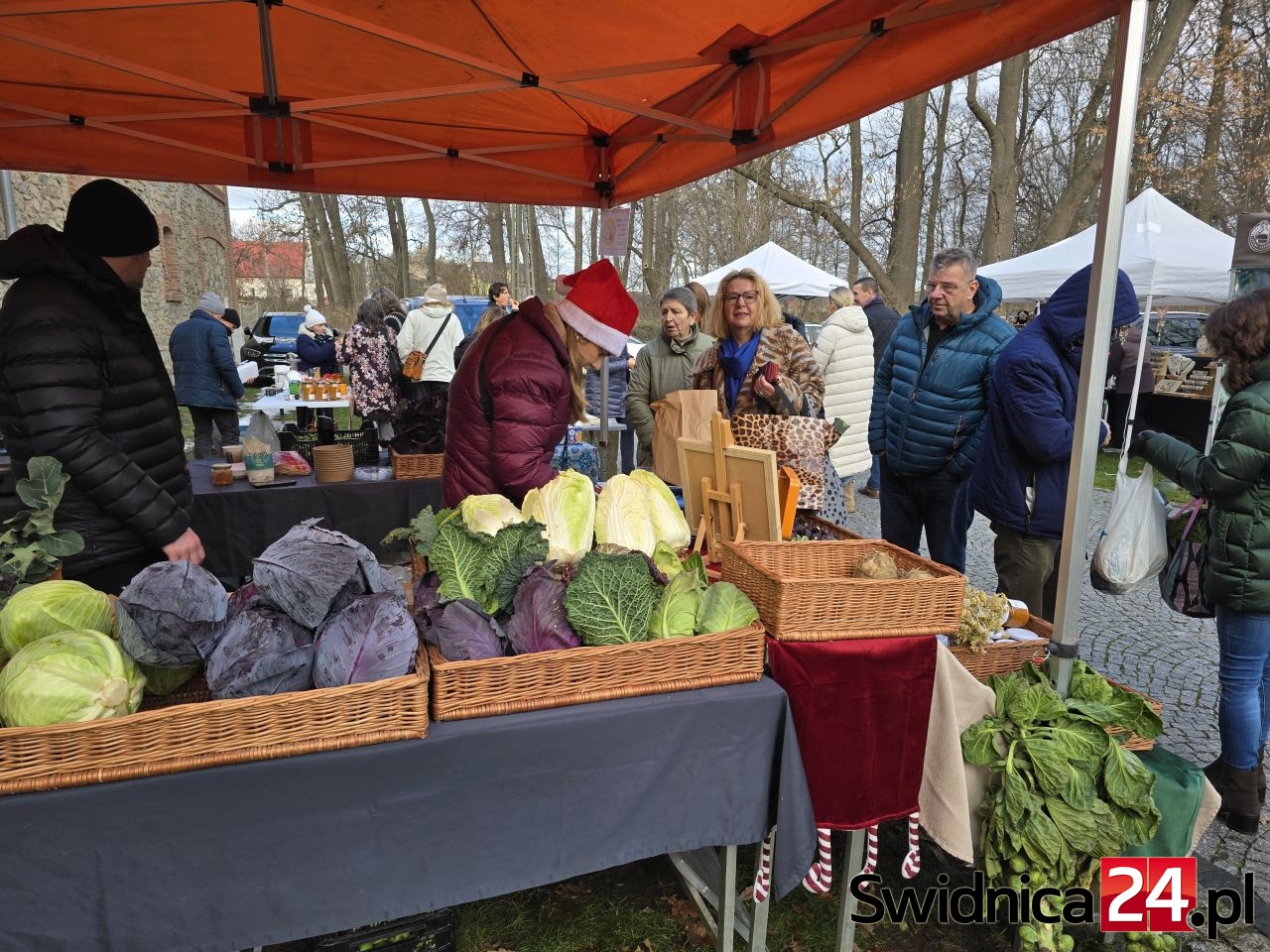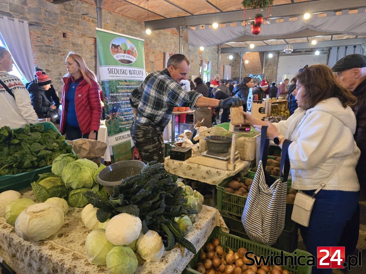 Podczas przedświątecznej edycji targu na kilkudziesięciu stoiskach przygotowanych przez lokalnych producentów znalazły się m.in. miody, naturalne kosmetyki, pieczywo oraz pierniki, mąka i makarony, ceramika, wyroby z drewna, soki, koncentraty, dżemy z owoców leśnych, różności z dyni, nabiał krowi i owczy, wyroby z borówki amerykańskiej, a także ręcznie robione czapki, swetry i ciepłe skarpety, jak również bogaty wybór świątecznych ozdób i stroików. Na gości czekały też ciepłe napoje i potrawy, a pogoda pozwoliła cieszyć się imponujących rozmiarów terenem wokół odrestaurowanych zabudowań gospodarczych.