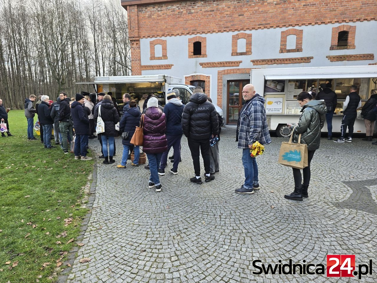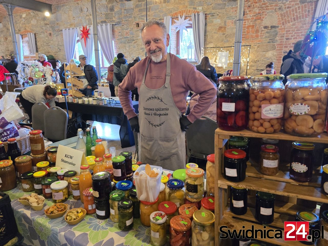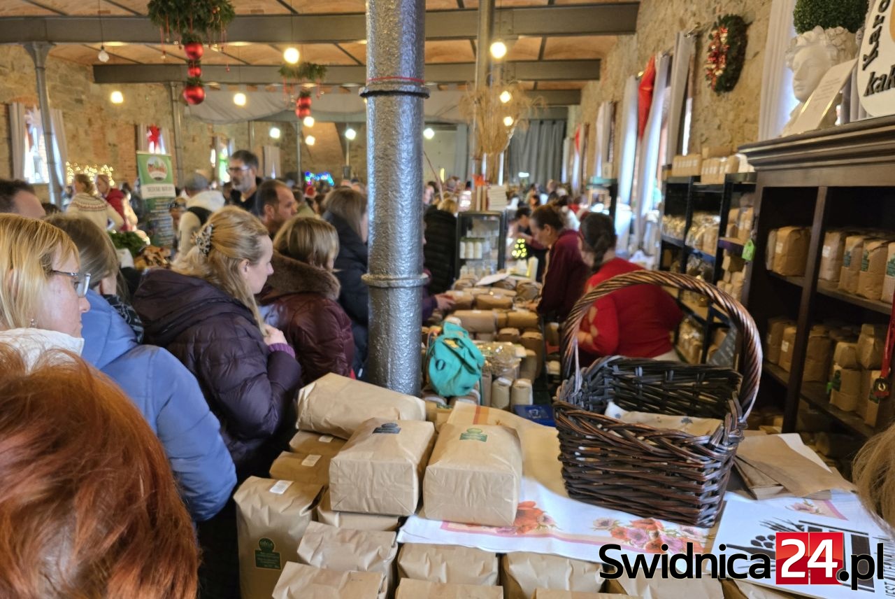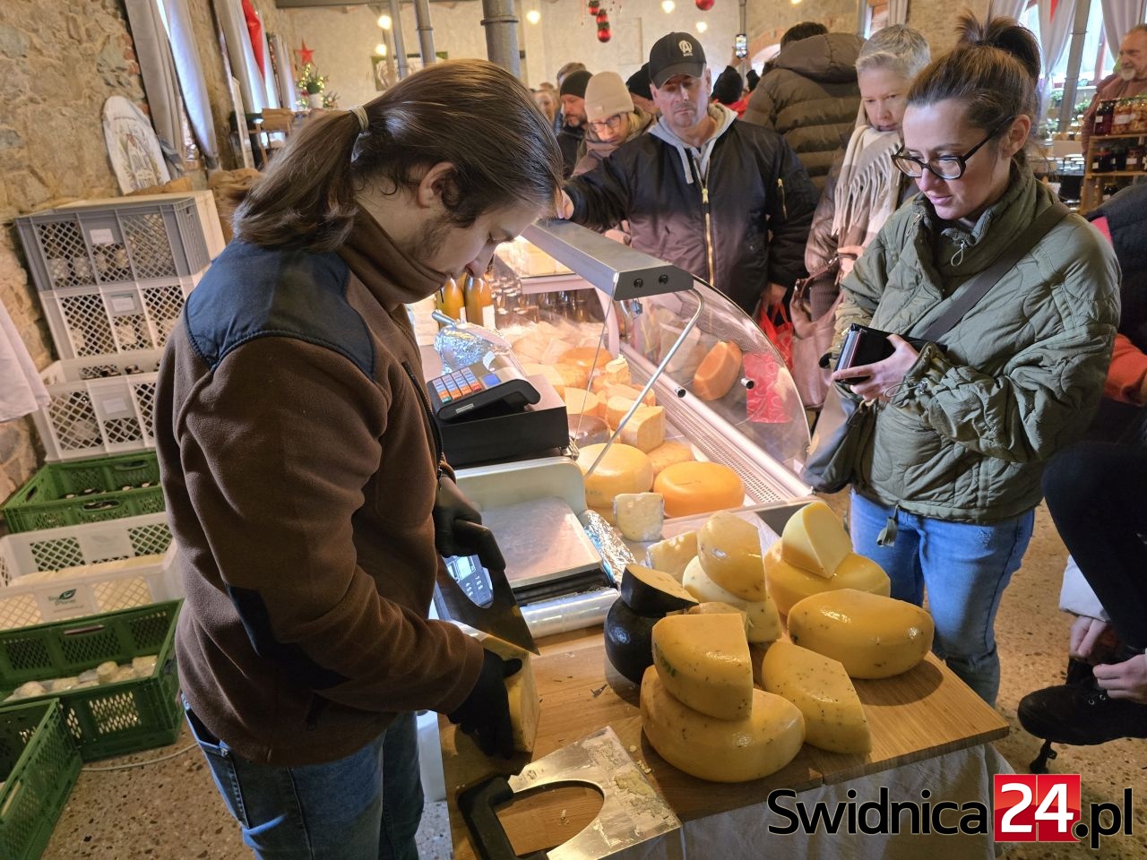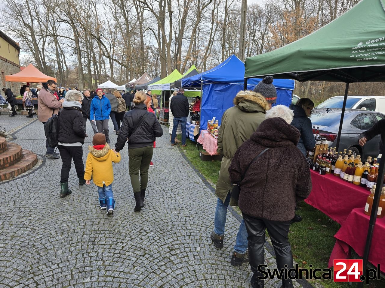 Podczas przedświątecznej edycji targu na kilkudziesięciu stoiskach przygotowanych przez lokalnych producentów znalazły się m.in. miody, naturalne kosmetyki, pieczywo oraz pierniki, mąka i makarony, ceramika, wyroby z drewna, soki, koncentraty, dżemy z owoców leśnych, różności z dyni, nabiał krowi i owczy, wyroby z borówki amerykańskiej, a także ręcznie robione czapki, swetry i ciepłe skarpety, jak również bogaty wybór świątecznych ozdób i stroików. Na gości czekały też ciepłe napoje i potrawy, a pogoda pozwoliła cieszyć się imponujących rozmiarów terenem wokół odrestaurowanych zabudowań gospodarczych.
