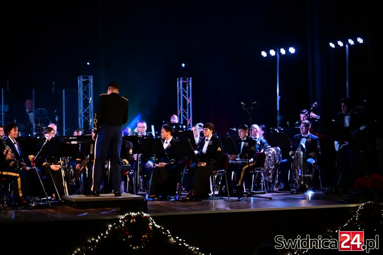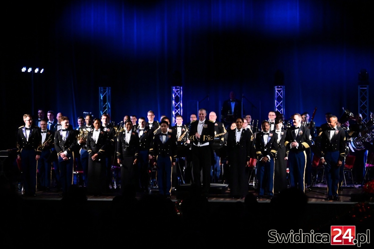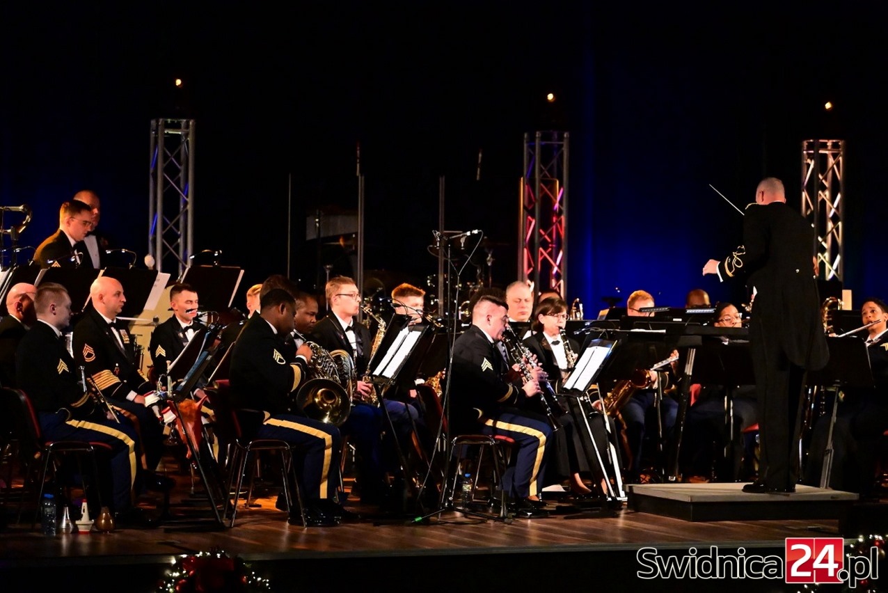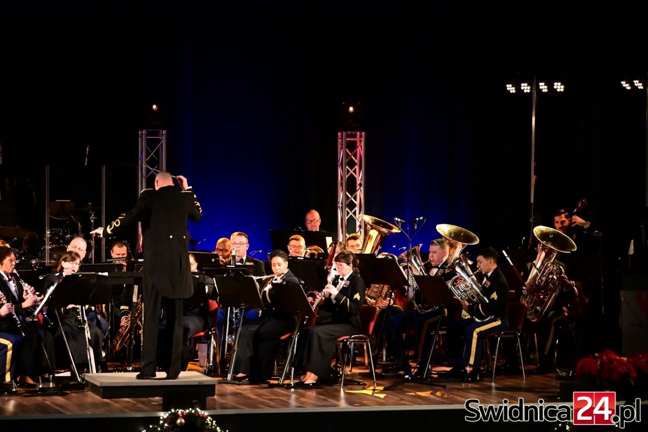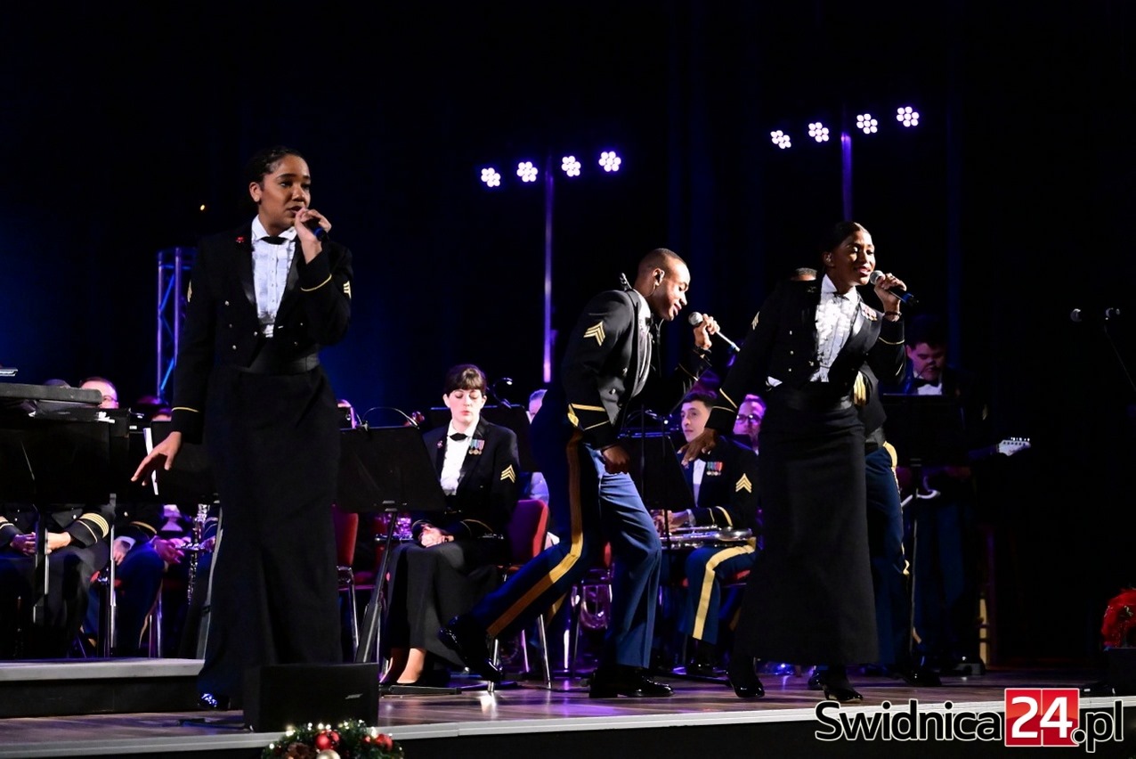 Scenę wypełniło kilkudziesięciu muzyków w mundurach Armii Stanów Zjednoczonych, zajmując niemal całą jej przestrzeń. To był wyjątkowy koncert zagrany z rozmachem, radością i magią zapowiadającą Święta Bożego Narodzenia. Świdnica znalazła się na trasie świątecznych występów Zespołu i Chóru Armii USA w Europie i Afryce.