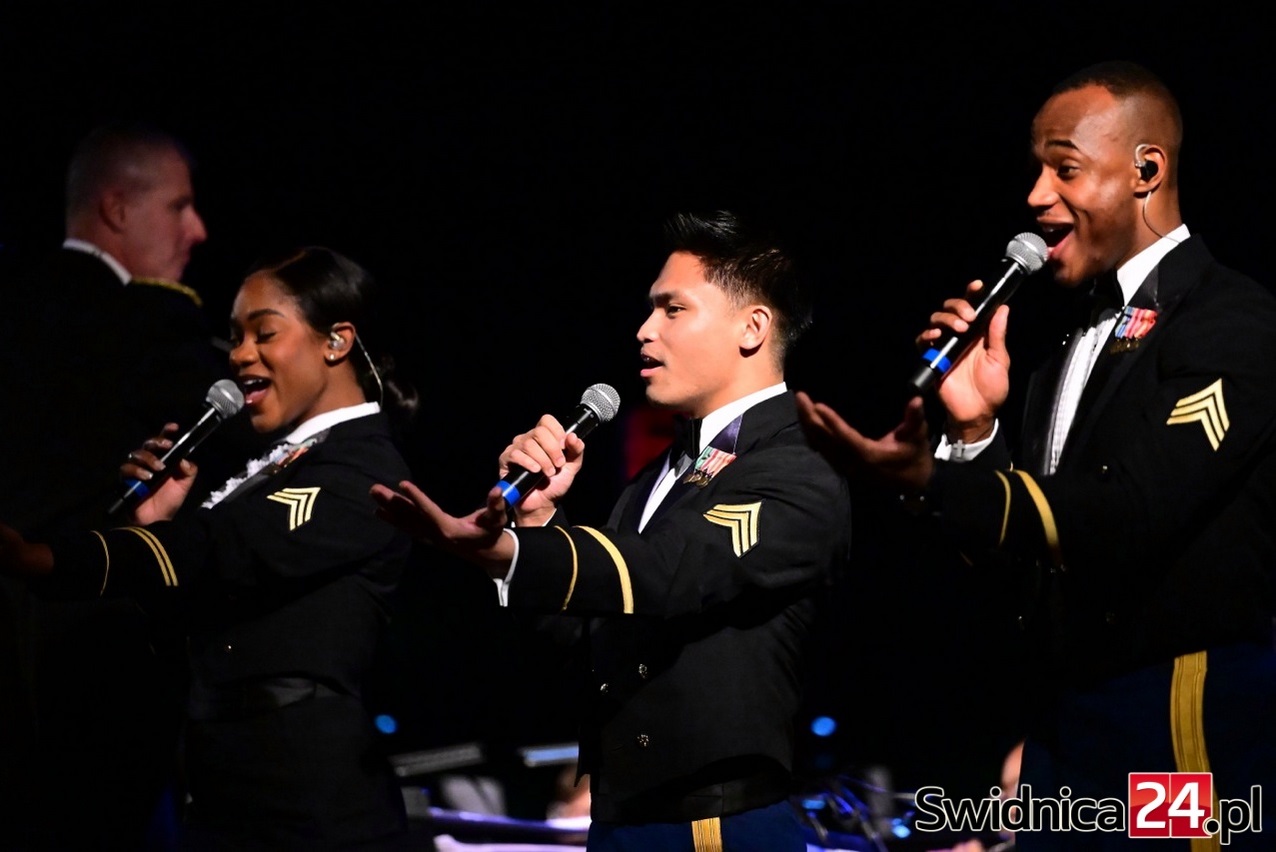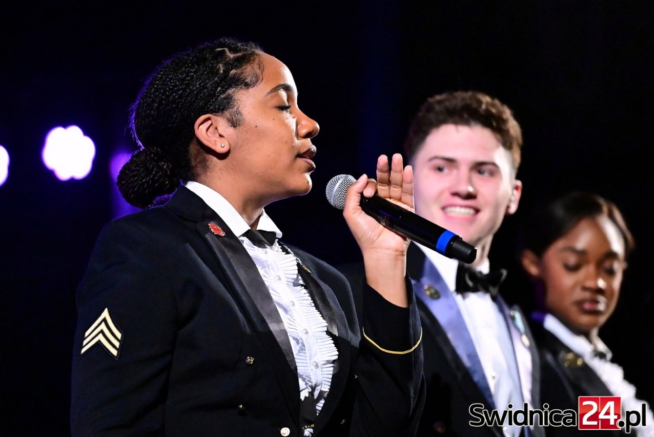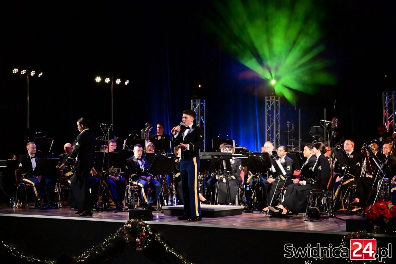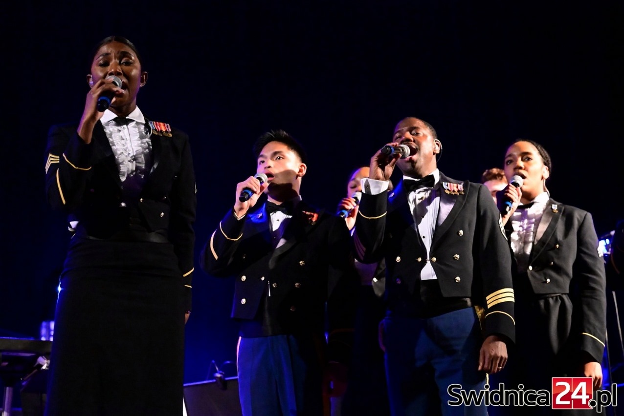 Scenę wypełniło kilkudziesięciu muzyków w mundurach Armii Stanów Zjednoczonych, zajmując niemal całą jej przestrzeń. To był wyjątkowy koncert zagrany z rozmachem, radością i magią zapowiadającą Święta Bożego Narodzenia. Świdnica znalazła się na trasie świątecznych występów Zespołu i Chóru Armii USA w Europie i Afryce.