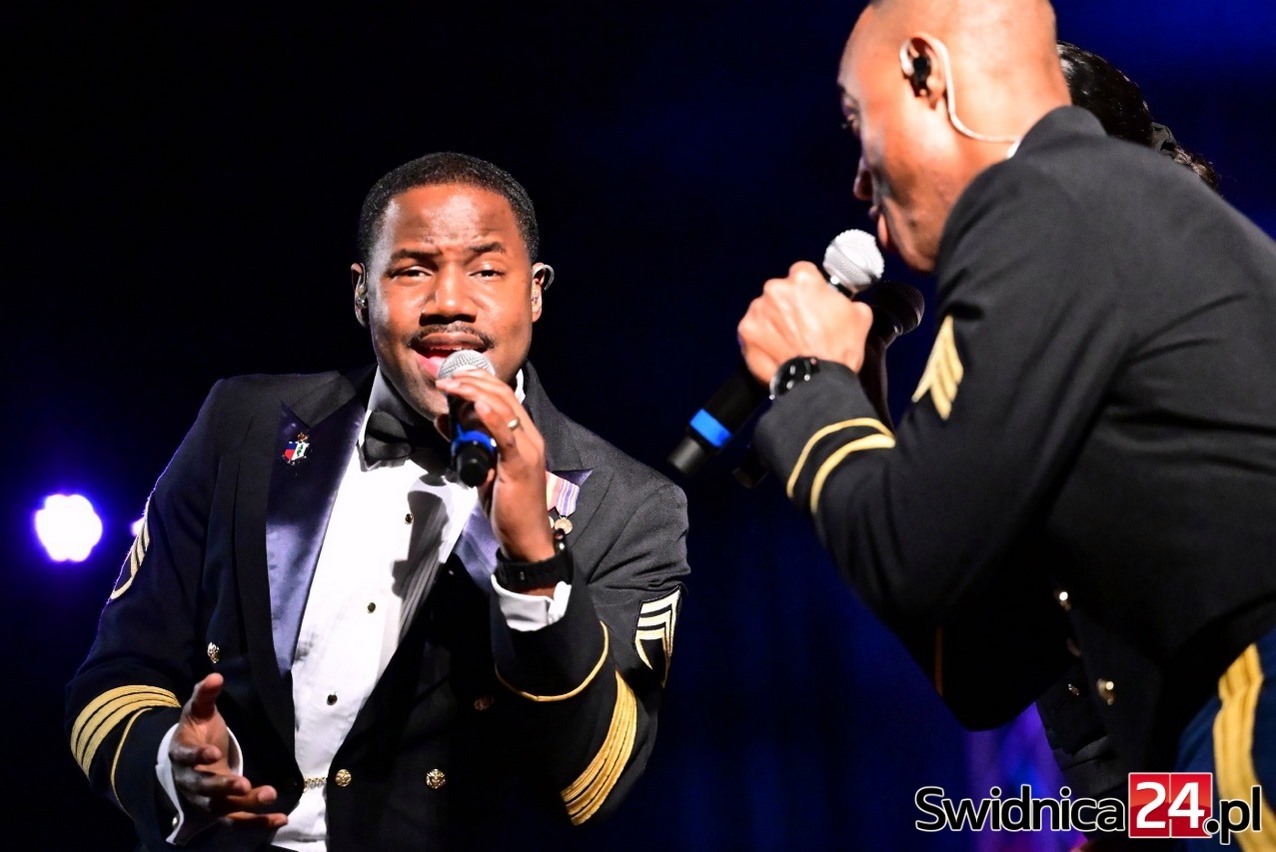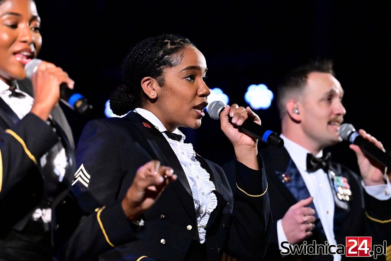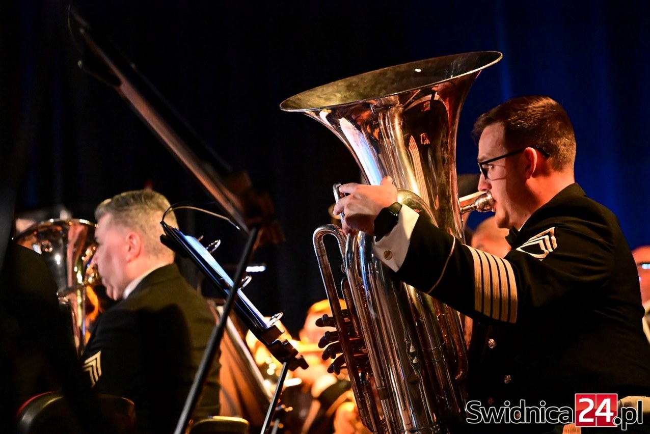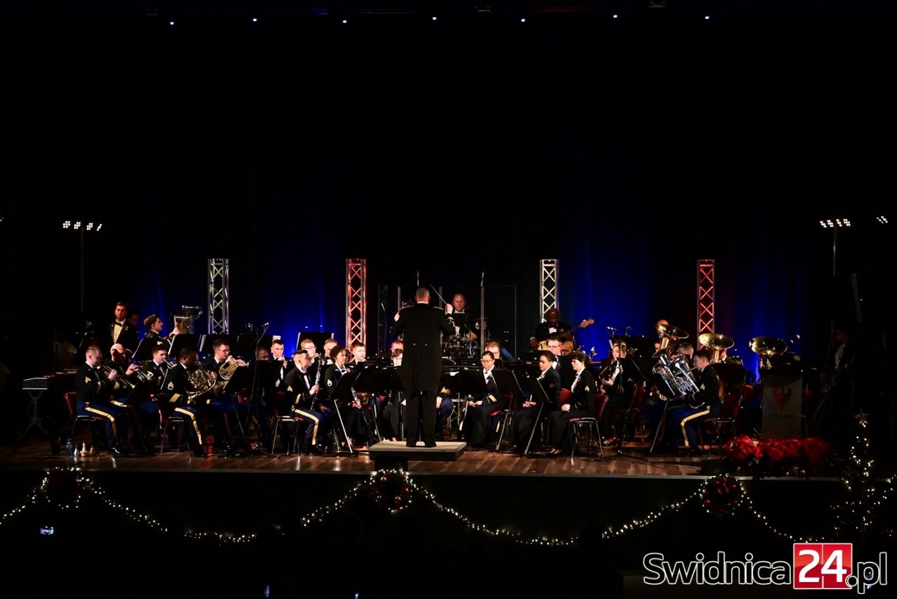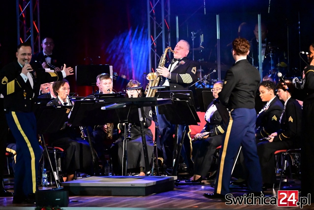 Scenę wypełniło kilkudziesięciu muzyków w mundurach Armii Stanów Zjednoczonych, zajmując niemal całą jej przestrzeń. To był wyjątkowy koncert zagrany z rozmachem, radością i magią zapowiadającą Święta Bożego Narodzenia. Świdnica znalazła się na trasie świątecznych występów Zespołu i Chóru Armii USA w Europie i Afryce.