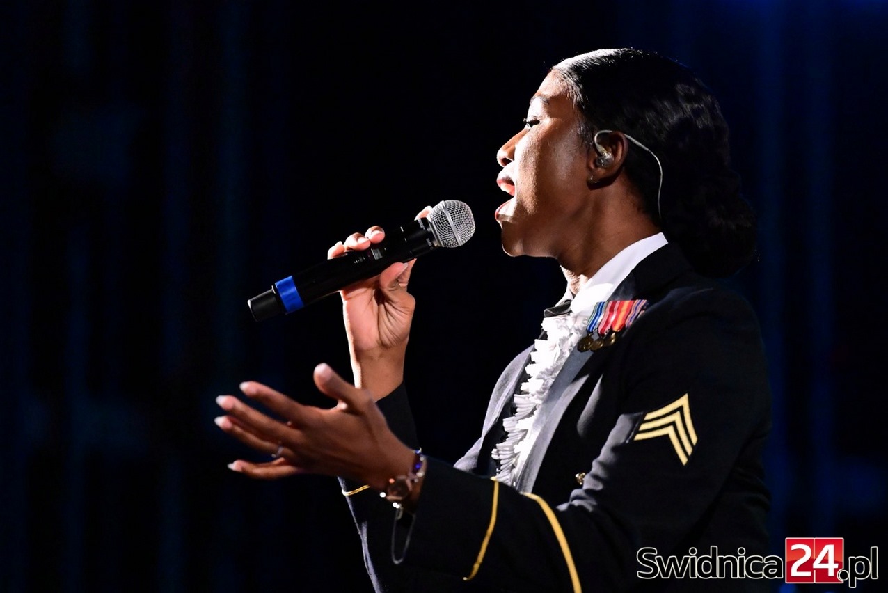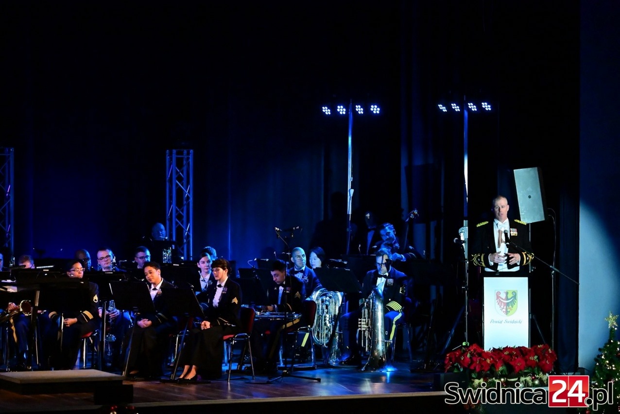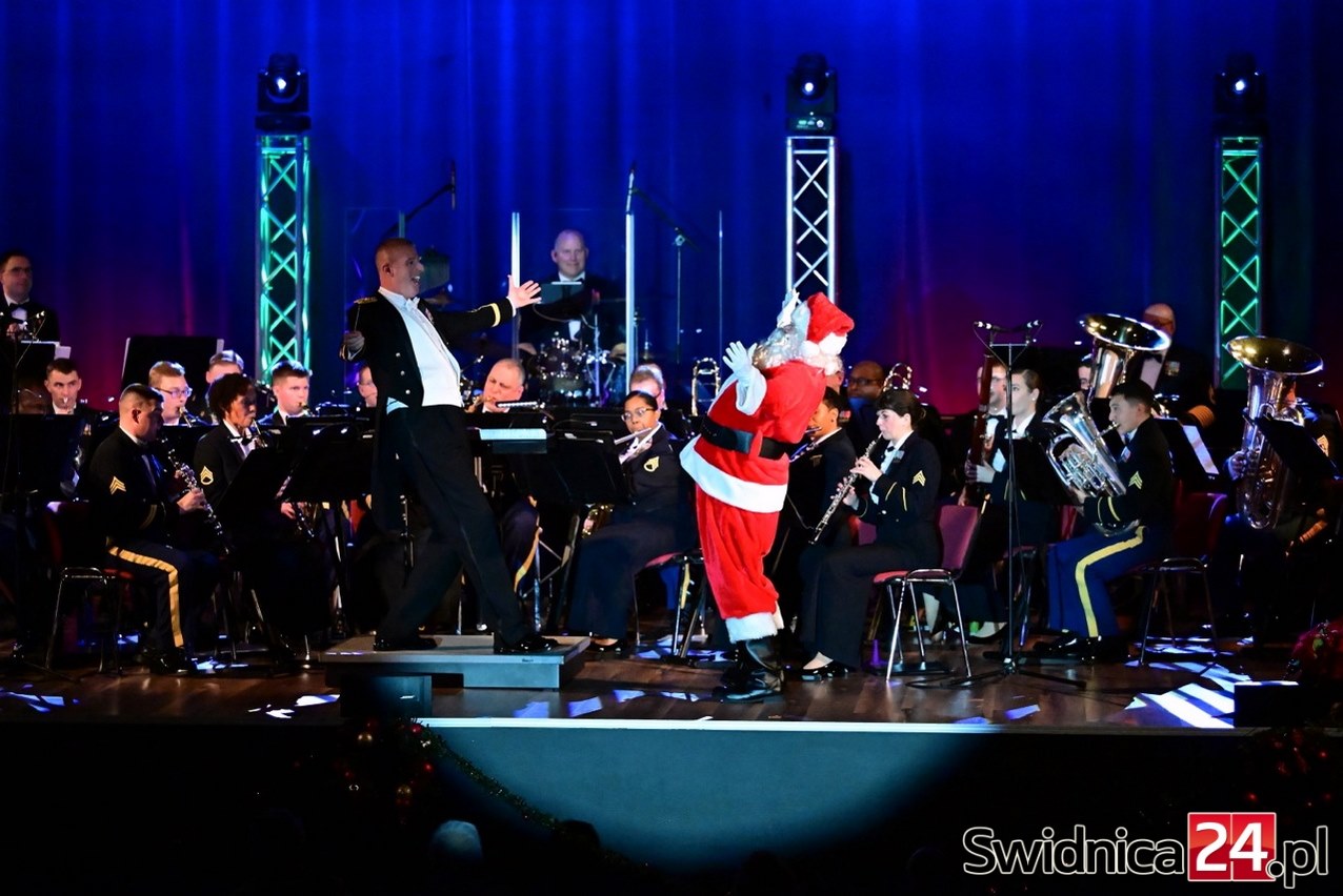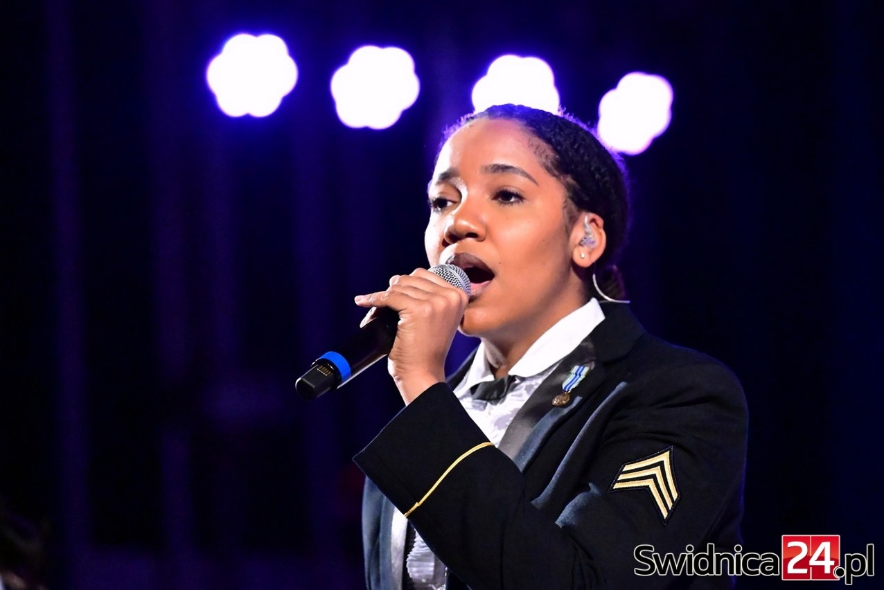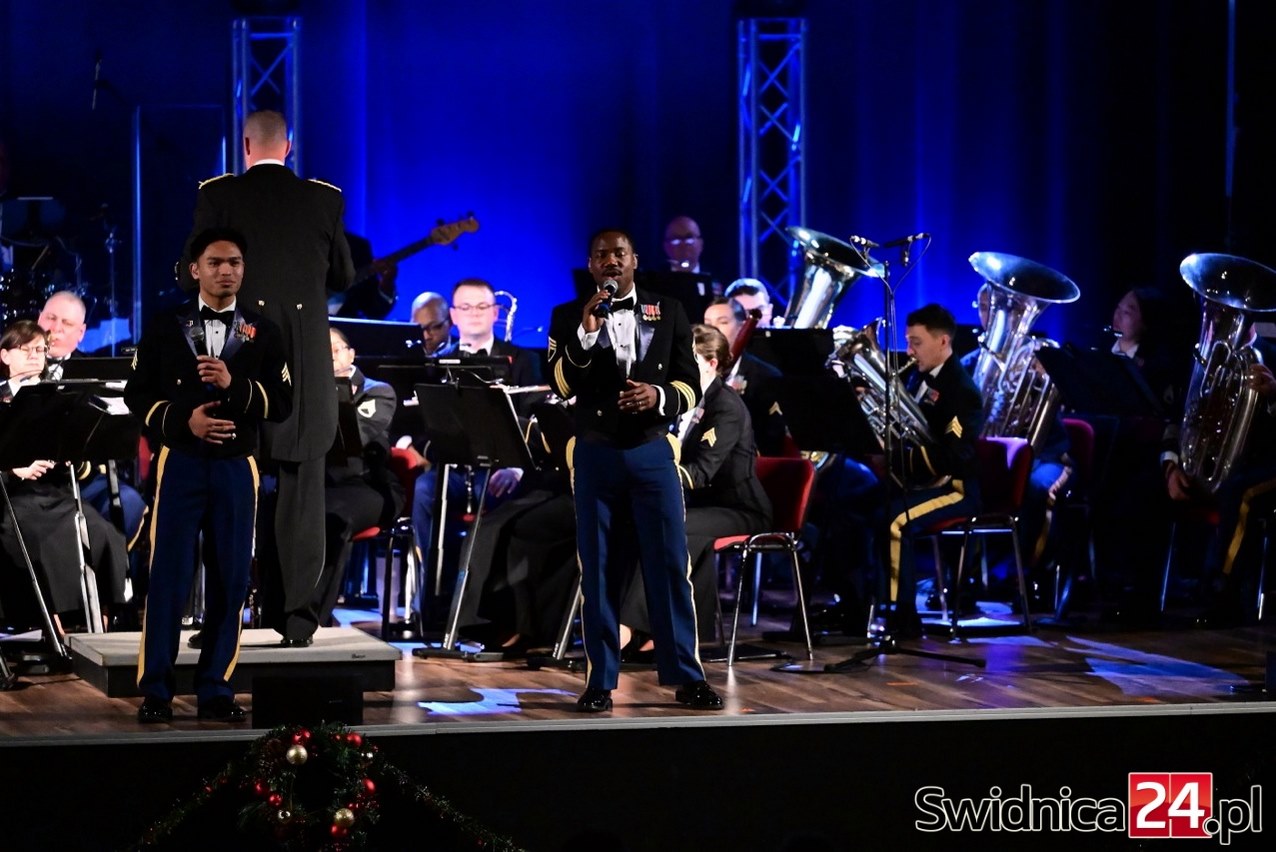 Muzycy występujący w Świdnicy to nie tylko zawodowi artyści, ale także żołnierze pełniący rolę muzycznych ambasadorów Stanów Zjednoczonych w Europie i Afryce. – Jesteśmy podekscytowani, że możemy dzielić się z Państwem świąteczną radością. Mamy nadzieję, że te święta będą dla Państwa wyjątkowe – mówił ze sceny Dean-Roy Bernard z orkiestry i chóru Armii USA.