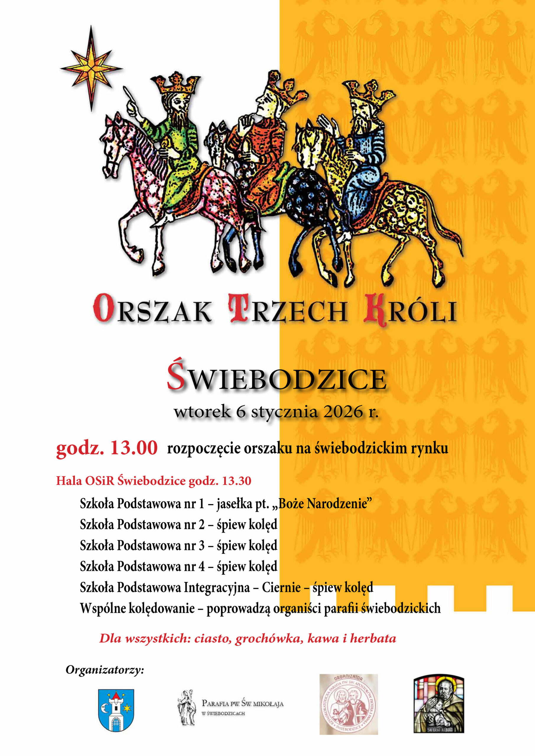 6 stycznia ulicami Świebodzic po raz kolejny przejdzie radosny Orszak Trzech Króli, który w tym roku odbędzie się pod hasłem „Nadzieją się cieszą” nawiązującym do kolędy „Mędrcy świata, monarchowie”.