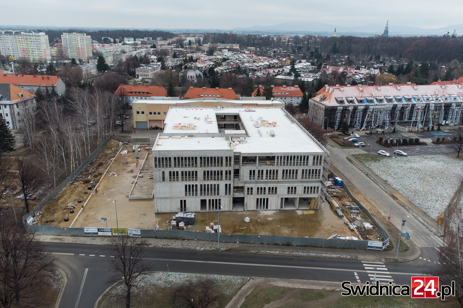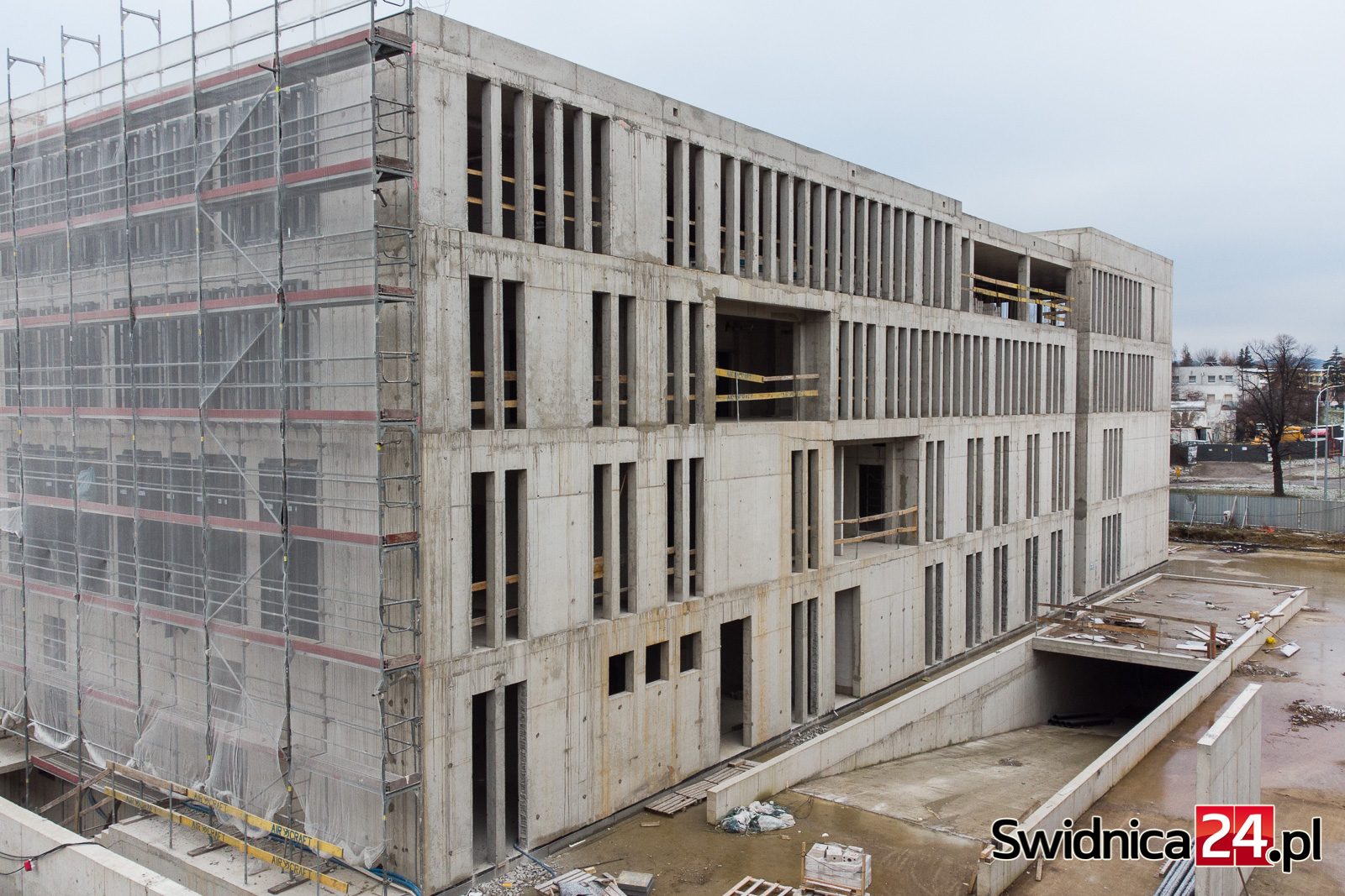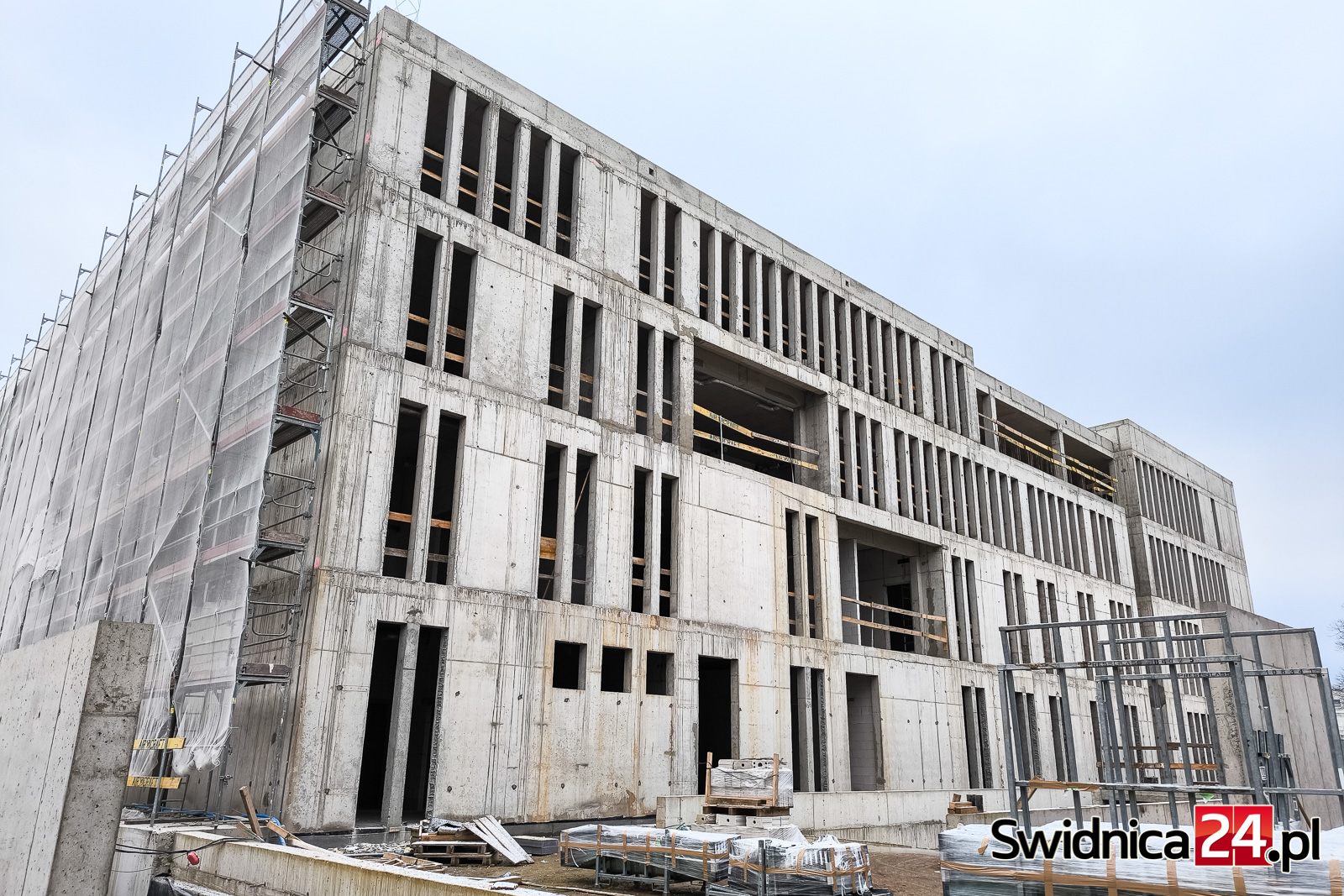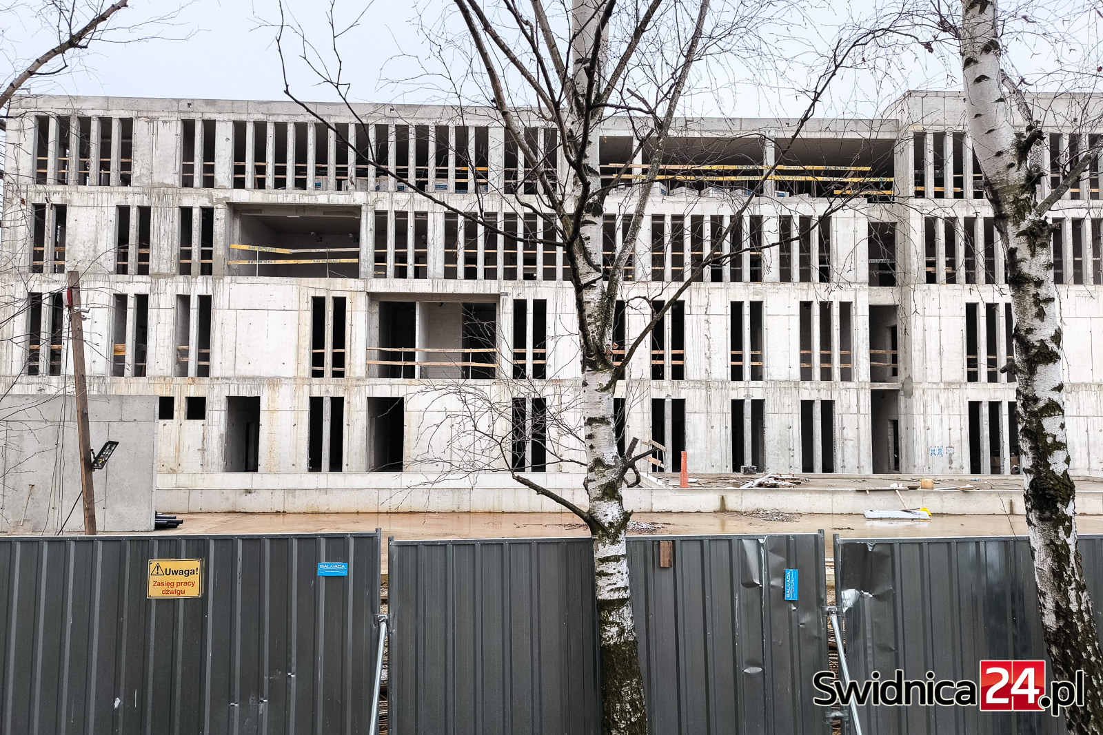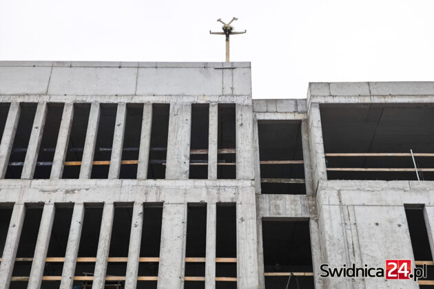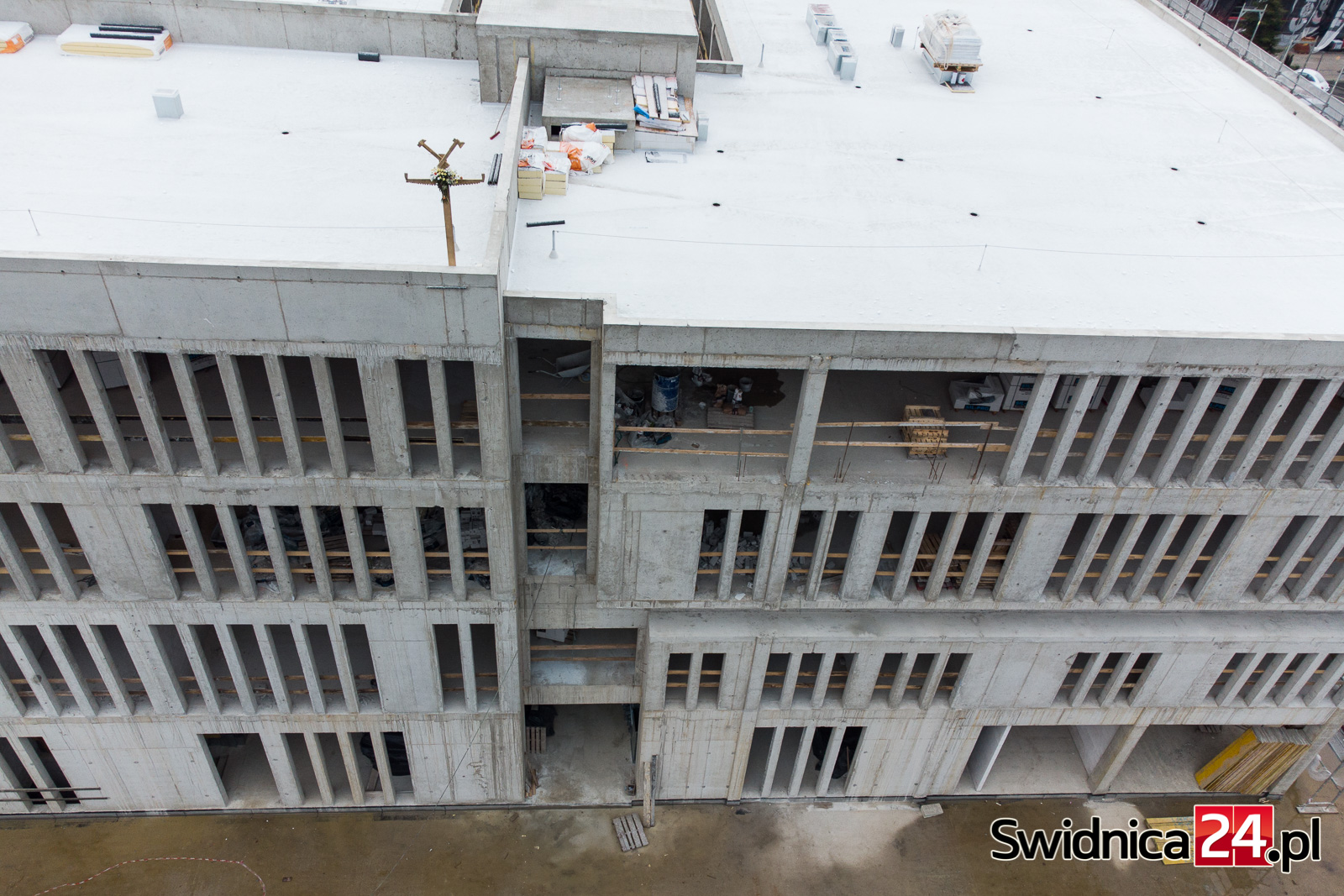 Jeszcze rok temu stały tam garaże, teraz trwa tam budowa nowej siedziby Sądu Rejonowego w Świdnicy. Inwestycja realizowana u zbiegu ulic Inwalidów Wojennych i gen. Augusta Emila Fieldorfa osiągnęła kluczowy etap. Na obiekcie zawisła symboliczna wiecha, co oznacza zakończenie prac konstrukcyjnych.