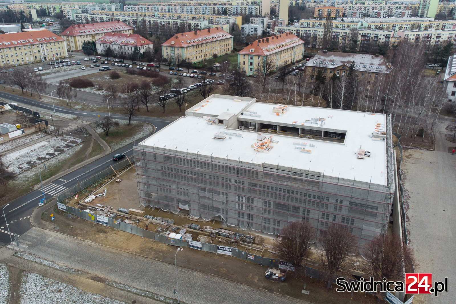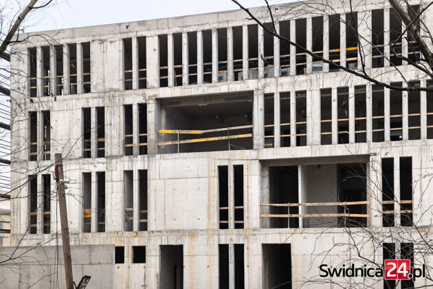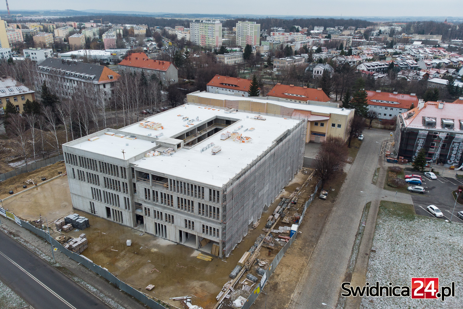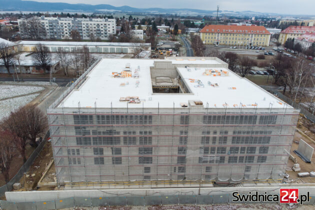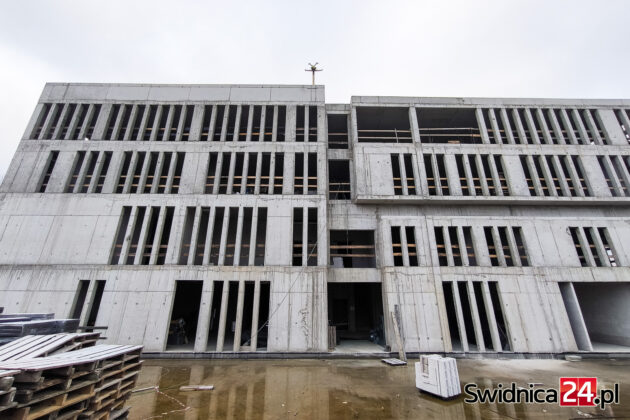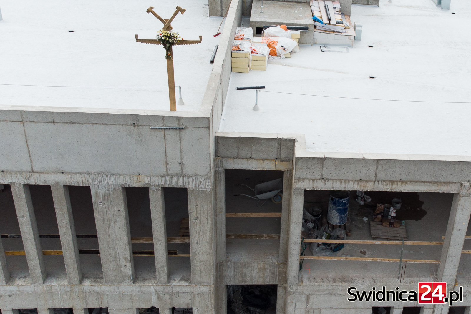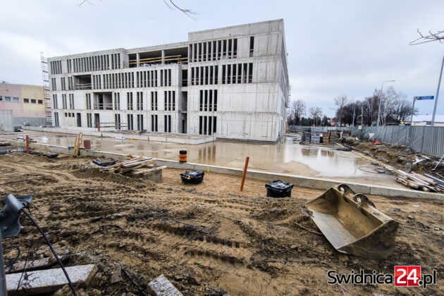 Jeszcze rok temu stały tam garaże, teraz trwa tam budowa nowej siedziby Sądu Rejonowego w Świdnicy. Inwestycja realizowana u zbiegu ulic Inwalidów Wojennych i gen. Augusta Emila Fieldorfa osiągnęła kluczowy etap. Na obiekcie zawisła symboliczna wiecha, co oznacza zakończenie prac konstrukcyjnych.