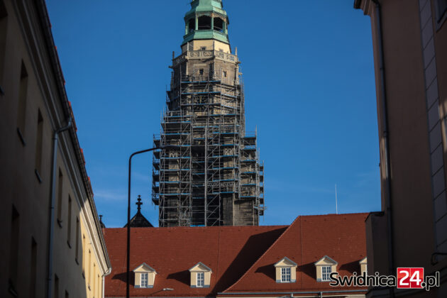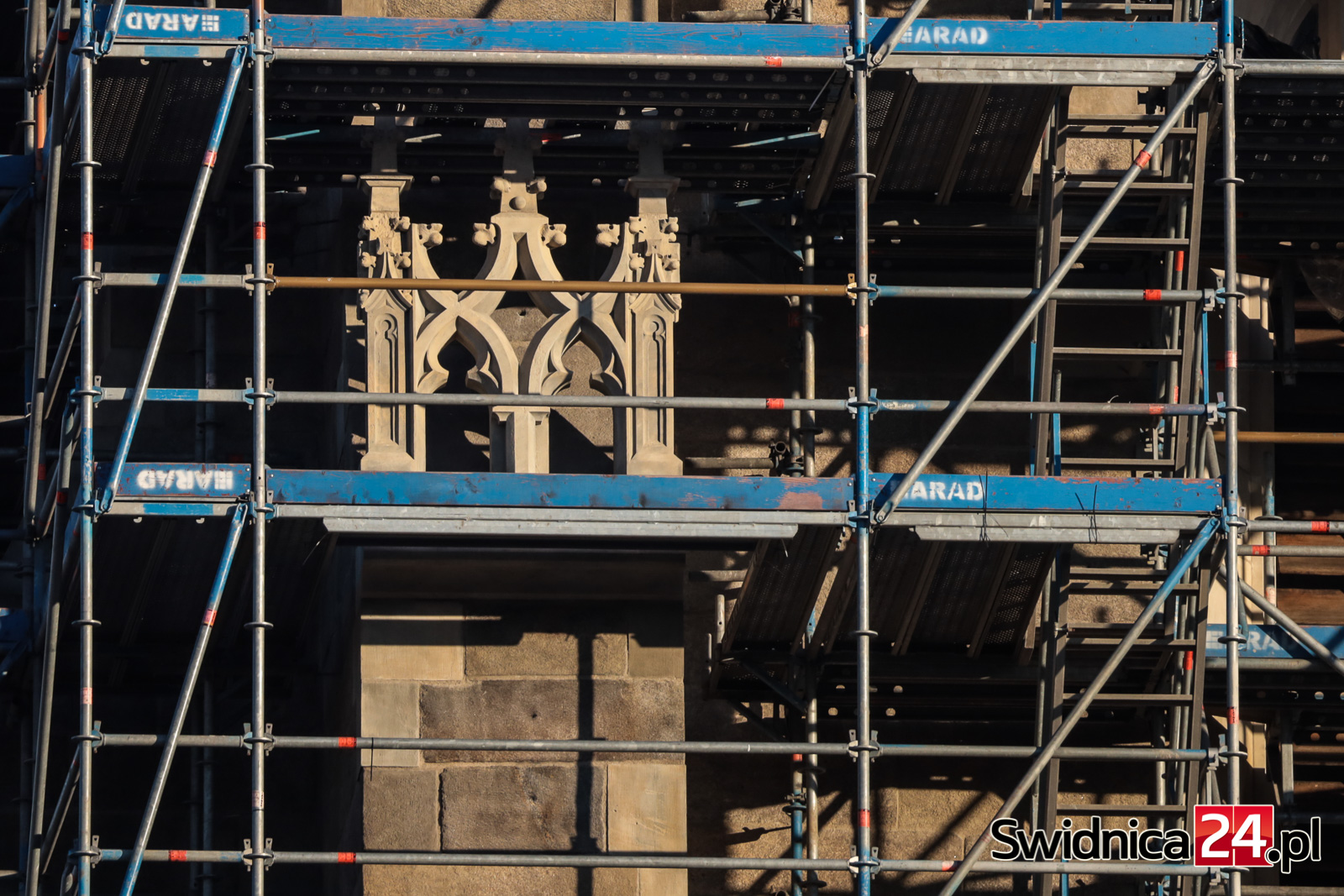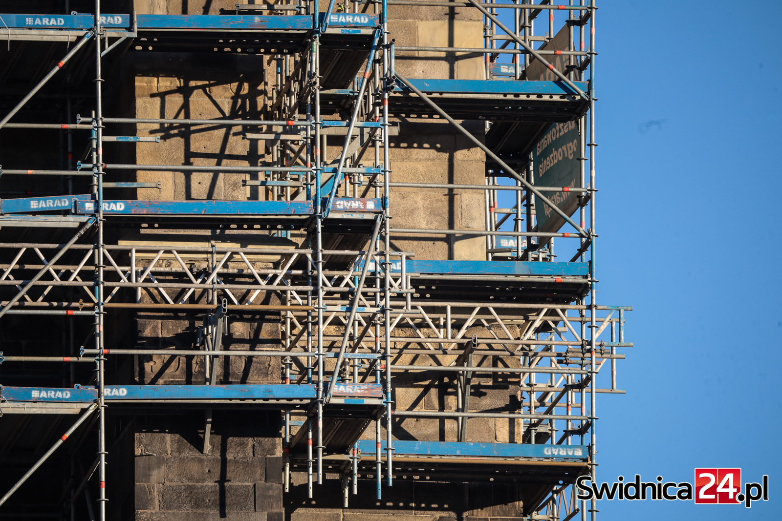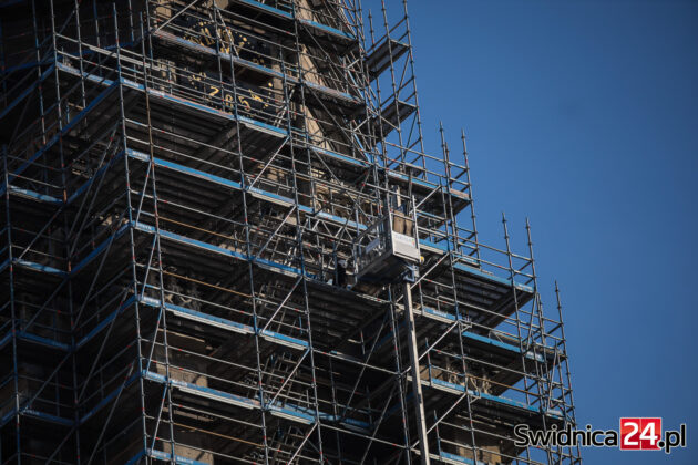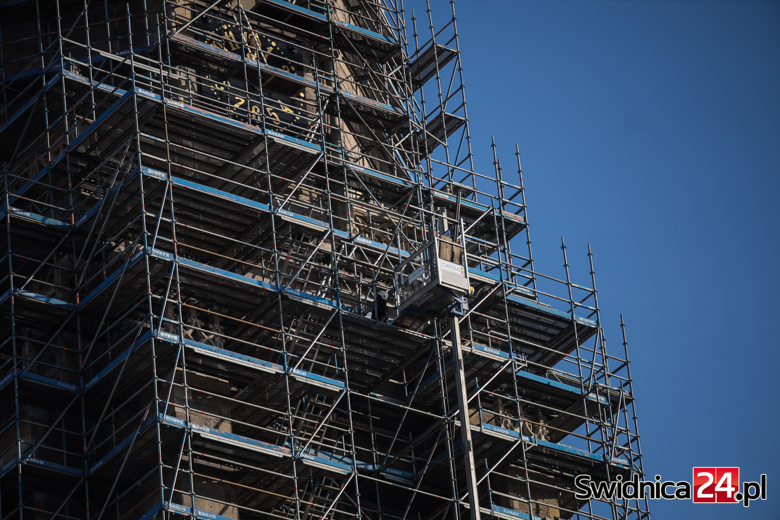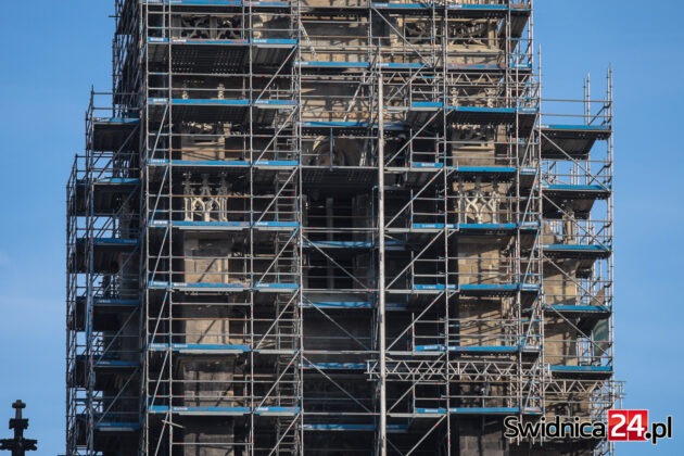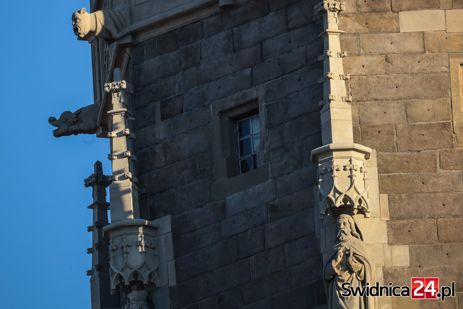 Od kilku dni trwa demontaż rusztowania, które od ponad roku otaczało wieżę świdnickiej katedry pw. św. Stanisława i św. Wacława. Cały proces może potrwać nawet miesiąc, ale już teraz podziwiać można część efektów prac konserwatorskich.