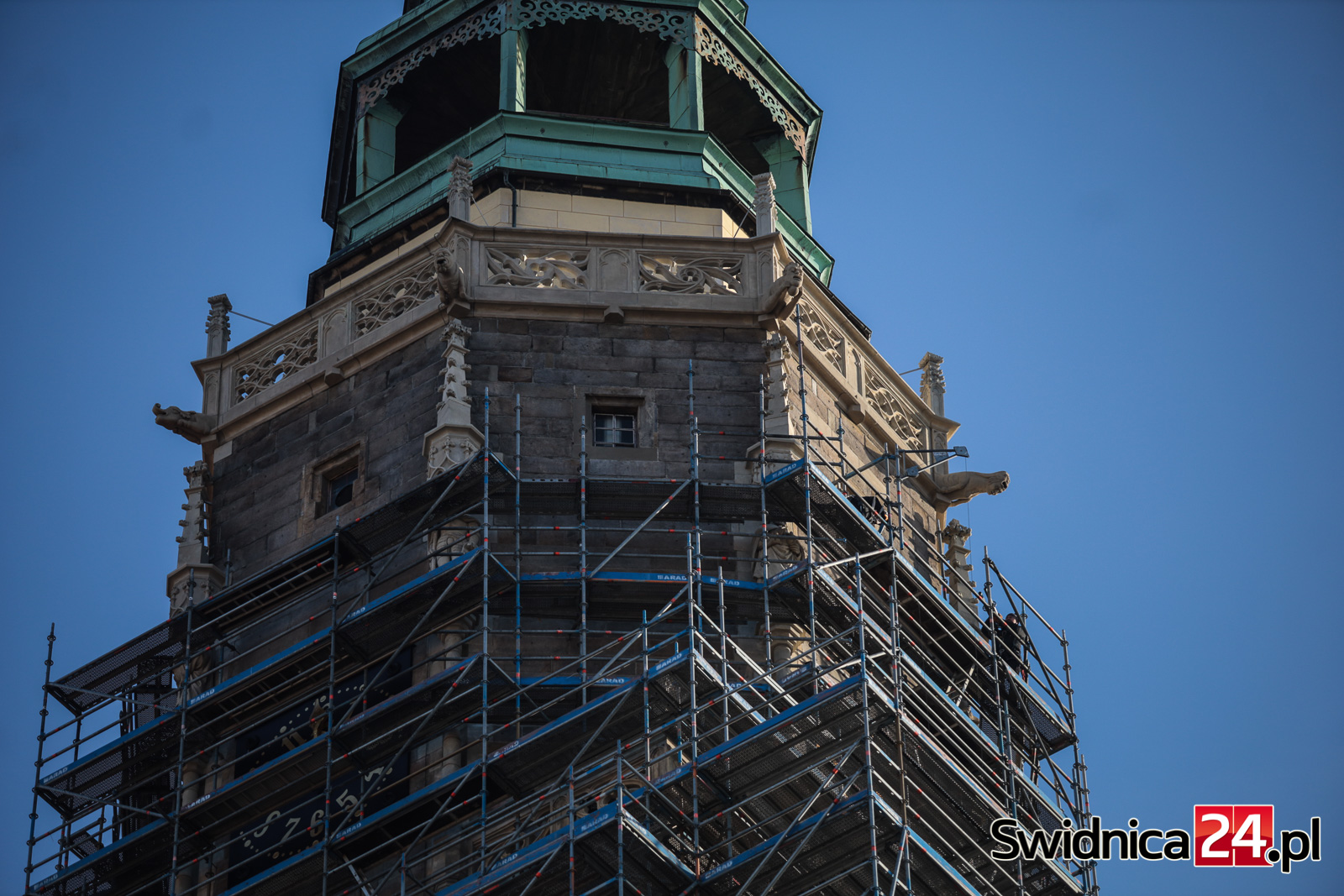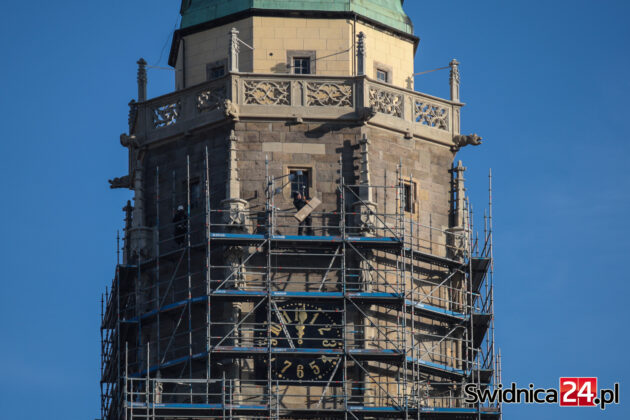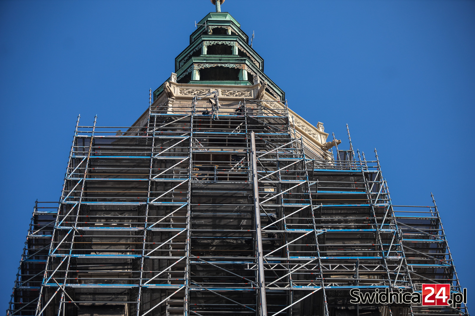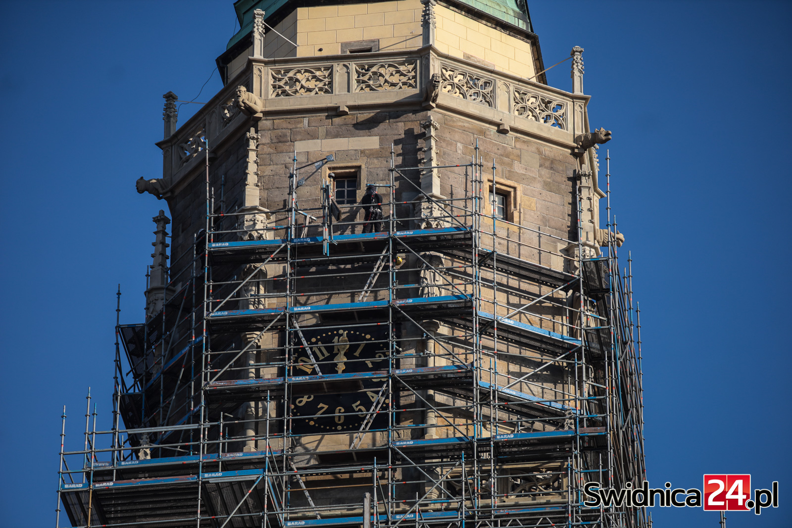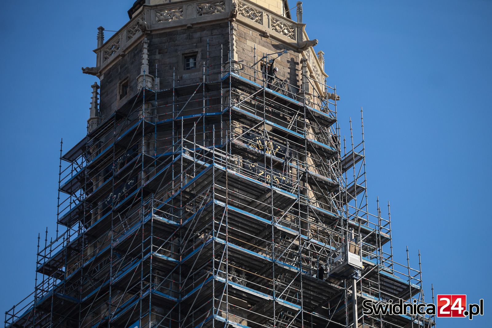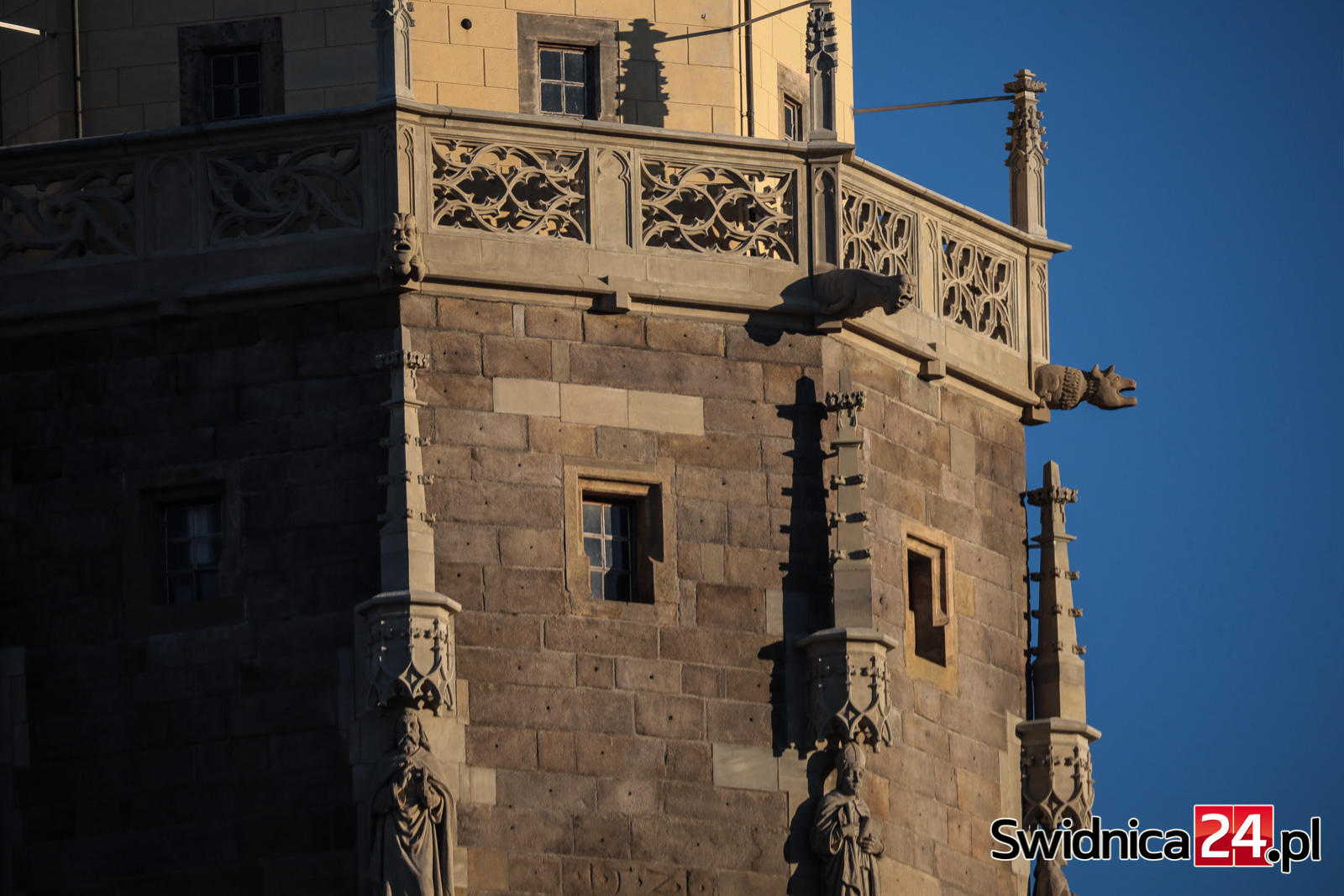 Od kilku dni trwa demontaż rusztowania, które od ponad roku otaczało wieżę świdnickiej katedry pw. św. Stanisława i św. Wacława. Cały proces może potrwać nawet miesiąc, ale już teraz podziwiać można część efektów prac konserwatorskich.