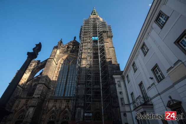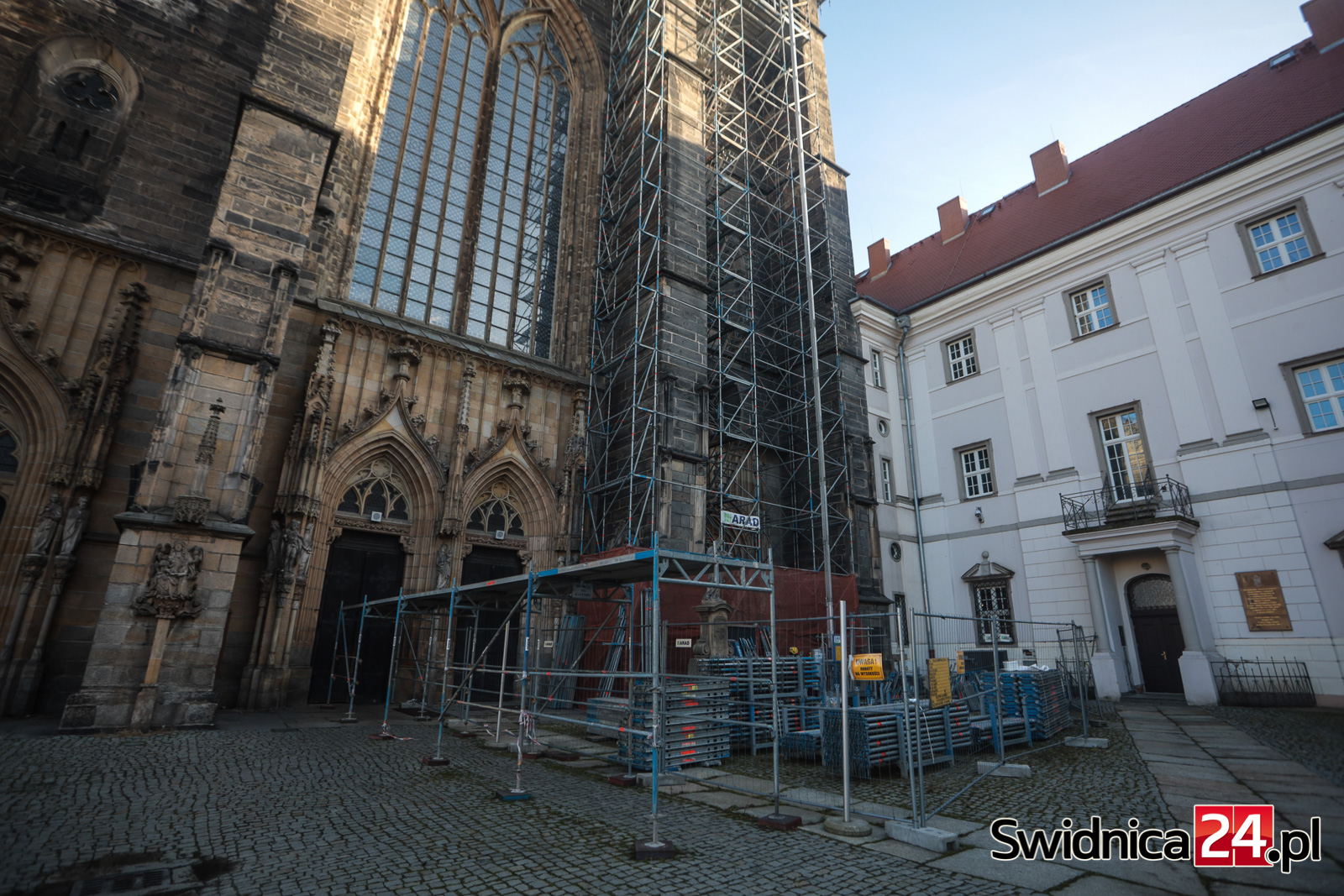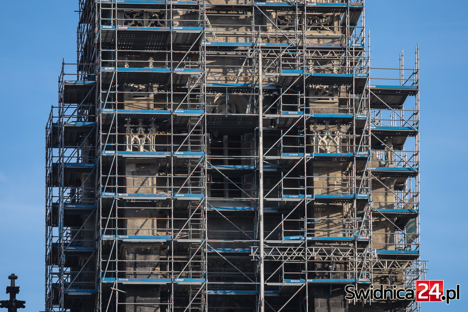 Remont wieży świdnickiej katedry ruszył w październiku 2024 roku. Przystąpiono wówczas do stawiania rusztowań. W ramach prac konserwatorskich przewidziano m.in. czyszczenie i konserwację kamiennych elementów elewacji kościoła oraz detali architektonicznych, dezynfekcję zanieczyszczonych powierzchni, wzmocnienie strukturalne powierzchni o osłabionej strukturze, uzupełnienie ubytków i rekonstrukcję detali, konserwację elementów wykonanych z piaskowca, w tym detali oraz kolumn z figurami. Na realizację tego zadania parafia katedralna otrzymała z Rządowego Programu Odbudowy Zabytków dofinansowanie w wysokości 3 mln 430 tys. złotych.