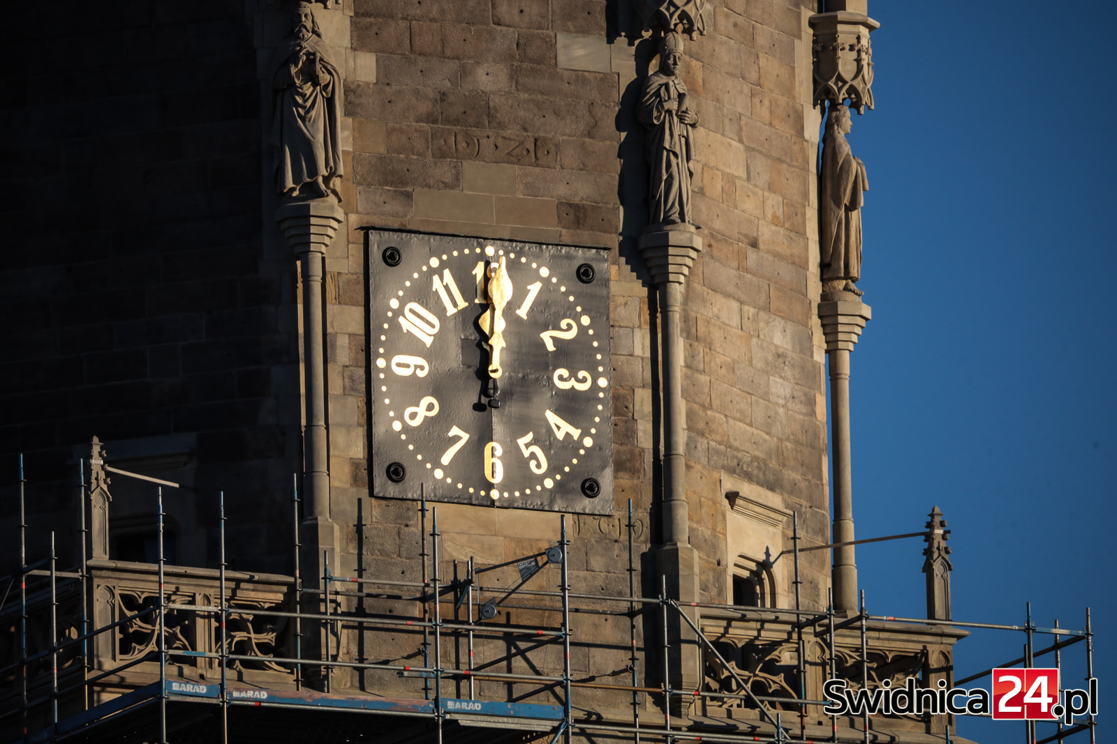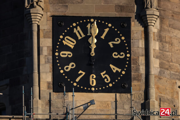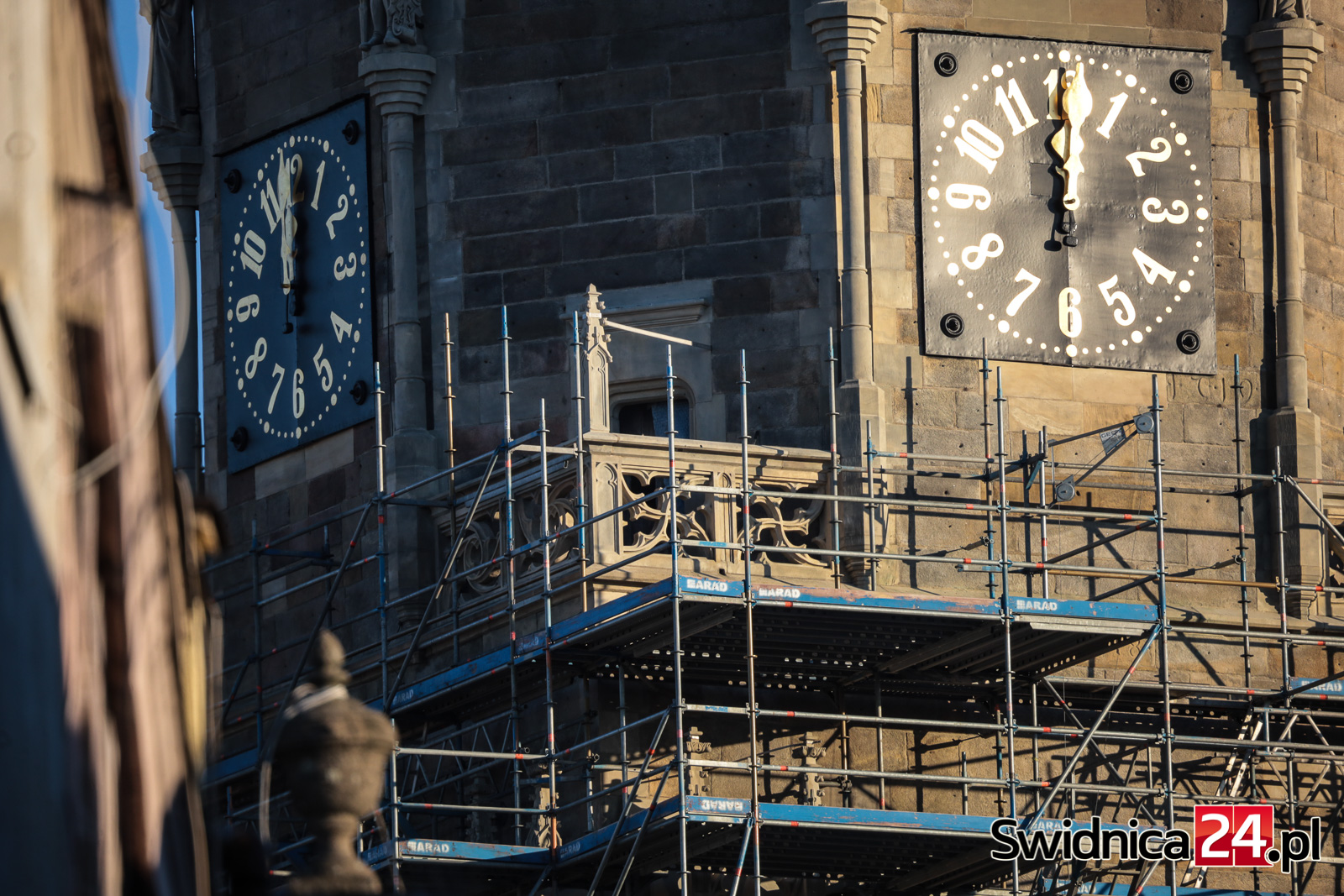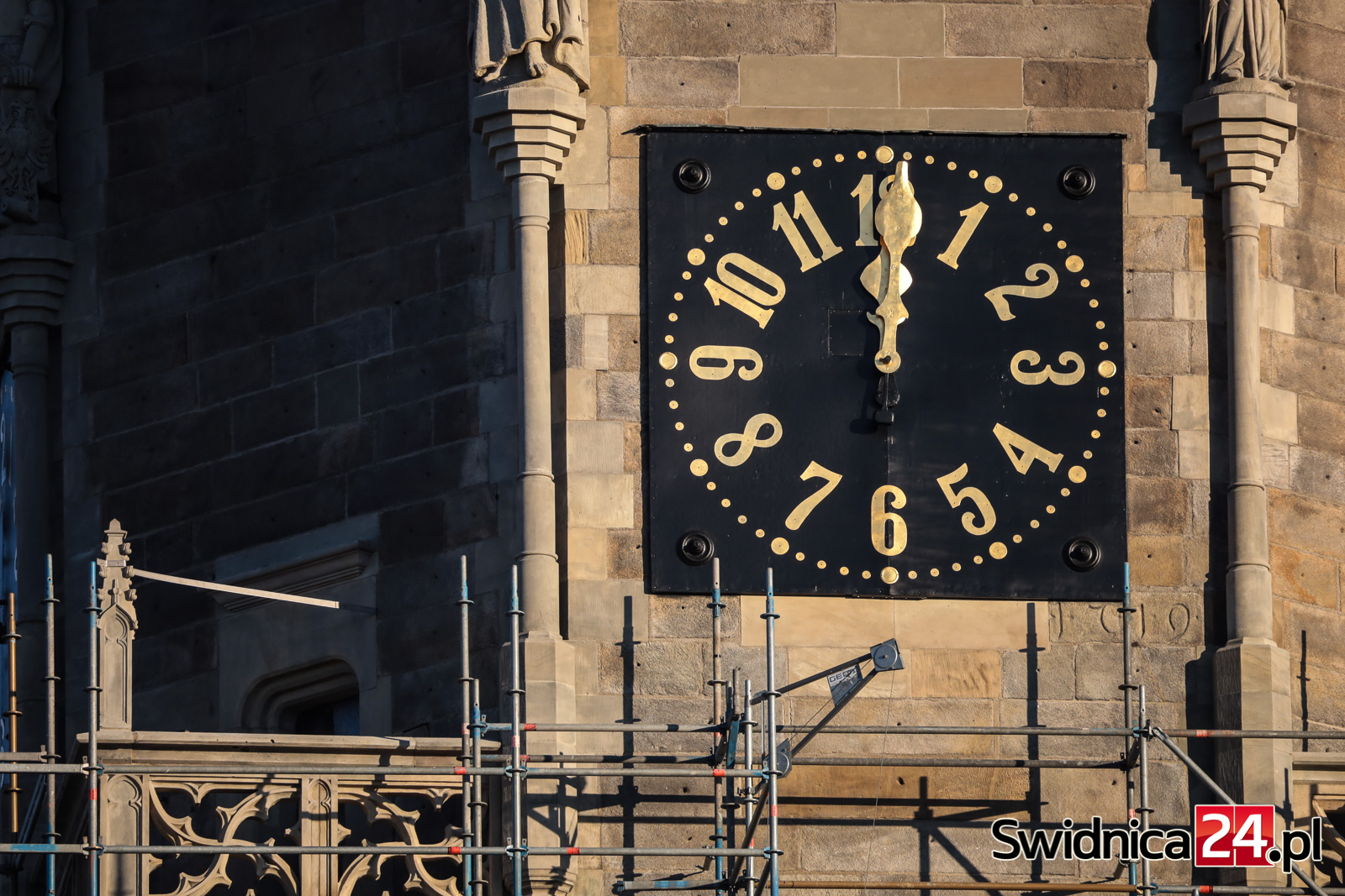 Na początku grudnia 2025 roku dokonano odbioru prac konserwatorskich, a także prac zrealizowanych w ramach I etap remontu katedralnego zegara wieżowego. Kilka dni temu przystąpiono do demontażu rusztowania otaczające przez ponad rok wieżę kościoła. – Nadeszła długo oczekiwana chwila odsłony odnowionej wieży. Powoli znikają rusztowania i katedralna wieża ukazuje „wypasione” tarcze zegarowe, z pozłoconymi cyframi i wskazówkami, które po konserwacji odzyskały wygląd sprzed 130 lat. I choć na wydzwanianie godzin przyjdzie nam jeszcze poczekać, to pięknie odnowione tarcze już teraz cieszą oczy – wskazuje Lucyna Szpilakowska ze świdnickiej Fundacji św. Ignacego Loyoli.