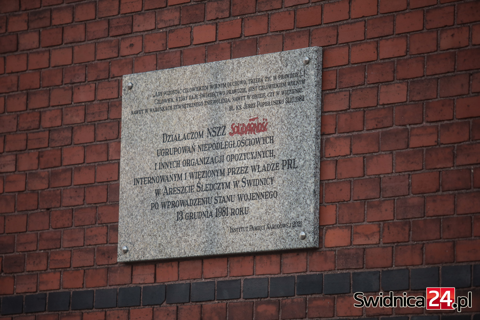 Rocznicowe spotkanie zorganizowane zostało przy tablicy pamiątkowej poświęconej internowanym w stanie wojennym, która cztery lata temu umieszczona została na murze Aresztu Śledczego w Świdnicy, przy alei Niepodległości. 12 grudnia, w przeddzień 44. rocznicy wprowadzenia stanu wojennego ponownie spotkali się przy niej działacze pierwszego NSZZ „Solidarność” – Bolesław Marciniszyn, Wacław Suliński oraz Marek Kowalski. Dawni opozycjoniści przypomnieli wydarzenia sprzed lat, a przysłuchiwała im się świdnicka młodzież.