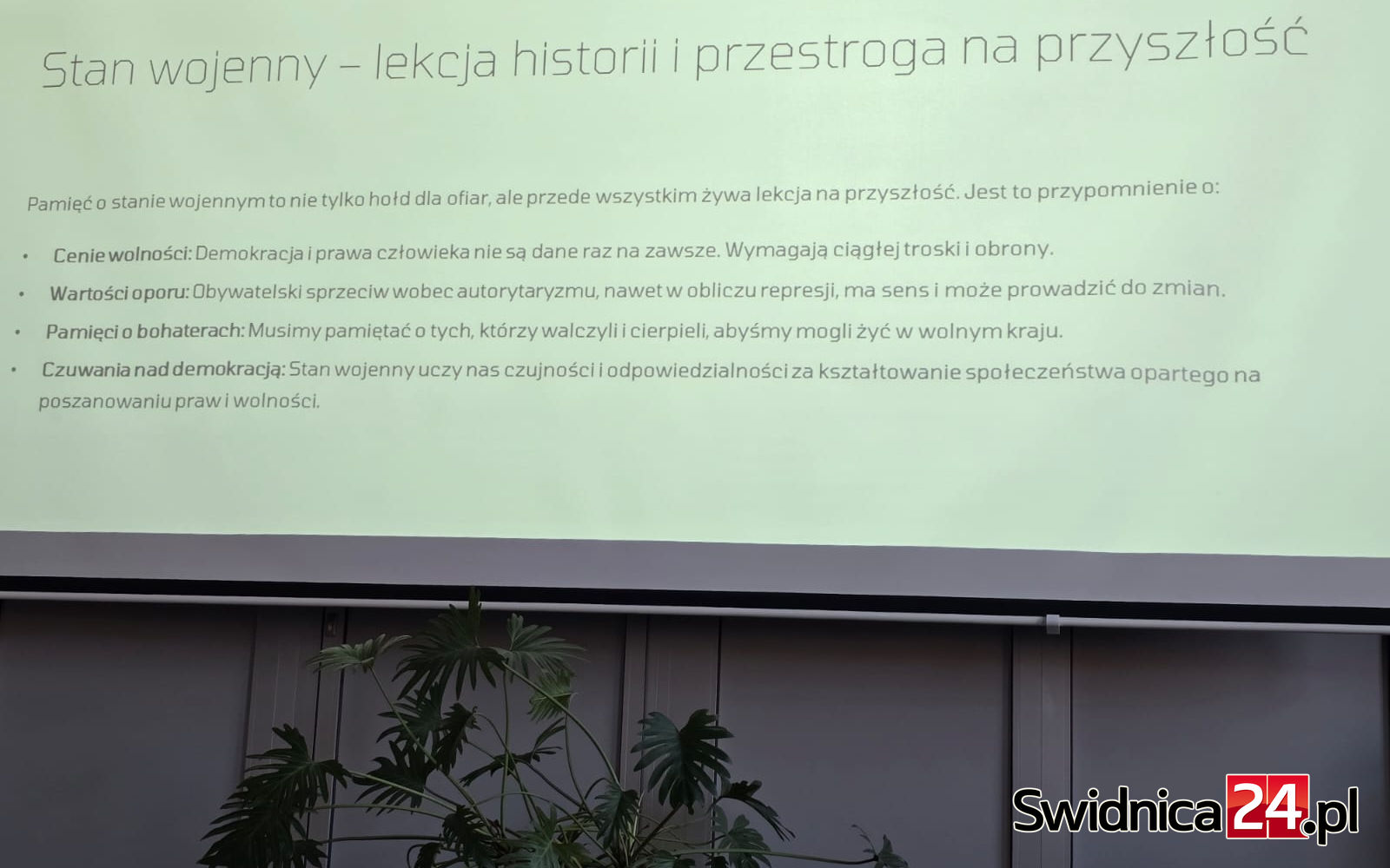 W przeddzień 44. rocznicy wprowadzenia przez komunistyczne władze stanu wojennego świdniccy działacze pierwszej Solidarności zaprosili młodzież do udziału w obywatelskiej lekcji historii. W tym roku w organizację rocznicowych obchodów włączył się Zespół Szkół Budowlano-Elektrycznych w Świdnicy, w którym przygotowano wystawę zatytułowaną „Od PRL do Solidarności”.