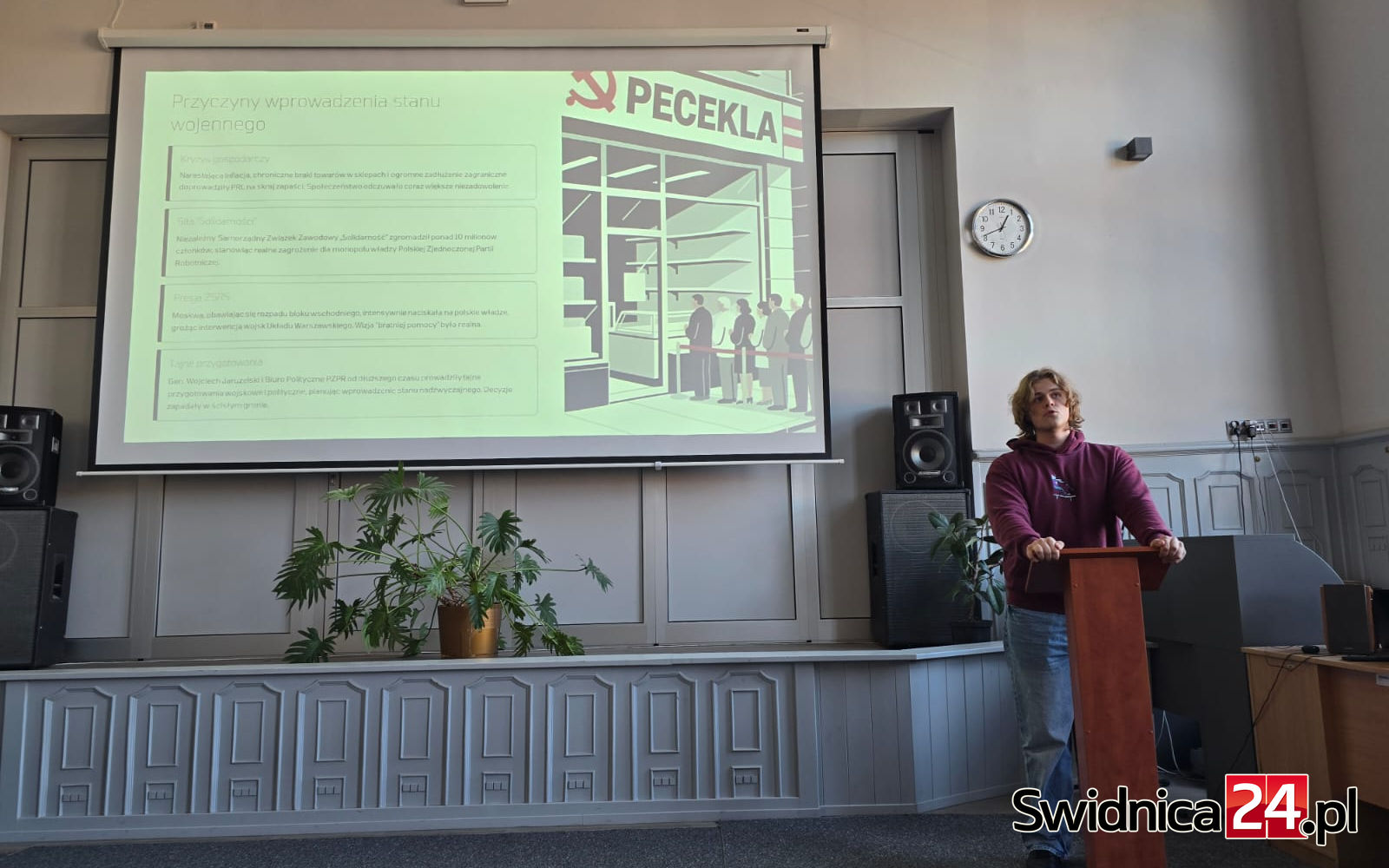 – Chciałabym, żeby z tej lekcji historii młodzież wyniosła jak największą wiedzę. Mam nadzieję, że dzięki temu będą wiedzieli trochę więcej o tym, co się działo na terenie Świdnicy oraz w Polsce – podkreśla Marzena Zięba, nauczyciel historii w Zespole Szkół Budowlano-Elektrycznych im. Jana III Sobieskiego w Świdnicy. W ramach rocznicowych obchodów w szkole przygotowana została wystawa zatytułowana „Od PRL do Solidarności”, a także zorganizowana została lekcja historii, którą poprowadził jeden z uczniów – Hubert Krzeczkowski.