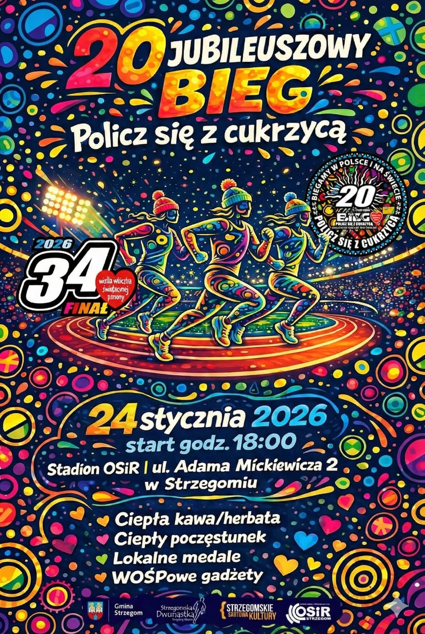 Pokazy strażackie, morsowanie, warsztaty ze Strzegomską Grupą Poszukiwawczą oraz wycieczka lokalnym szlakiem turystycznym – to tylko niektóre z atrakcji zaplanowanych na 34. Finał Wielkiej Orkiestry Świątecznej Pomocy w Strzegomiu. Cykl orkiestrowych wydarzeń zainauguruje charytatywny bieg „Policz się z cukrzycą”, który już po raz czwarty organizuje stowarzyszenie Strzegomska Dwunastka. Biegowa akcja odbędzie się już w sobotę, 24 stycznia o godzinie 18.00 na bieżni lekkoatletycznej Ośrodka Sportu i Rekreacji w Strzegomiu.