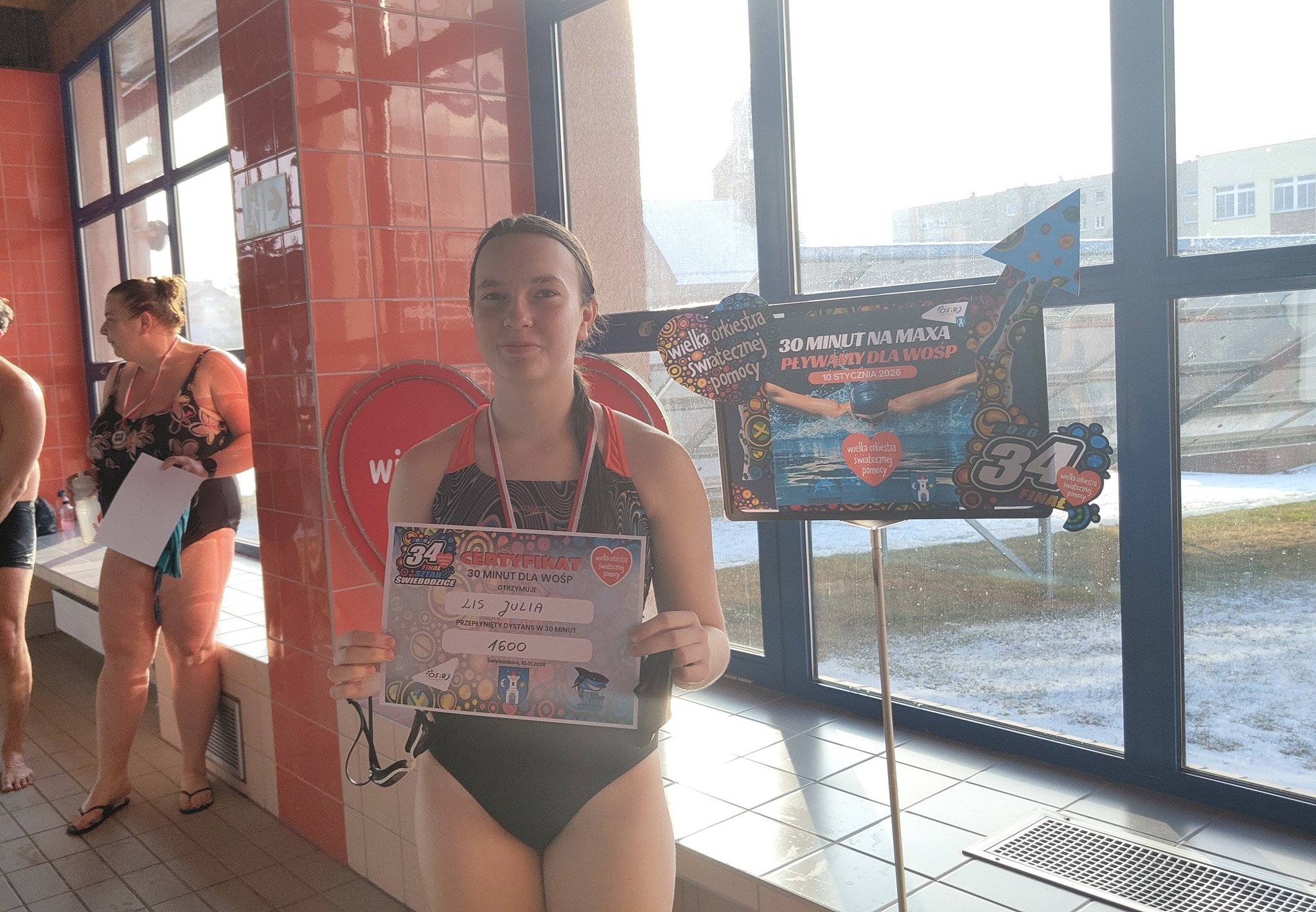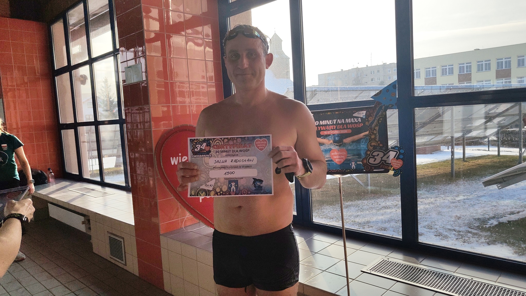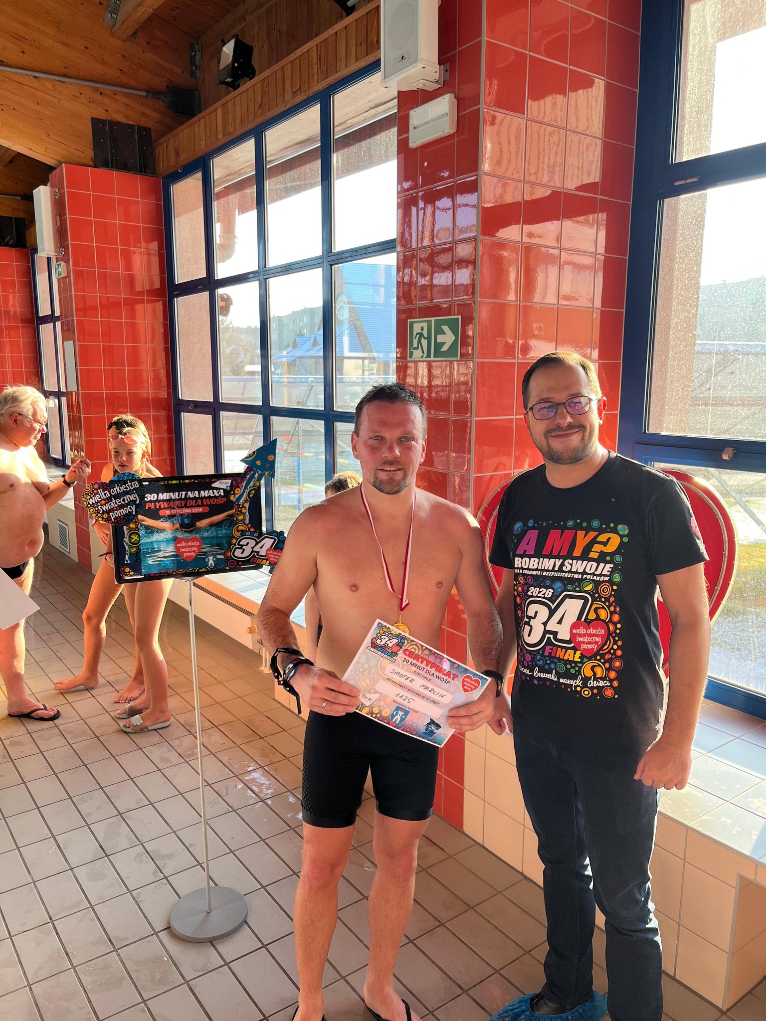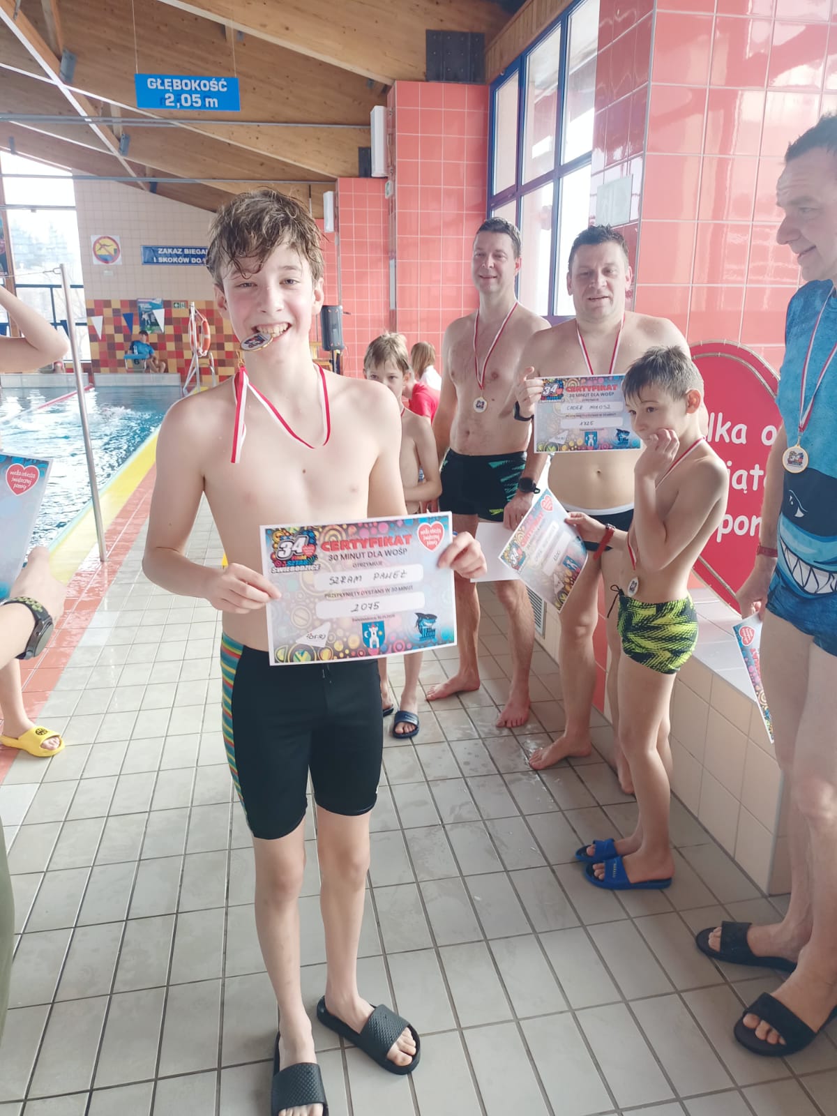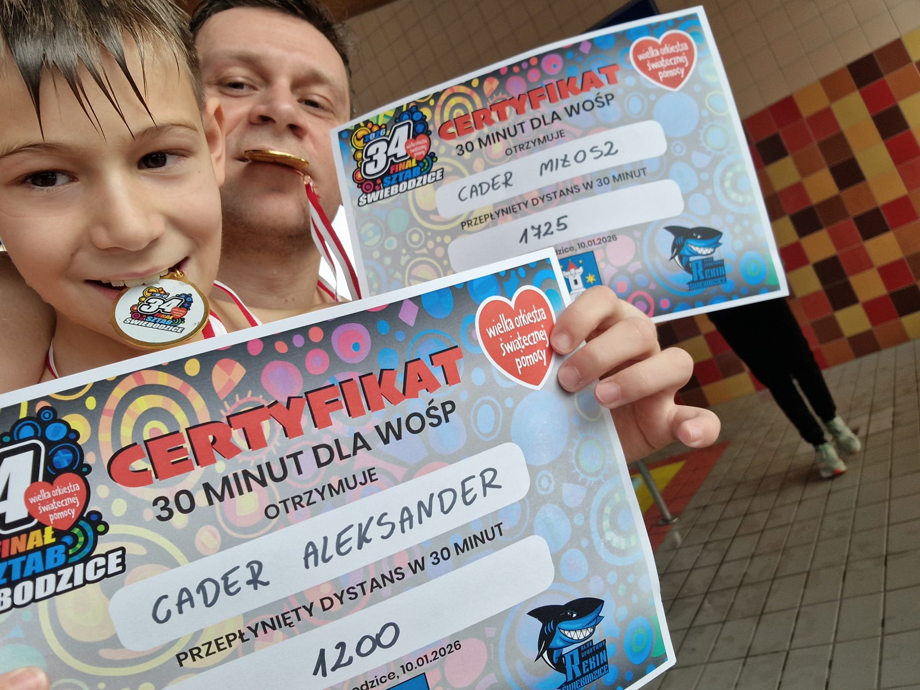 – Pływaliśmy od 11.00 do 14.30 na terenie pływalni Ośrodka Sportu i Rekreacji w Świebodzicach. Wystartowało 48 osób: 17 kobiet i 31 mężczyzn. Łącznie przepłynięty dystans to zawrotne 75.900 metrów! Wszystkim towarzyszyło hasło „Zdrowe brzuszki naszych dzieci”, zgodnie z celem 34. edycji Wielkiej Orkiestry Świątecznej Pomocy – przekazują przedstawiciele Klubu Sportowego Rekin Świebodzice.