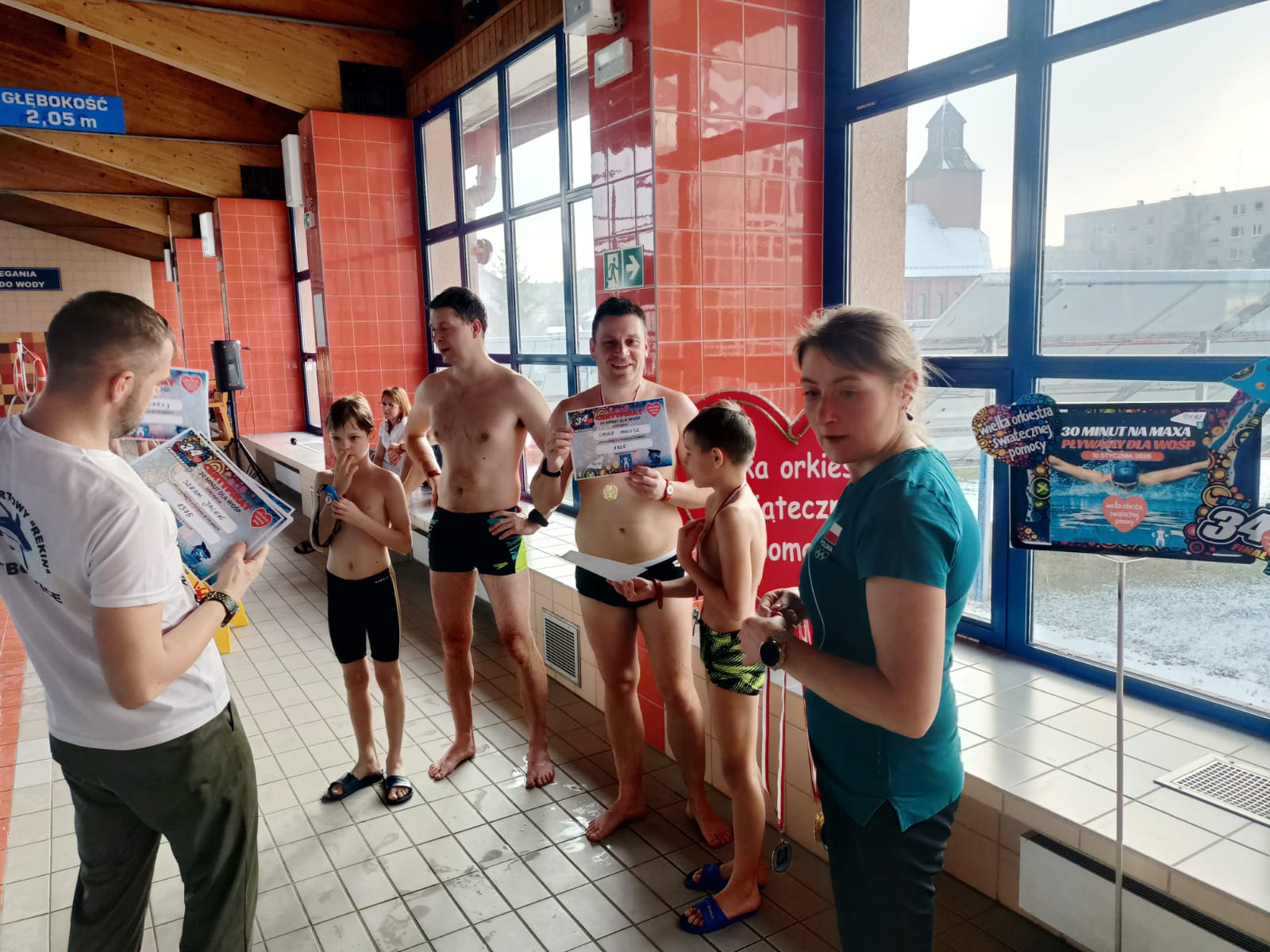 Choć wyniki miały w sobotę, 10 stycznia drugorzędne znaczenie, to odnotujmy, że w ciągu 30 minut w wodzie w kategorii pań najwięcej przepłynęła Agnieszka Gajdowska, uzyskując 2325 metrów. Za nią uplasowały się Aleksandra Wiśniewska (1900) i Natasza Kułak (1775). W kategorii panów najlepsi okazali się: Maciej Jachym i Nataniel Zieliński (obaj po 2100 metrów) oraz Paweł Szram (2075). Uczestnicy po swojej próbie otrzymywali pamiątkowy certyfikat i medal ufundowany przez Tomasz Megesa, radnego Rady Miejskiej w Świebodzicach.