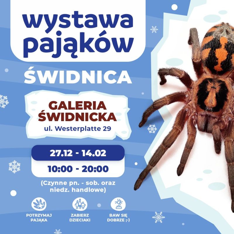 Wystawa pająków trwa w Galerii Świdnickiej. – Pająki w całej swojej różnorodności: egzotyczne, barwne, zaskakujące. Dowiesz się, jak żyją, jak się poruszają i dlaczego fascynują naukowców i miłośników przyrody na całym świecie. Nie bój się zaciekawić! To idealna okazja, by zobaczyć te niesamowite stworzenia z bliska w bezpiecznych warunkach – zaprasza galeria. Więcej informacji – TUTAJ.