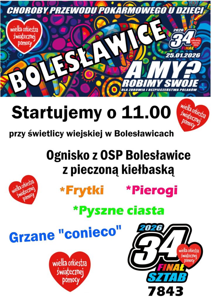 Oprócz tradycyjnej kwesty ulicznej, wolontariusze tegorocznego sztabu WOŚP przygotowali mnóstwo atrakcji, które odbędą się w trzech lokalizacjach: w Pastuchowie, Bolesławicach oraz w hali sportowo-edukacyjnej w Jaworzynie Śląskiej, gdzie do wieczora będzie trwała impreza finałowa.