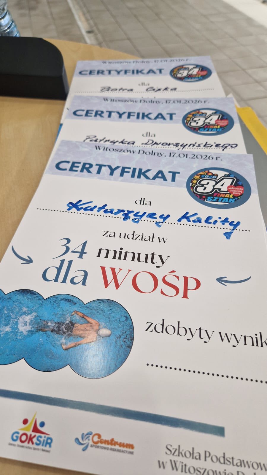 W sobotę nie zabrakło też chętnych do udziału w akcji „34 minuty na 34. Finał WOŚP” zorganizowanej na basenie Centrum Sportowo-Rekreacyjnego w Witoszowie Dolnym. – Przez 34 minuty każdy z uczestników płynął we własnym tempie, mierząc się nie z rywalami, a z własnymi możliwościami. Liczył się ruch, dobra energia, uśmiech i świadomość, że każdy przepłynięty metr realnie wspiera cel Finału – „Zdrowe brzuszki naszych dzieci”. Akcja po raz kolejny udowodniła, że sport i pomaganie tworzą idealny duet – podkreślają wolontariusze.