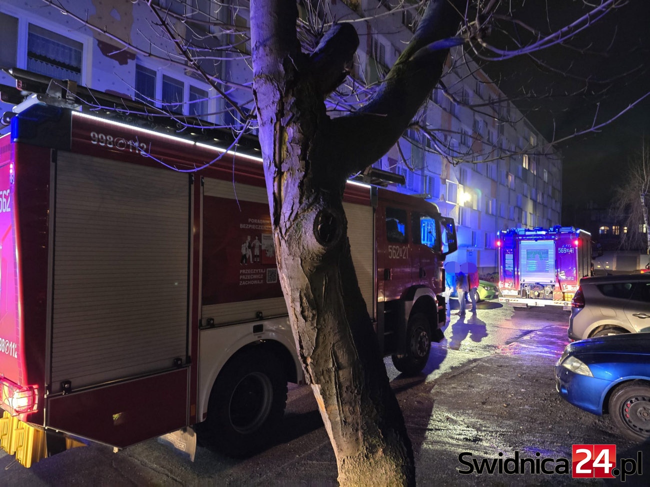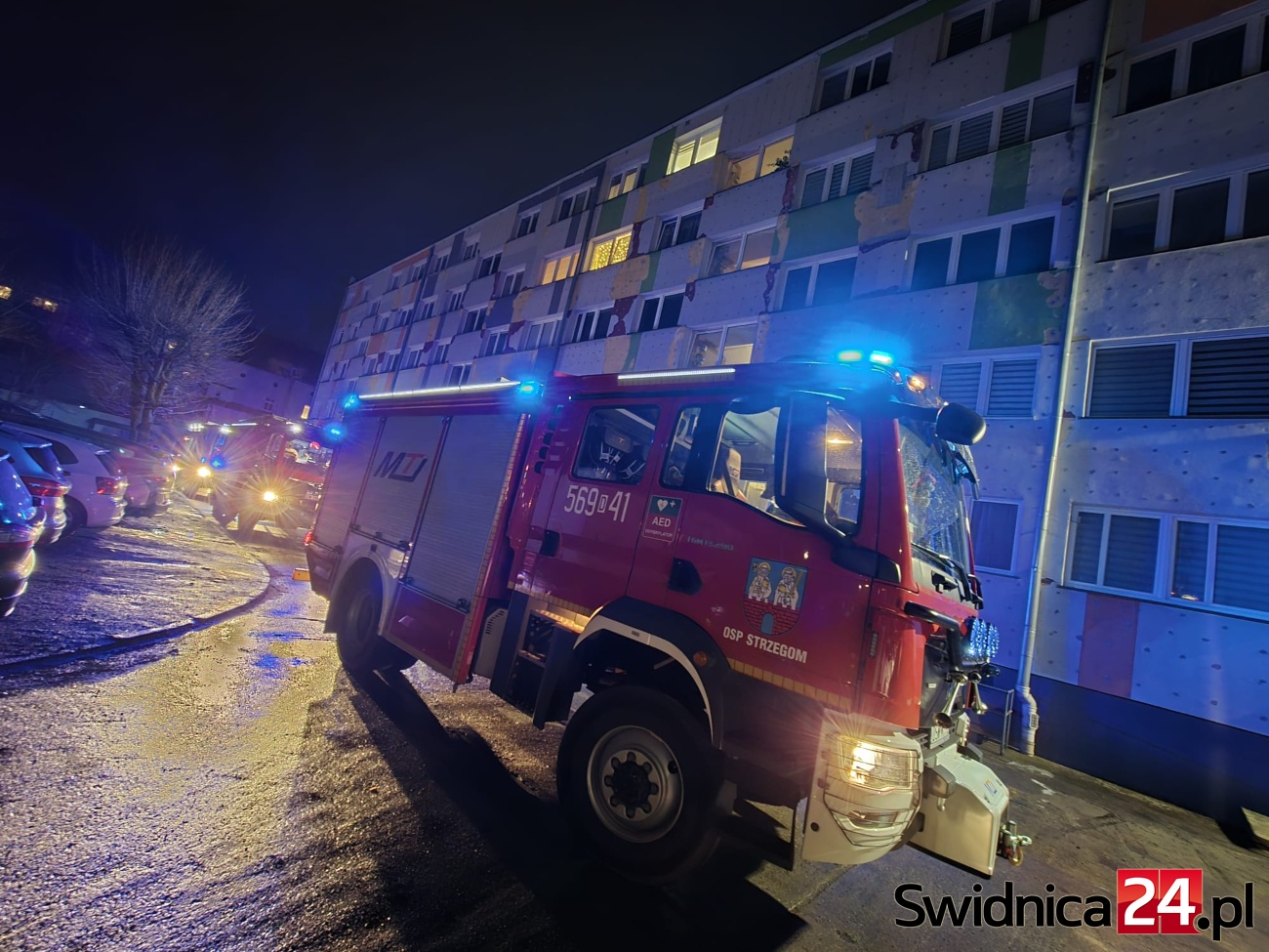Cztery zastępy straży pożarnej zadysponowano na Aleję Wojska Polskiego w Strzegomiu. Służby otrzymały zgłoszenie o „gryzącym zapachu” na klatce schodowej w budynku wielorodzinnym.