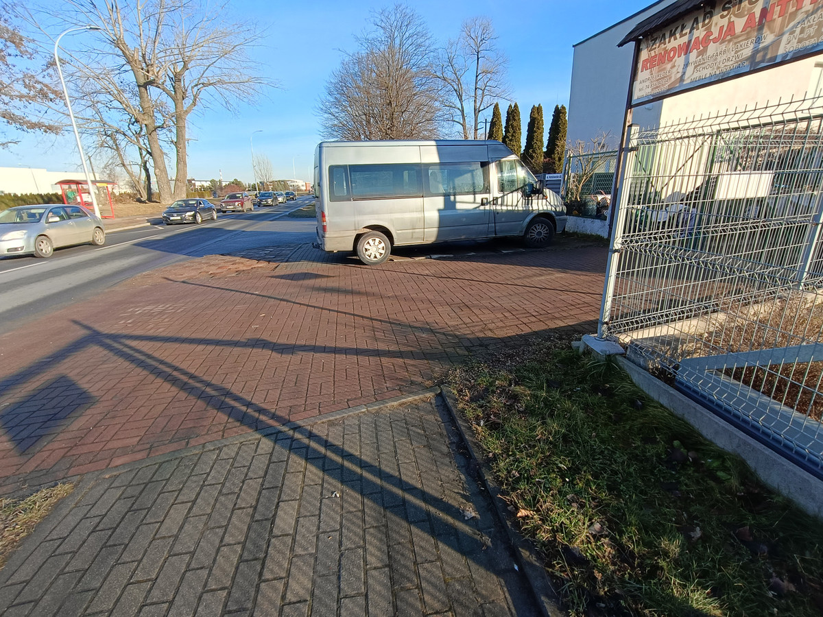 ul. Sosnowa (opis nadesłanych zdjęć: „Z dużą regularnością właściciele samochodów parkują na chodniku skutecznie bardzo mocno ograniczając widoczność przy wyjeździe z parkingu znajdującego się przy budynkach spółdzielni na ulicy Jałowcowej obok pizzerii Alibi. Niestety sposób parkowania na w/w chodniku doprowadził już kilkukrotnie do kolizji drogowej (samochody wjeżdżające praktycznie nie są widoczne dla osób wyjeżdżających”):