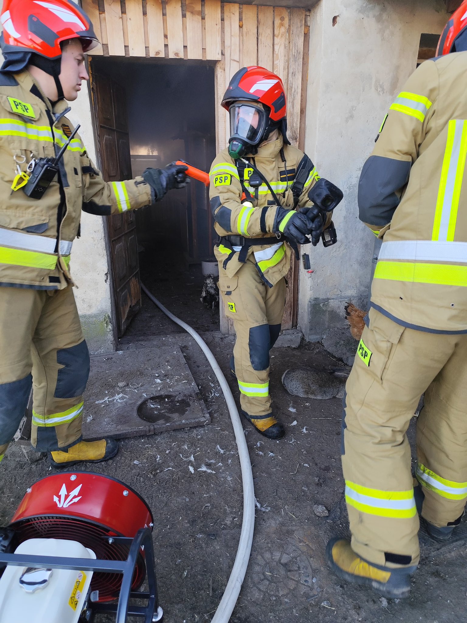 Służby zaalarmowano o godzinie 11:42. – Zgłoszenie dotyczyło zadymienia w budynku gospodarczym. Po naszym dojeździe okazało się, że w jednym pomieszczeń zapaliła się instalacja elektryczna, a od niej będące w pobliżu drewno i słoma. Ewakuowaliśmy z budynku kurczęta oraz królika, któremu udzielono pomocy. Nie było osób poszkodowanych – informuje bryg. Łukasz Grzelak, zastępca komendanta KP PSP w Świdnicy.
