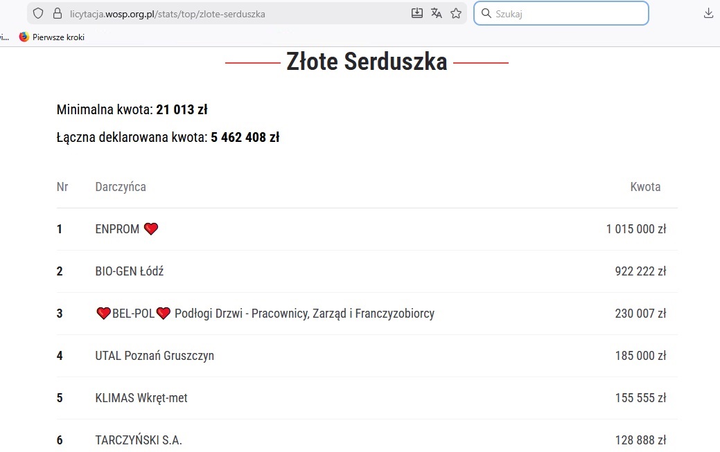 Firma z 35-letnią historią, specjalizująca się w sprzedaży paneli podłogowych, ściennych oraz drzwi, od sześciu lat regularnie uczestniczy w licytacjach złotych serduszek WOŚP. W 2021 roku przekazała na rzecz Orkiestry 50 111 zł, w 2022 – 41 250 zł, w 2023 – 80 555 zł, w 2024 – 112 356 zł, a w 2025 roku – 166 667 zł. Tegoroczna licytacja po raz kolejny okazała się rekordowa.