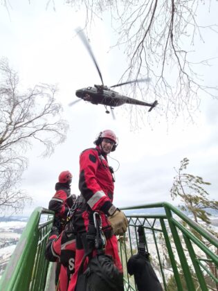 Doskonalenie współpracy z lotnictwem wojskowym podczas działań ratowniczych w terenach trudno dostępnych było przedmiotem szkolenia, w którym wzięło udział kilkunastu strażaków ze Specjalistycznej Grupy Ratownictwa Wysokościowego „Świdnica”.