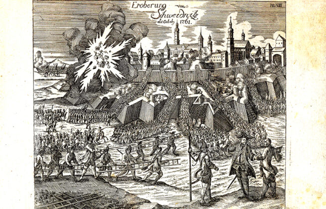 Podczas wojny siedmioletniej (1756-63) Świdnica była czterokrotnie oblegana przez walczące ze sobą wojska pruskie i austriackie. W armiach obu państw służyło wielu cudzoziemców, którzy swoim doświadczeniem wspierali walczące strony. Jedną z wybitnych postaci, której nazwisko ściśle związane jest ze Świdnicą był wspomniany Francuz Jean-Baptiste Vaquette de Gribeauval.