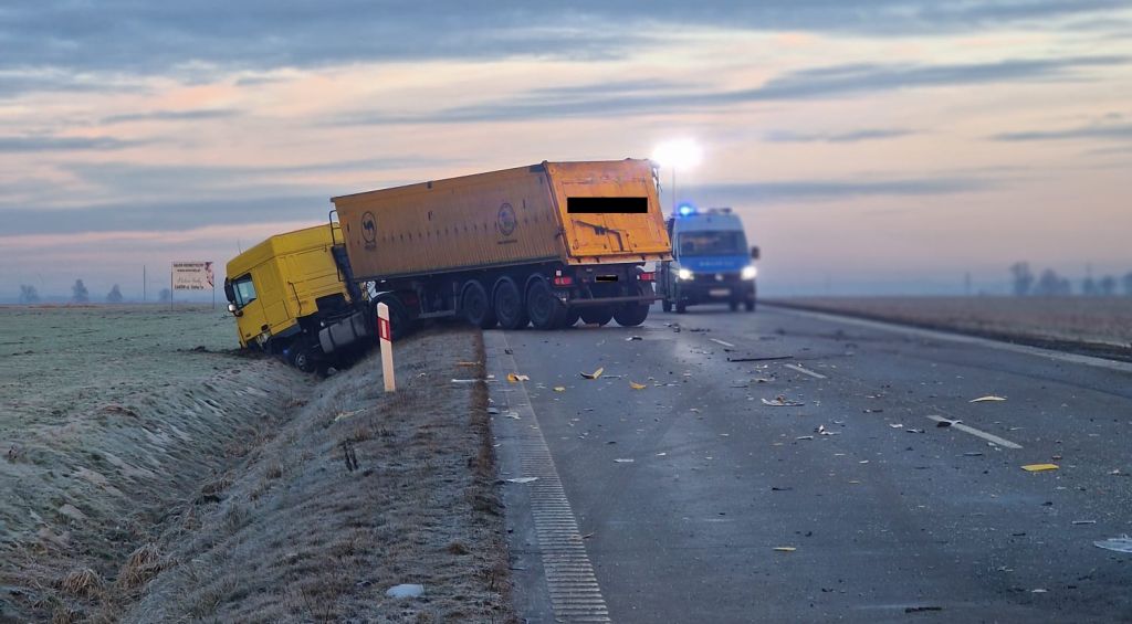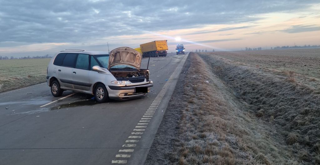 Służby zostały powiadomione o godz. 4.16. – Z niewyjaśnionych przyczyn 42-latek z powiatu świdnickiego, kierujący samochodem marki Renault zjechał ze swojego pasa ruchu i uderzył czołowo w ciężarówkę marki DAF. Z pojazdu wyszedł o własnych siłach. Został przetransportowany przez zespół pogotowia ratunkowego do szpitala – informuje asp. Magdalena Ząbek z KPP w Świdnicy.