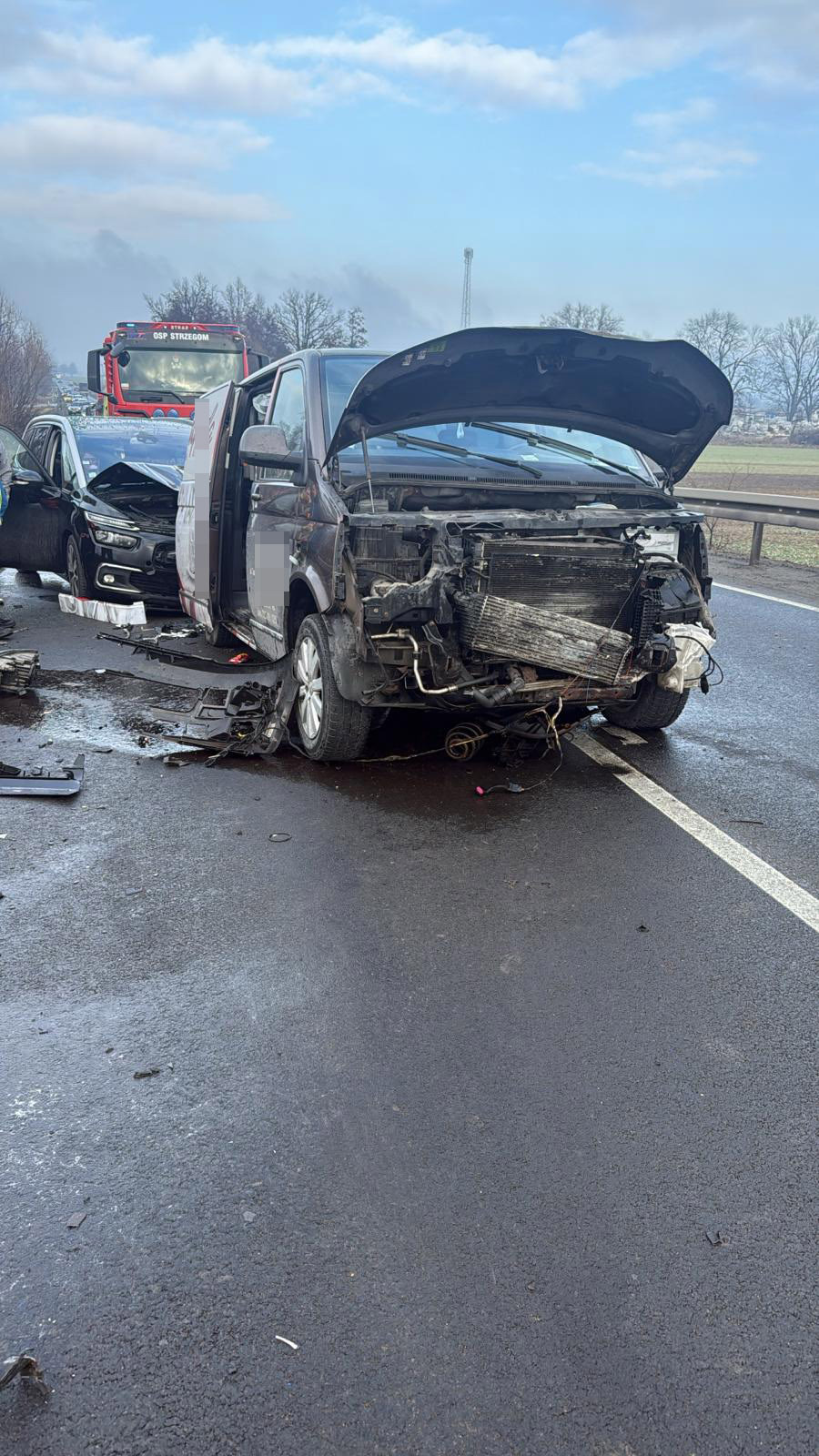 Do zderzenia czterech pojazdów doszło w sobotnie popołudnie na drodze krajowej nr 5 pod Strzegomiem.