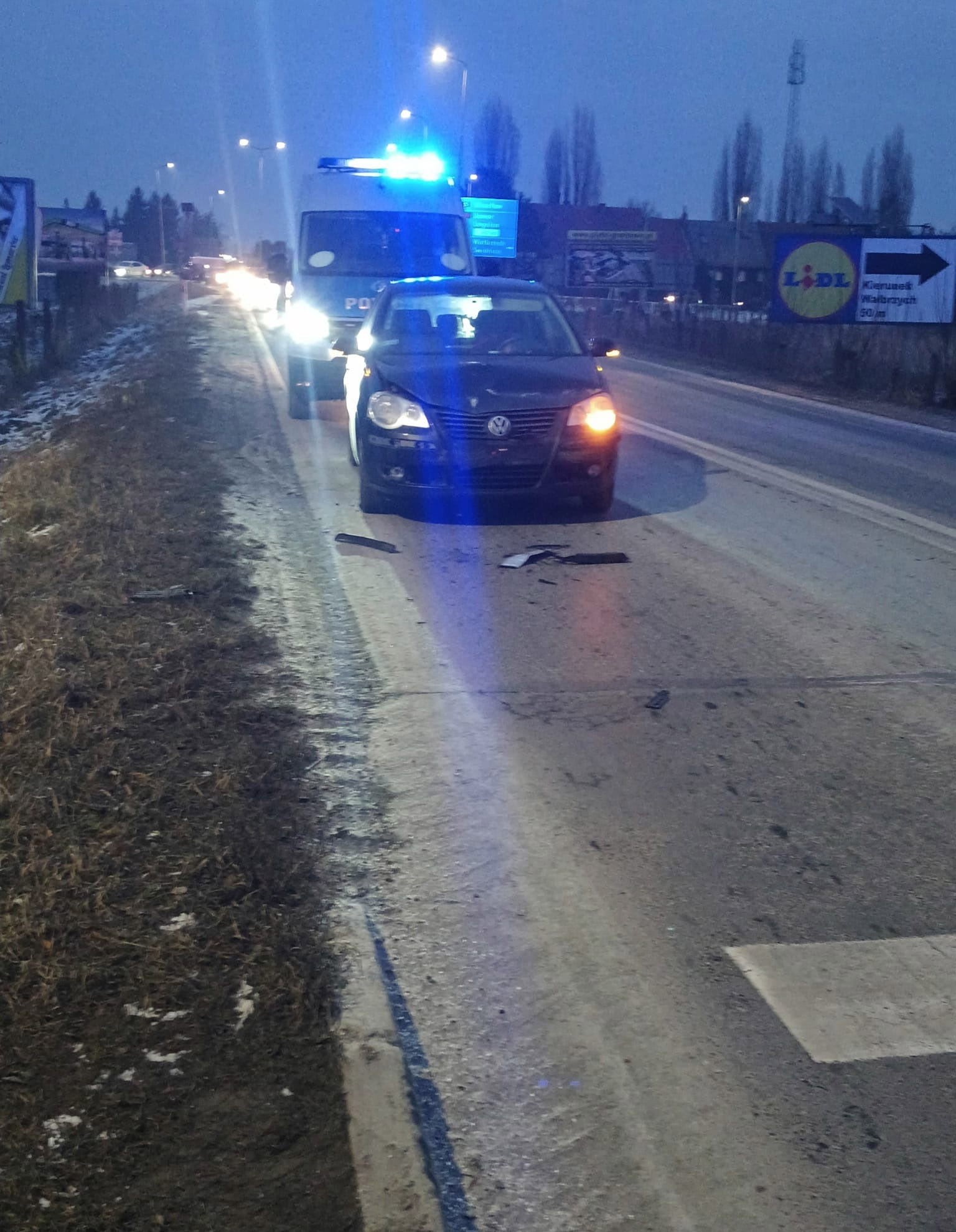 Na miejscu pracowali strażacy z OSP Strzegom, JRG PSP Świebodzice, zespół ratownictwa medycznego i policja. Droga jest przejezdna.