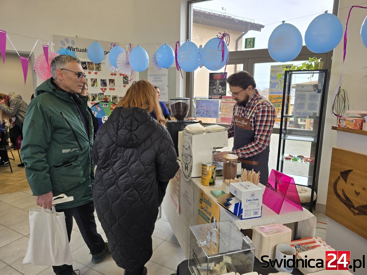 Trafiające do schroniska koty zazwyczaj wymagają leczenia i dobrej jakości karmy, która pomaga w powrocie do zdrowia. Między innymi na ten cel dzisiaj zbierane są datki. Można kupić ciasta, upieczone przez wolontariuszy i napić się dobrej kawy z zaprzyjaźnionej palarni kawy BLEND. Czeka mnóstwo gadżetów, wśród których są breloczki, biżuteria, kalendarze, podkładki, torby, koszulki, a także ręcznie robione przez świdnickie seniorki wielkanocne ozdoby do koszyczków.