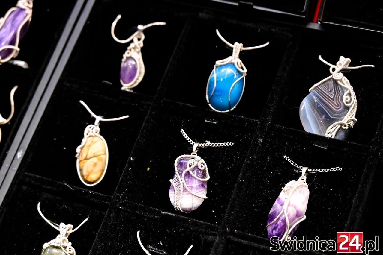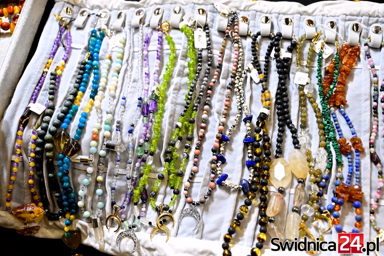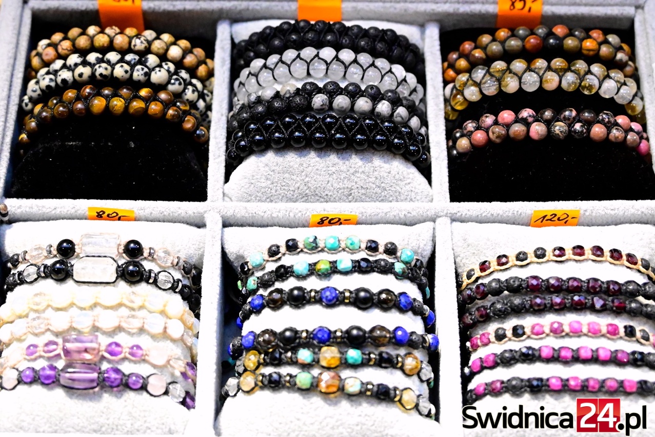 W Galerii Świdnickiej podziwiać też można ręcznie wykonaną biżuterią z naturalnych kamieni. Naszyjniki, pierścionki, bransoletki i kolczyki z labradorytów, rubinów, cytrynów czy czarnych turmalinów to propozycje dla osób, które szukają czegoś wyjątkowego – na prezent lub po prostu dla siebie. Wiele projektów łączy kamienie naturalne z drewnem, lnem, miedzią czy muszlami, tworząc niepowtarzalne formy.