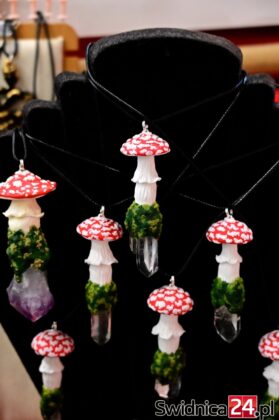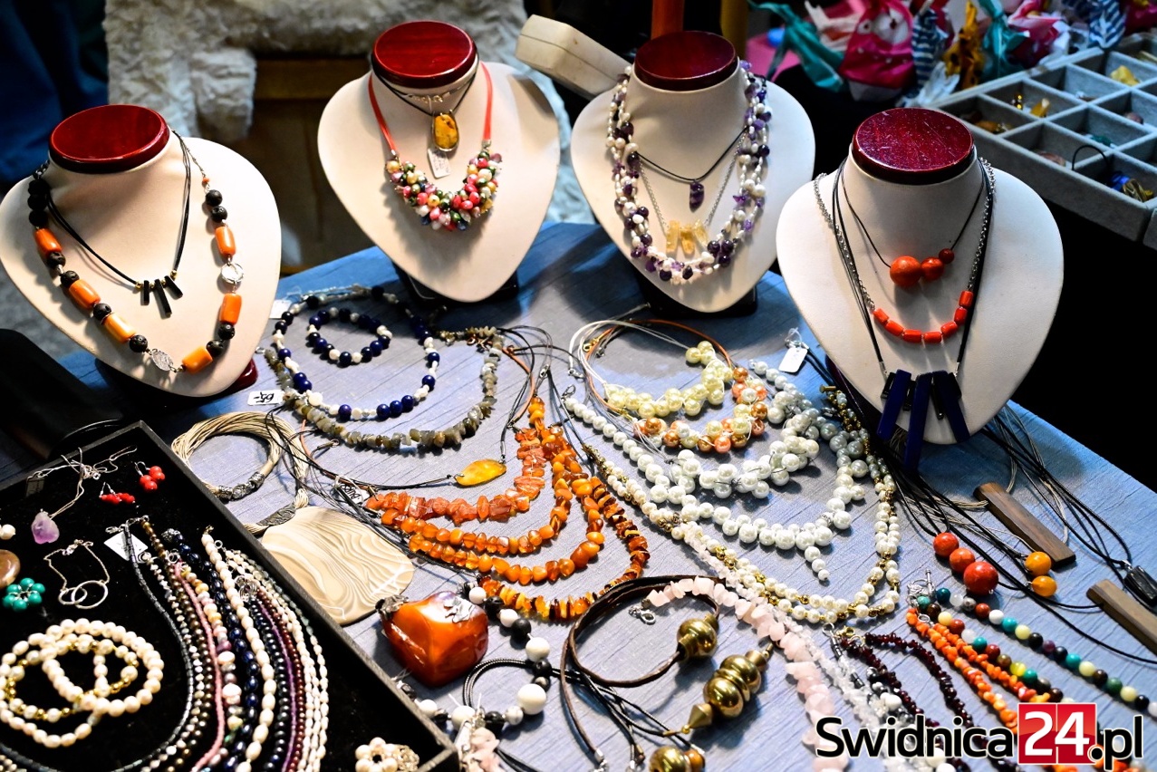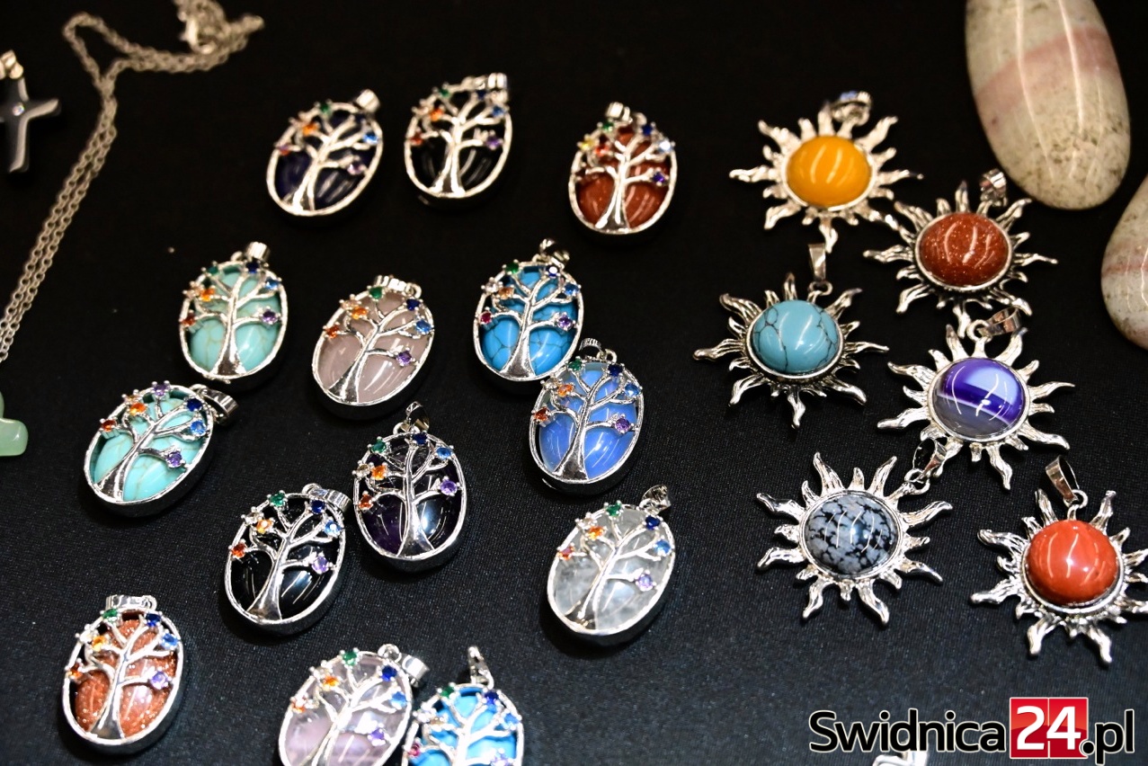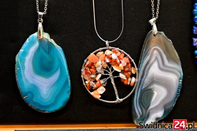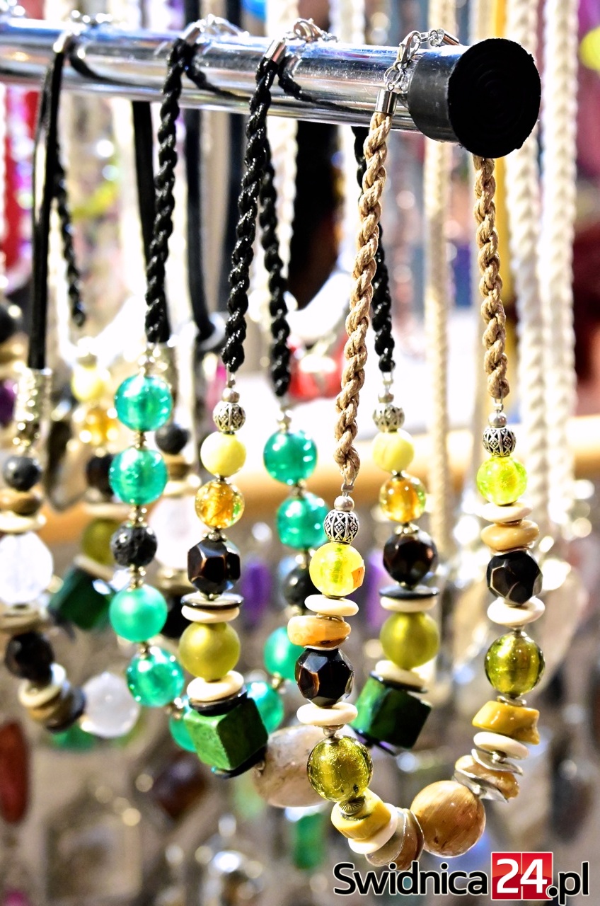 W Galerii Świdnickiej podziwiać też można ręcznie wykonaną biżuterią z naturalnych kamieni. Naszyjniki, pierścionki, bransoletki i kolczyki z labradorytów, rubinów, cytrynów czy czarnych turmalinów to propozycje dla osób, które szukają czegoś wyjątkowego – na prezent lub po prostu dla siebie. Wiele projektów łączy kamienie naturalne z drewnem, lnem, miedzią czy muszlami, tworząc niepowtarzalne formy.