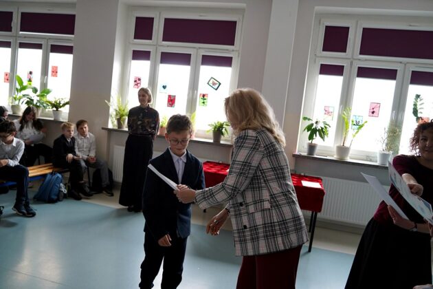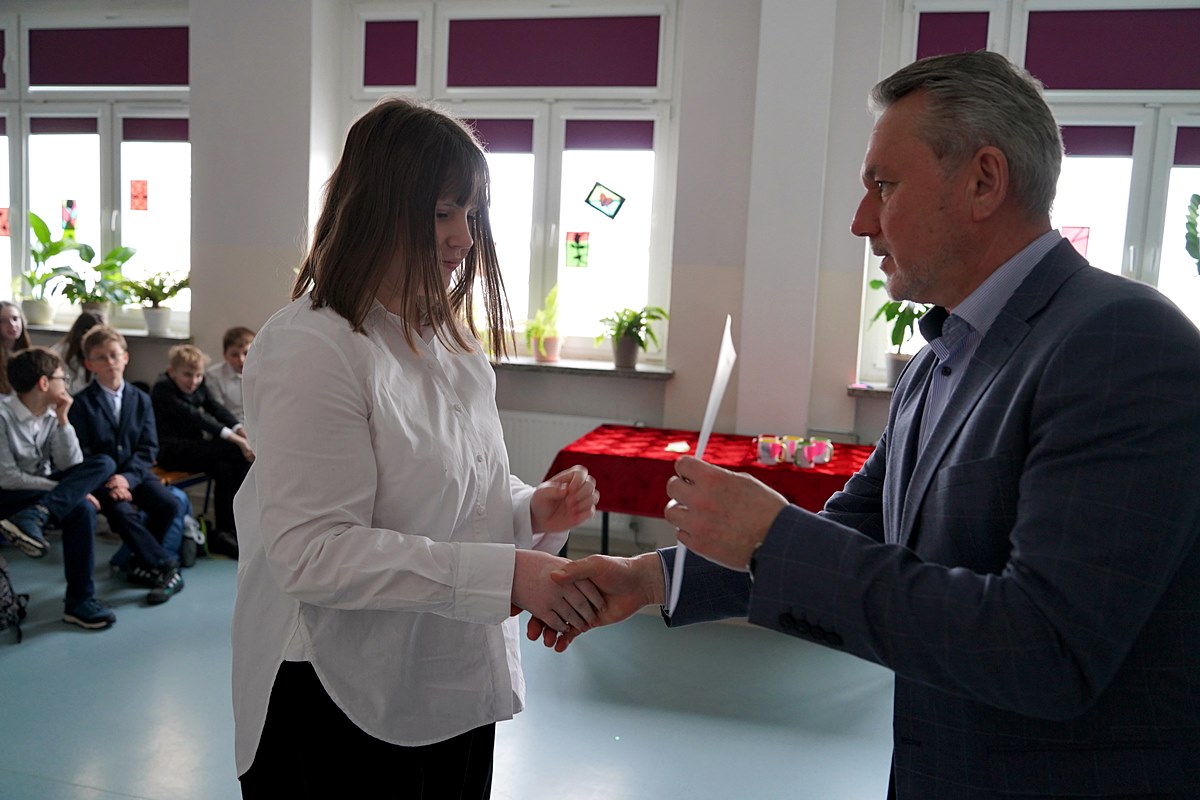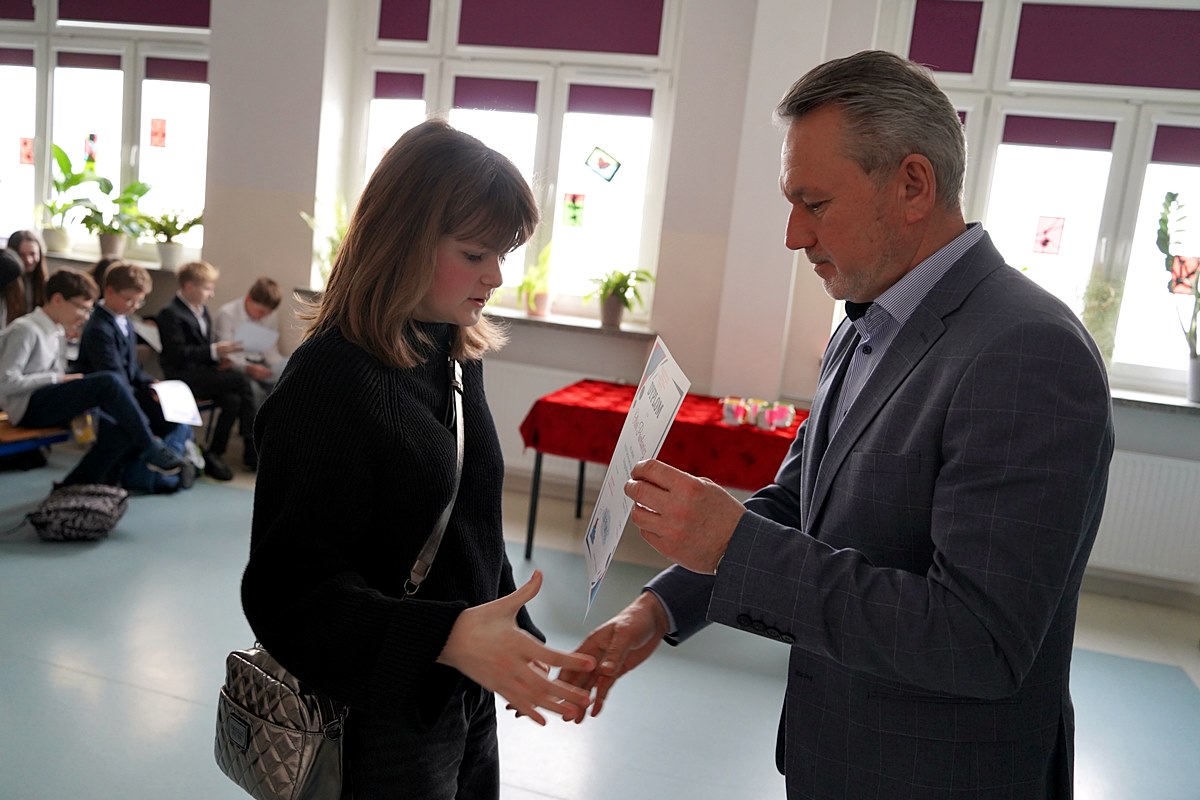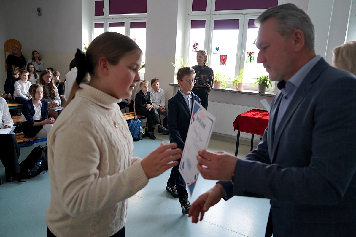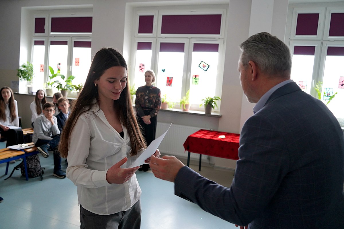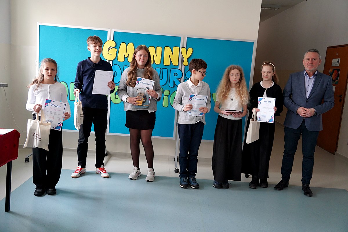– Jesteście elitą naszej gminnej młodzieży, która chce pielęgnować piękno polskiego języka, poznawać jego skomplikowaną ortografię i stosować ją w praktyce. Nie każdy musi być mistrzem ortografii. Ale każdy, kto świadomie decyduje się pracować nad poprawnością i pięknem języka, wnosi coś cennego do naszej wspólnoty. Bo piękny, poprawny polski język to nie przeżytek – to wasza przewaga, wasza wizytówka i nasze wspólne dziedzictwo. Dziękuję Wam za to, że chcecie je pielęgnować – mówił wicewójt Tadeusz Szarwaryn, zwracając się do uczestników tegorocznego XIX Gminnego Konkursu Ortograficznego.