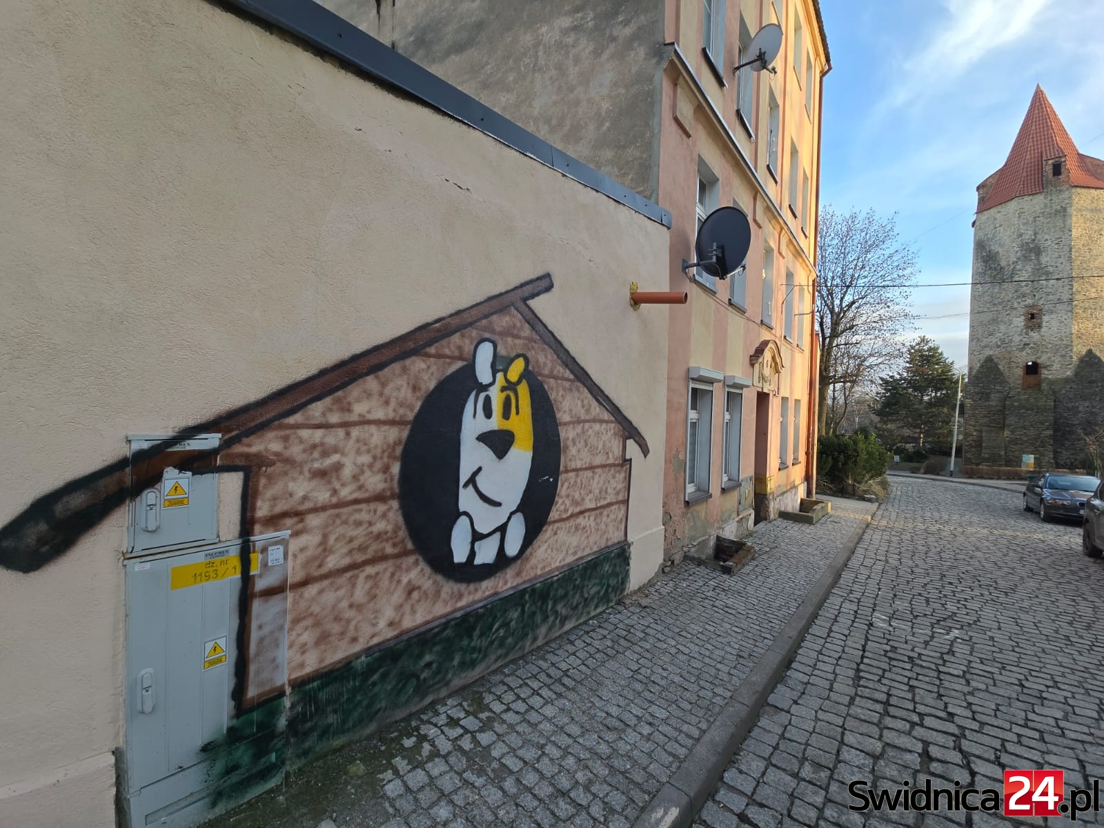 Czasem wystarczy farba, kawałek ściany i dobry pomysł. W Strzegomiu Reksio znów merda ogonem – tym razem nie na ekranie, lecz w przestrzeni miasta. Stał się bohaterem muralu na ścianie garażu przy ul. Kamiennej i trzeba przyznać – cieszy oczy!