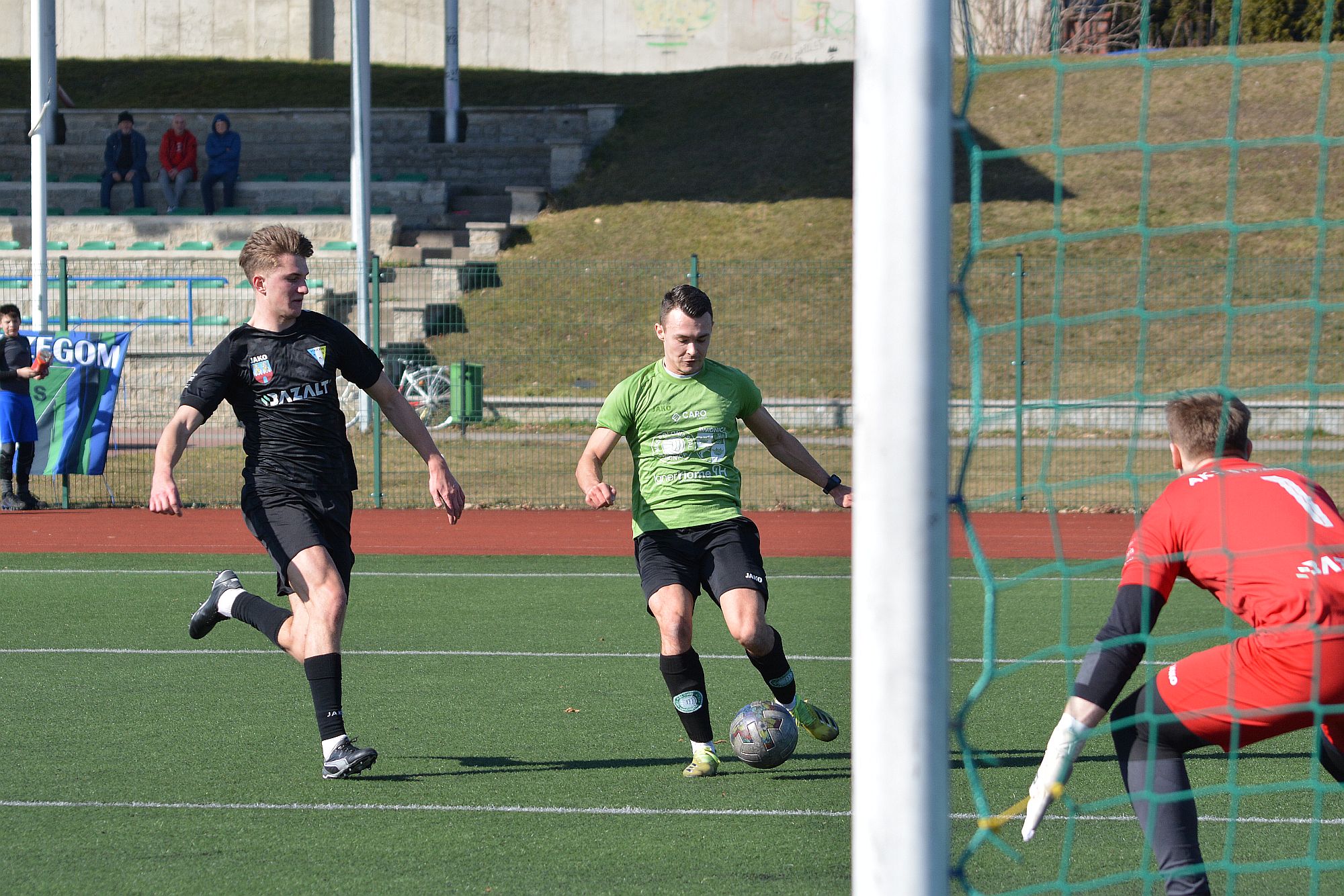 Po zmianie stron goście nie rezygnowali z kolejnych ataków, po strzale Miłosza Taranka, piłkę sprzed linii bramkowej wybijał obrońca ze Strzegomia. Później na boisku obserwowaliśmy sporo zmian. Wynik ustalony został na około kwadrans przed końcem rywalizacji. Skutecznie rzut karny na gola zamienił Damian Chajewski, zmniejszając nieco rozmiary porażki, patrząc z perspektywy zespołu gospodarzy.