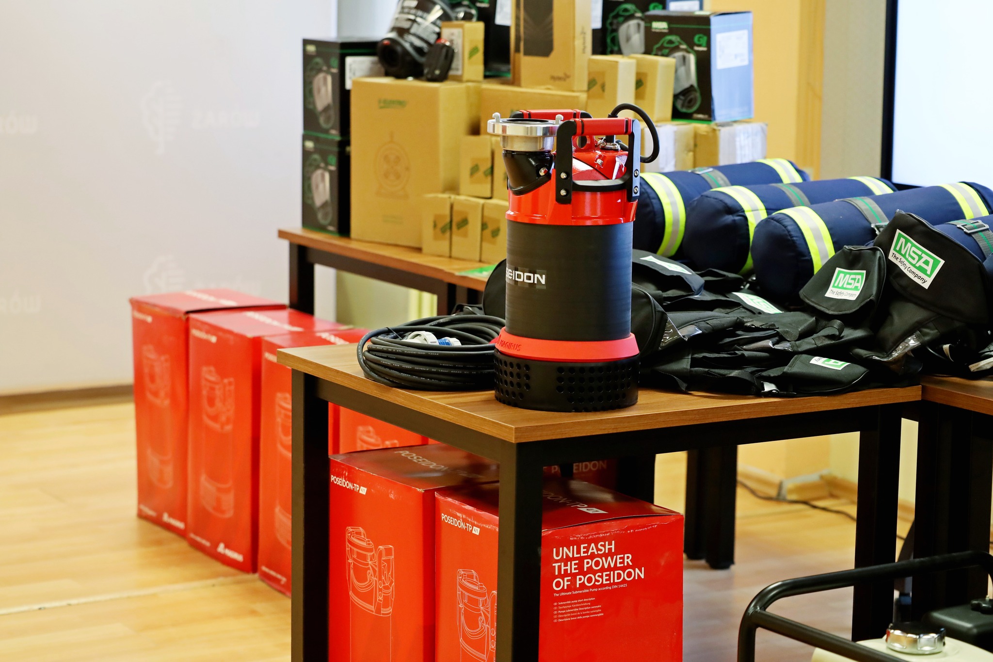 Burmistrz Żarowa Przemysław Sikora przekazał 5 lutego 2026r. m.in. aparaty powietrzne z butlą kompozytową, maską, czujnikiem bezruchu, pokrowcem na butle, pokrowcem na maskę, a także agregaty prądotwórcze, pompy zanurzeniowe z przedłużaczami przenośne radiostacje.