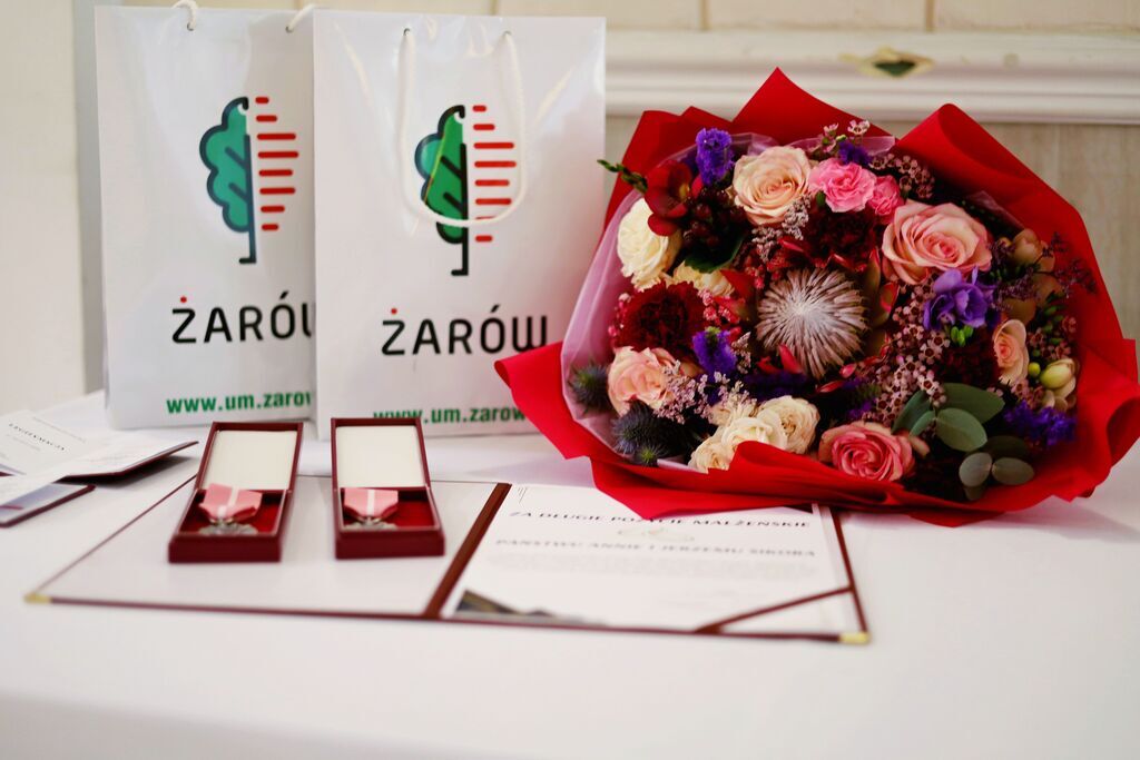 W obecności zaproszonych gości i rodziny małżonkowie odnowili złożoną przed laty przysięgę małżeńską i złożyli sobie podziękowania za wspólne lata. Podczas ceremonii burmistrz Żarowa Przemysław Sikora wręczył jubilatom medale za długoletnie pożycie małżeńskie, przyznane przez prezydenta Rzeczypospolitej Polskiej, przekazał na ich ręce także upominki oraz złożył serdeczne gratulacje.