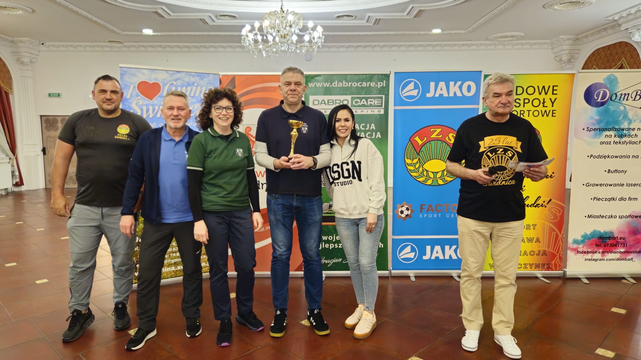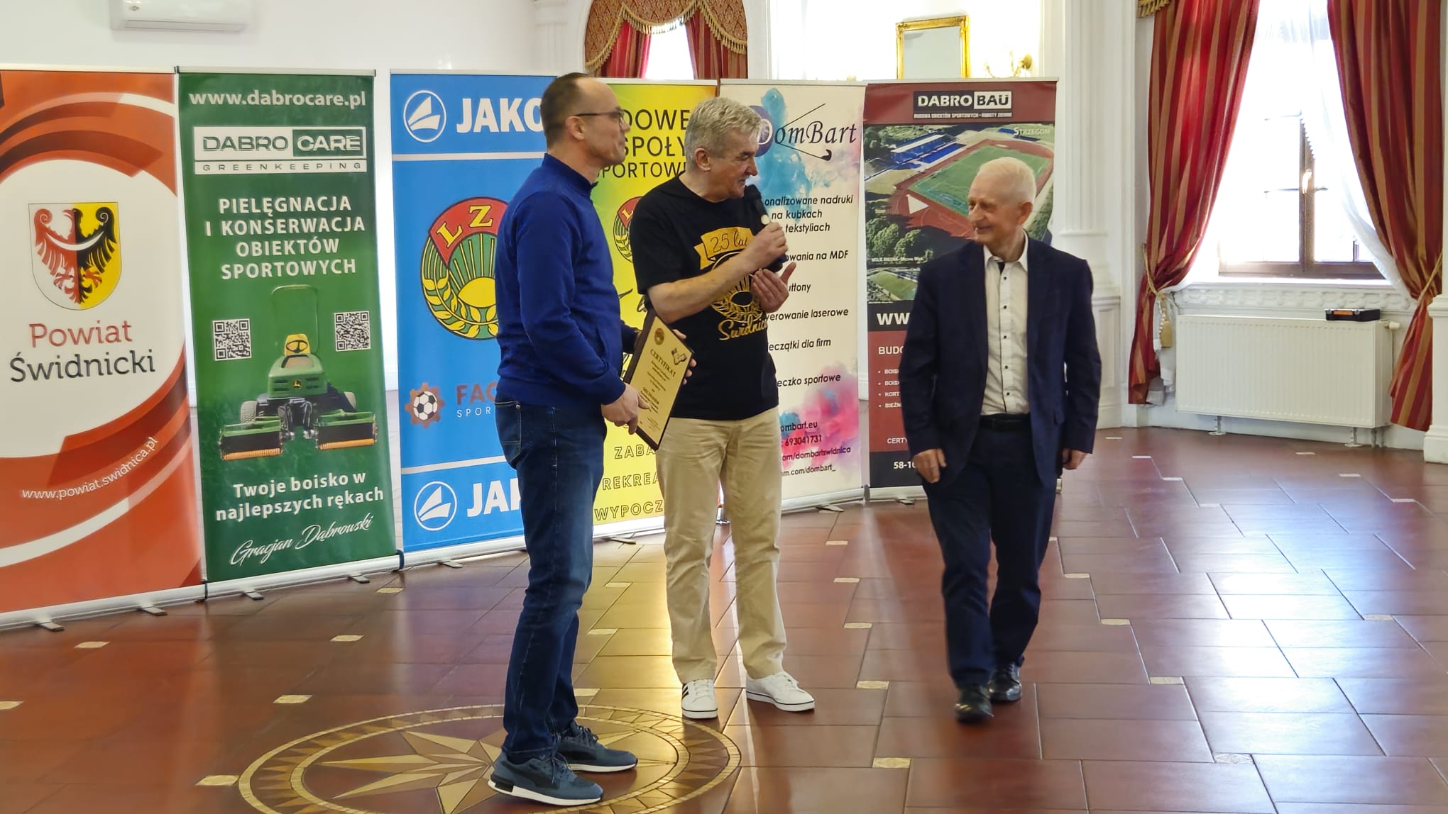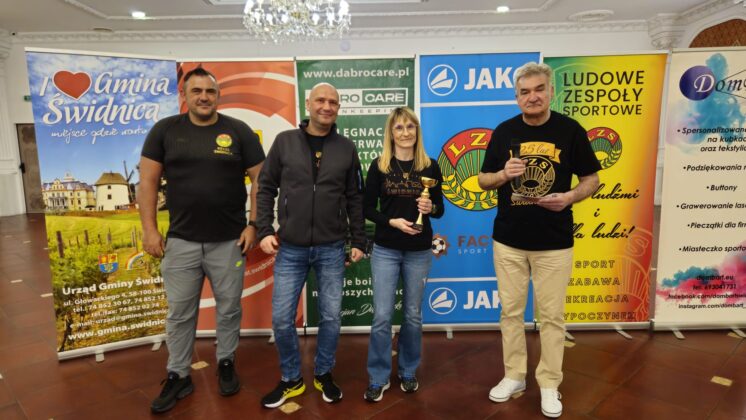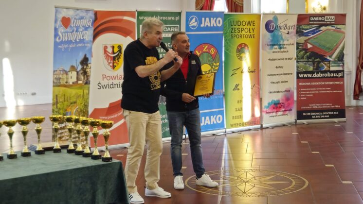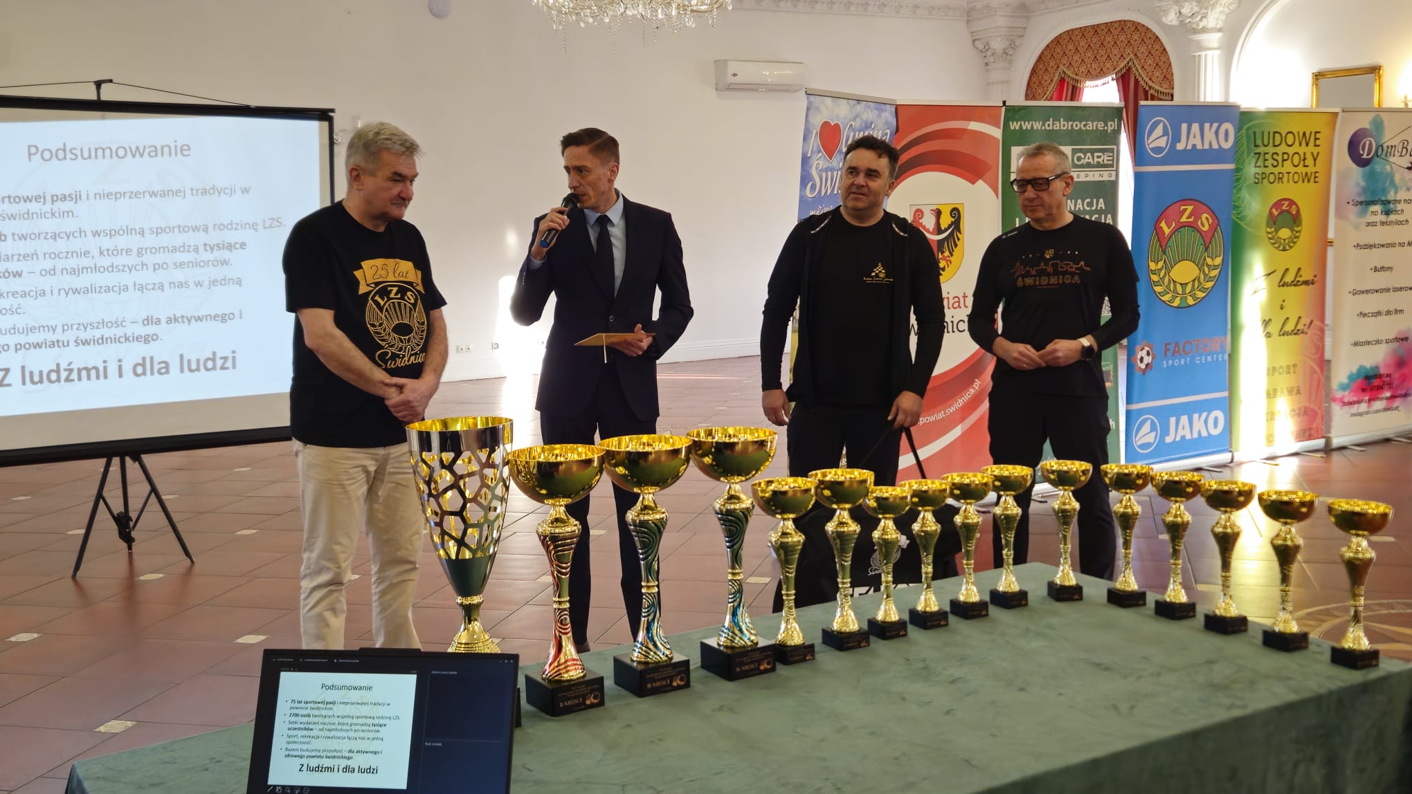 Na zakończenie walki doszło do podsumowania i wręczenia zespołom pamiątkowych pucharów. Wcześniej wyróżniono też partnerów i przyjaciół Powiatowego Zrzeszenia Ludowych Zespołów Sportowych w Świdnicy. Honorowa statuetka trafiła także na ręce wydawcy portalu Swidnica24.pl. Marka Kowalskiego.