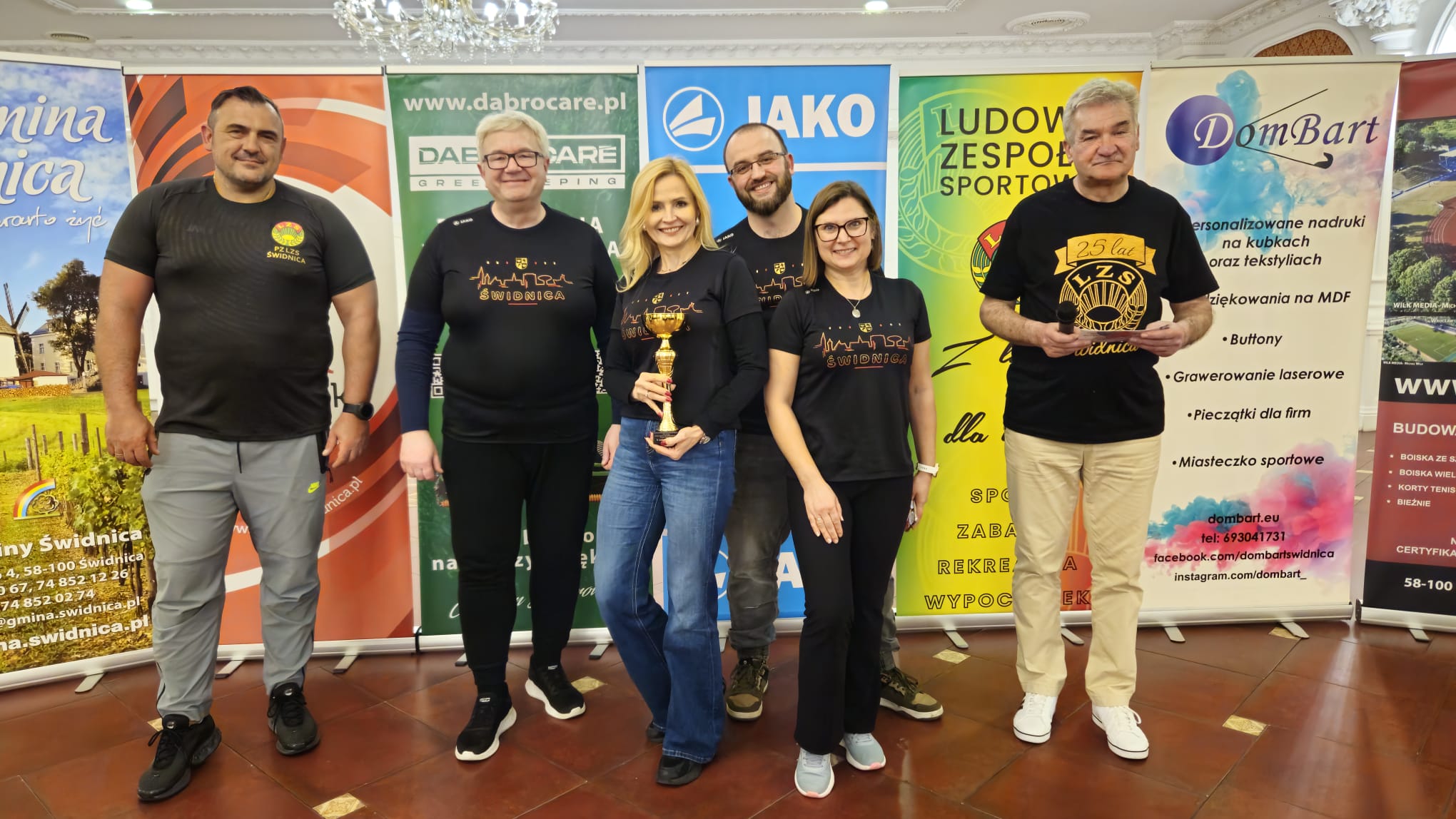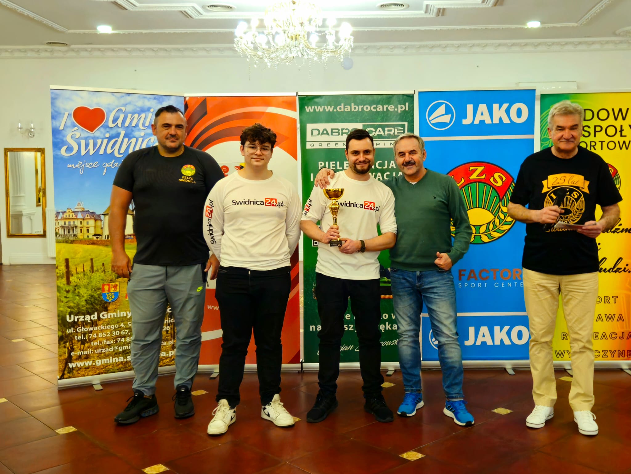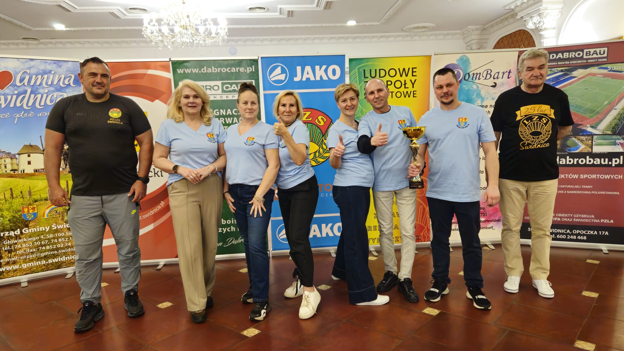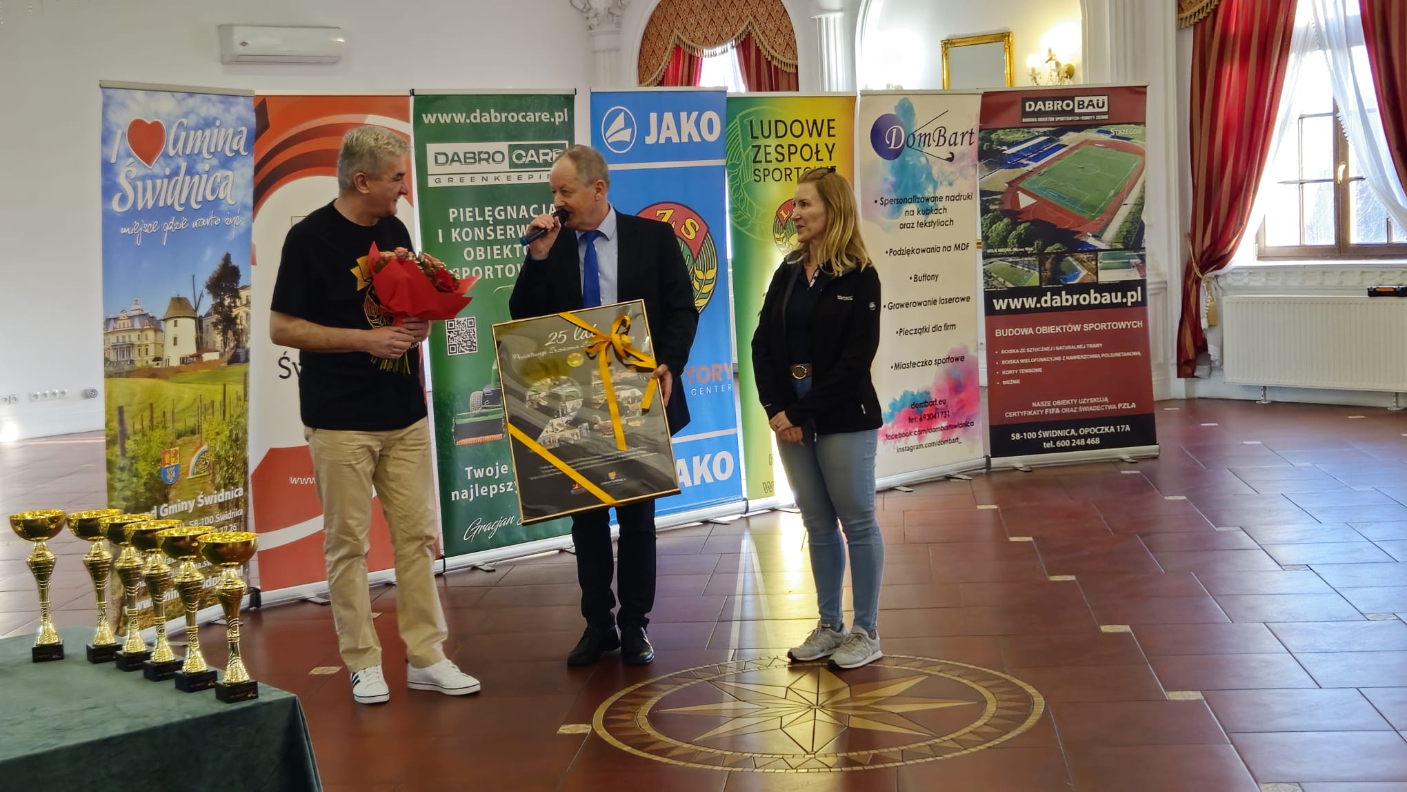 Na zakończenie walki doszło do podsumowania i wręczenia zespołom pamiątkowych pucharów. Wcześniej wyróżniono też partnerów i przyjaciół Powiatowego Zrzeszenia Ludowych Zespołów Sportowych w Świdnicy. Honorowa statuetka trafiła także na ręce wydawcy portalu Swidnica24.pl. Marka Kowalskiego.