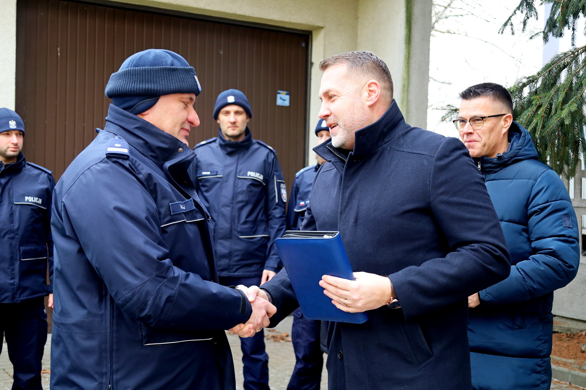 Na ręce komendanta Komisariatu Policji w Żarowie Marka Rataja kluczyki do nowego radiowozu przekazał burmistrz Żarowa Przemysław Sikora. W uroczystości przekazania samochodu uczestniczył także zastępca komendanta powiatowego Policji w Świdnicy mł. insp. Przemysław Siwiak, wiceburmistrz Kamil Nieradka, przewodniczący Rady Miejskiej w Żarowie Marcin Perzyński oraz funkcjonariusze żarowskiego komisariatu.