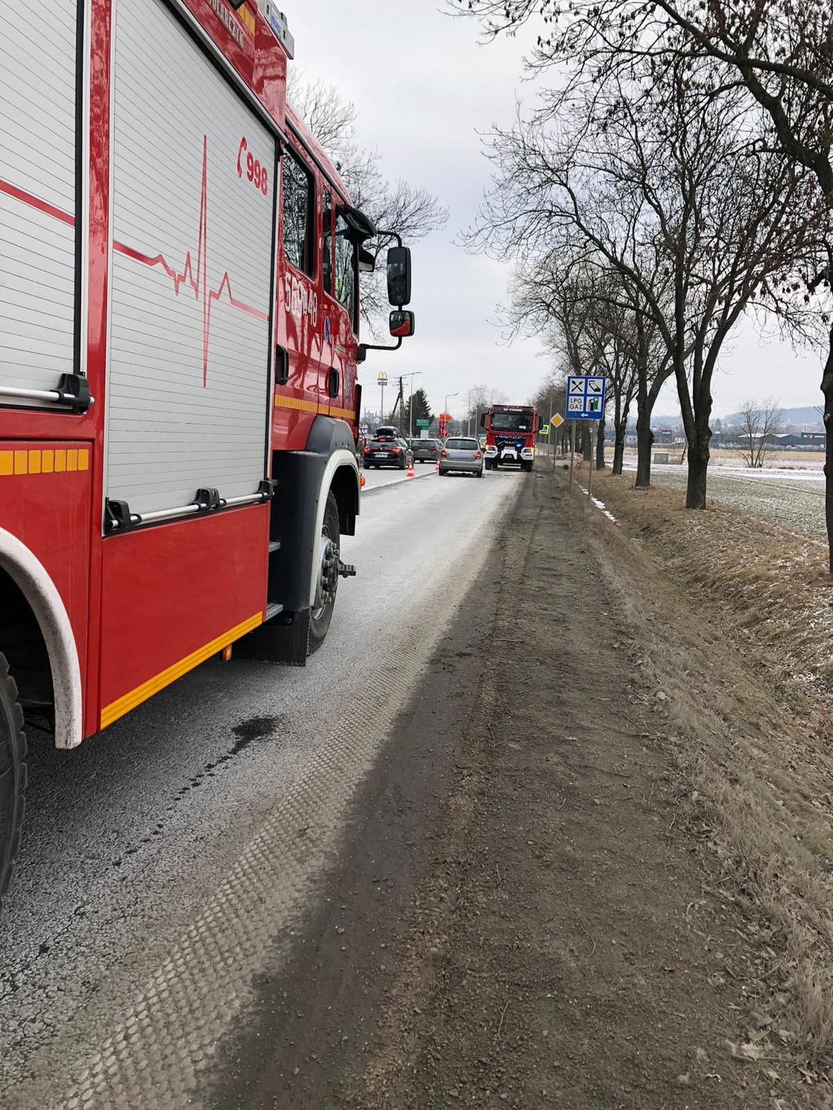 Zgłoszenie o kolizji wpłynęło do służb ratunkowych w niedzielę, 1 lutego o godzinie 13.05. Na miejsce skierowano trzy zastępy straży pożarnej: z OSP Strzegom, OSP Jaroszów oraz Jednostki Ratowniczo-Gaśniczej PSP w Świebodzicach, a także patrol policji.