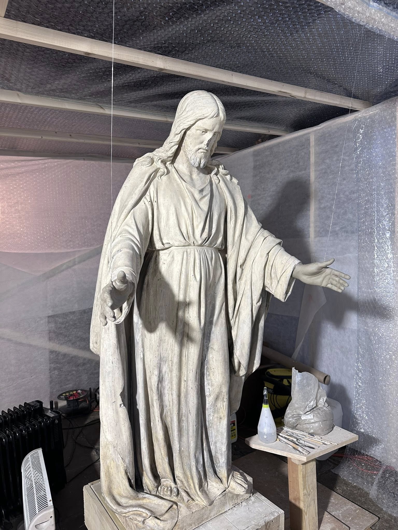 – Zima na zewnątrz, a u nas gorączka precyzji i troski o każdy detal. Choć styczeń i luty kojarzą się z uśpieniem, w Kościele Pokoju w Świdnicy trwa intensywny etap renowacji. 20 portretów pastorów parę tygodni temu opuściło Halę Chrztów. W pracowni toczy się walka o każdy centymetr autentycznego płótna. Niektóre z nich wymagały specjalistycznego zdublowania (wzmocnienia nowym podłożem), a po usunięciu wtórnych warstw, obrazy powoli odzyskują swój pierwotny blask. Rzeźby Chrystusa przechodzą metamorfozę. Na zdjęciach możecie zobaczyć proces oczyszczania powierzchni oraz precyzyjną rekonstrukcję brakujących elementów (np. dłoni). Najpierw powstają modele w glinie, by docelowo przywrócić rzeźbom ich pełną formę. Każdy ruch pędzla i dłuta to krok ku zachowaniu autentyczności tego unikalnego obiektu z listy UNESCO dla przyszłych pokoleń – opisują przedstawiciele parafii Świętej Trójcy.